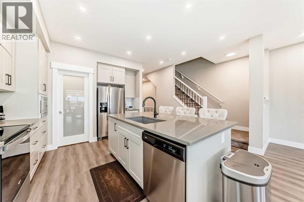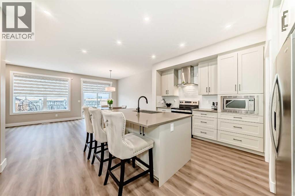 Beautifully crafted by Hopewell, this Mahogany home shows pride of ownership throughout. A custom front addition welcomes you with natural light and an extended foyer. Inside, enjoy soft tones, soaring ceilings, and an open layout. The chef’s kitchen features quartz counters, a large island, with a deep undermount sink, Whirlpool appliances, and a walk-in pantry. Step outside to a multi-tier composite deck, low-maintenance artificial turf, and an open field view. Upstairs offers a bright bonus room and 3 bedrooms, 2 full bathrooms with California style closets. The basement, with 1 bed and full bath adds exceptional quality living space. Central Air Conditioning. Move-in ready in Calgary’s premier lake community! (id:6769)