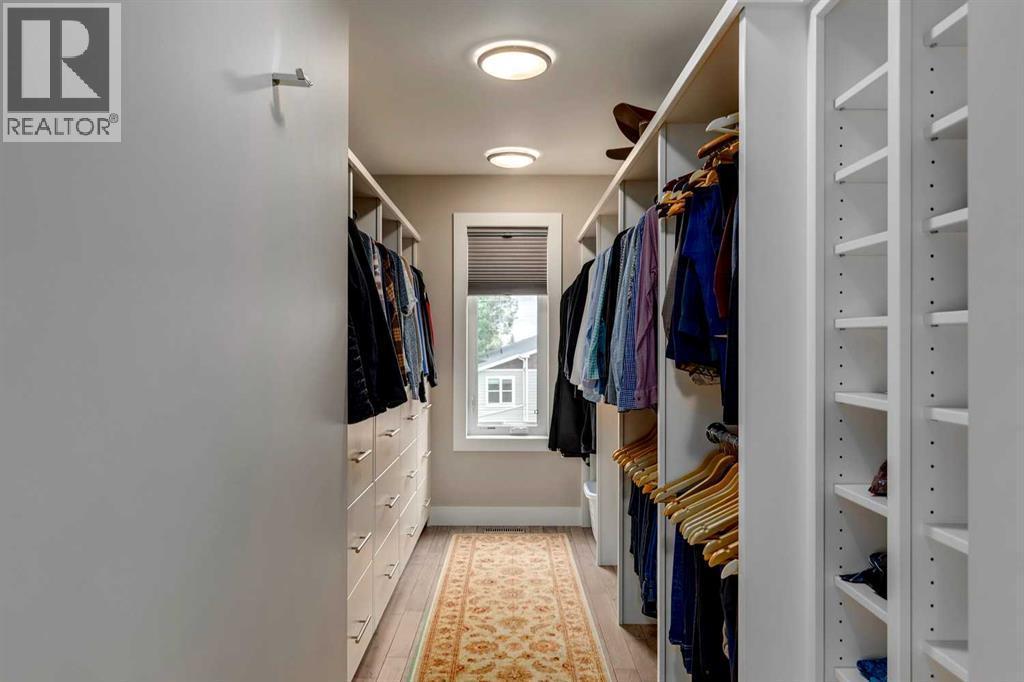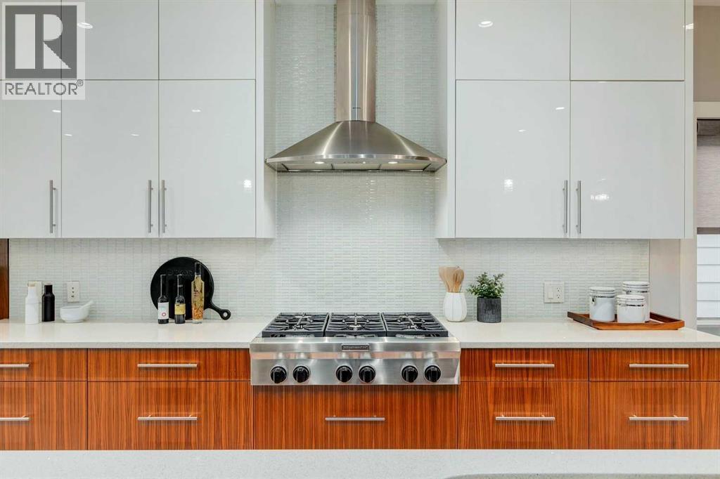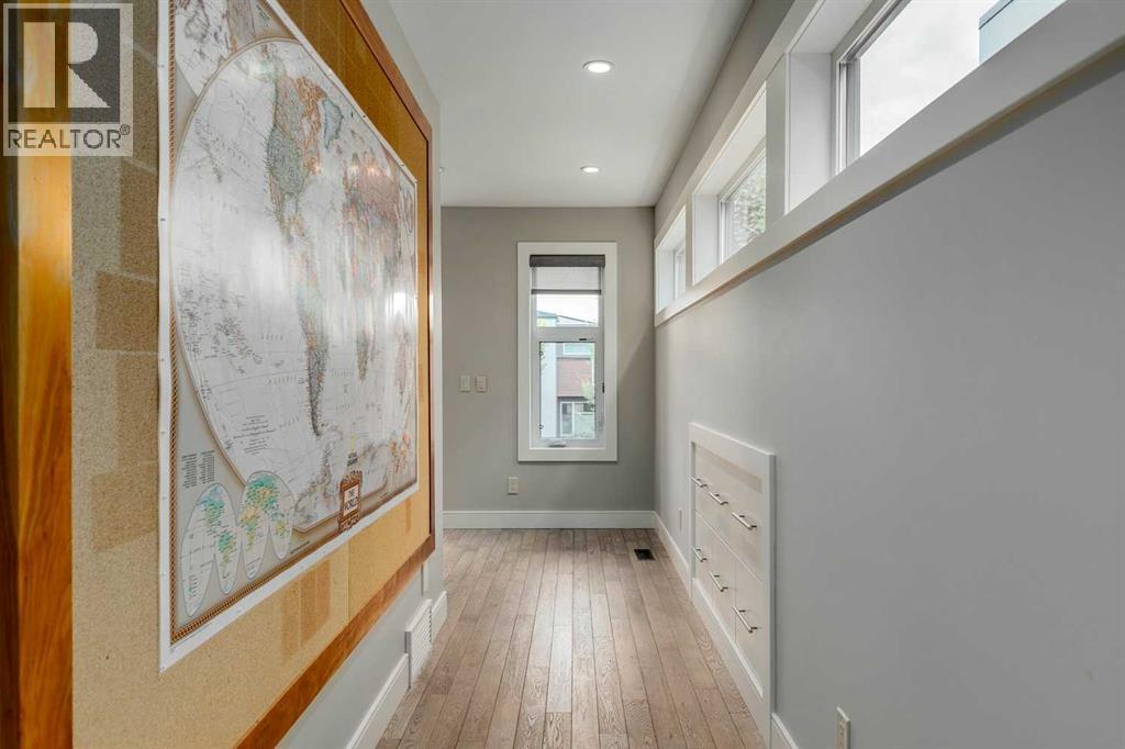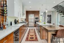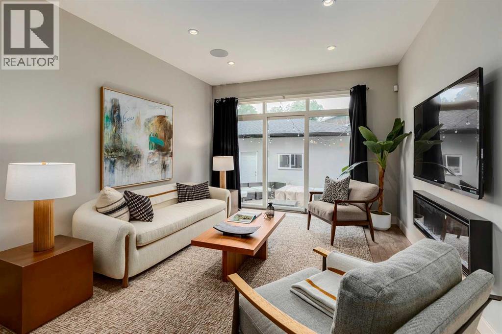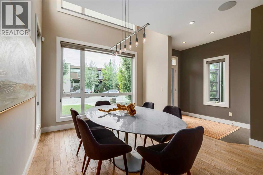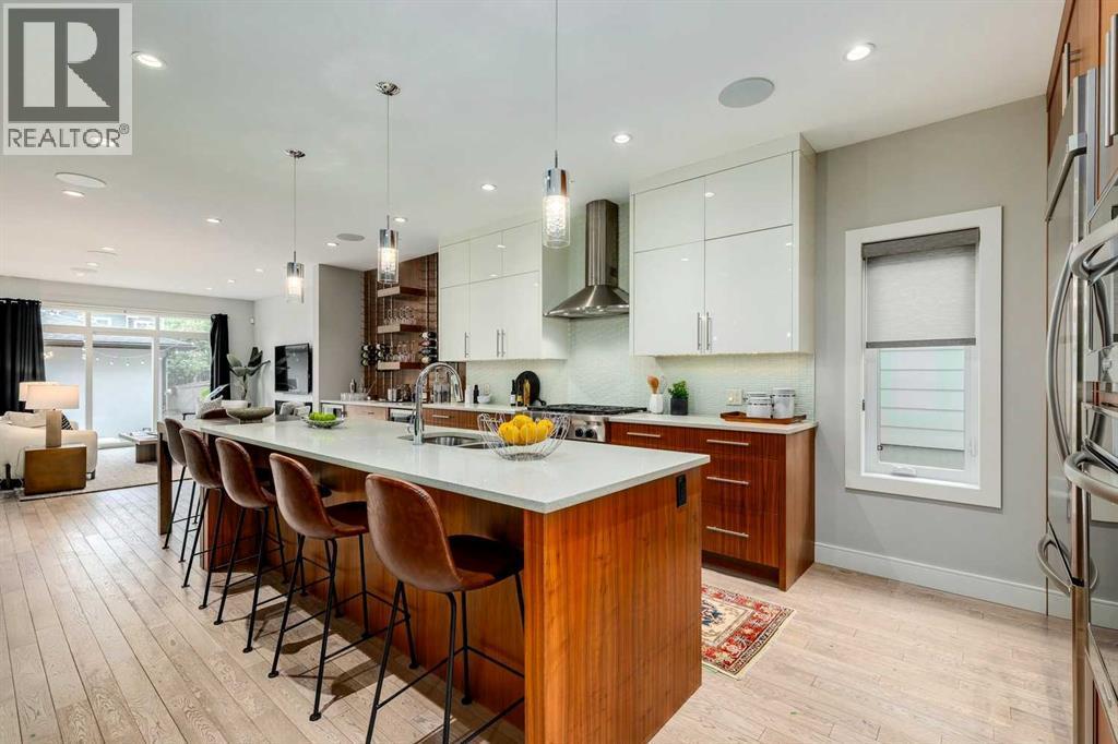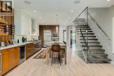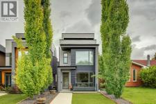 This stunning three-story detached home offers nearly 3,500 sq ft of beautifully finished living space in the heart of Richmond. Every detail reflects thoughtful design, quality craftsmanship + numerous luxury upgrades throughout. Soaring 9-foot ceilings on all levels + large windows fill the home with natural light + hardwood floors throughout. The main floor is ideal for both entertaining + everyday life. The spacious dining room is at the front of the house with lovely street views; Chefs kitchen is efficiently designed, galley style with huge island, upgraded KitchenAid appliances, Caesarstone + quartz counters, walnut cabinetry, under-cabinet lighting, floating shelves, a built-in wine wall + a movable custom island table. Comfy family room with ribbon gas fireplace overlooks backyard. Patio doors lead into the sunny, south-facing backyard—fully finished in maintenance-free concrete with gas hookups for a BBQ + fire table, outdoor speakers + a double detached garage complete with slat wall + ceiling storage. A floating oak staircase leads to the second level, which includes two generous bedrooms, a mezzanine office, a five-piece bathroom with heated floors + a full laundry room. The top-floor primary, is a private retreat, offering a massive walk-in closet with custom shoe racks + storage, a spa-inspired five-piece ensuite with a standalone tub, floor-to-ceiling tiled shower with LED lighting + heated floors. From here, access your large private rooftop patio. The fully finished basement offers a cozy living area with wet bar, an additional bedroom, three-piece bathroom, second laundry set + storage. Additional features include: Smart home system with built-in speakers + full sound/security wiring, four wine coolers, two furnaces, each with humidifiers, dual A/C units for climate control, oversized 80-gallon hot water tank, mudroom with heated floors + custom built-ins, Gemstone exterior lighting + low-maintenance turf front yard. Located on a quiet s treet just a short walk to Marda Loop, 17th Avenue, Richmond School (K–6) + nearby shops + restaurants. (id:6769)