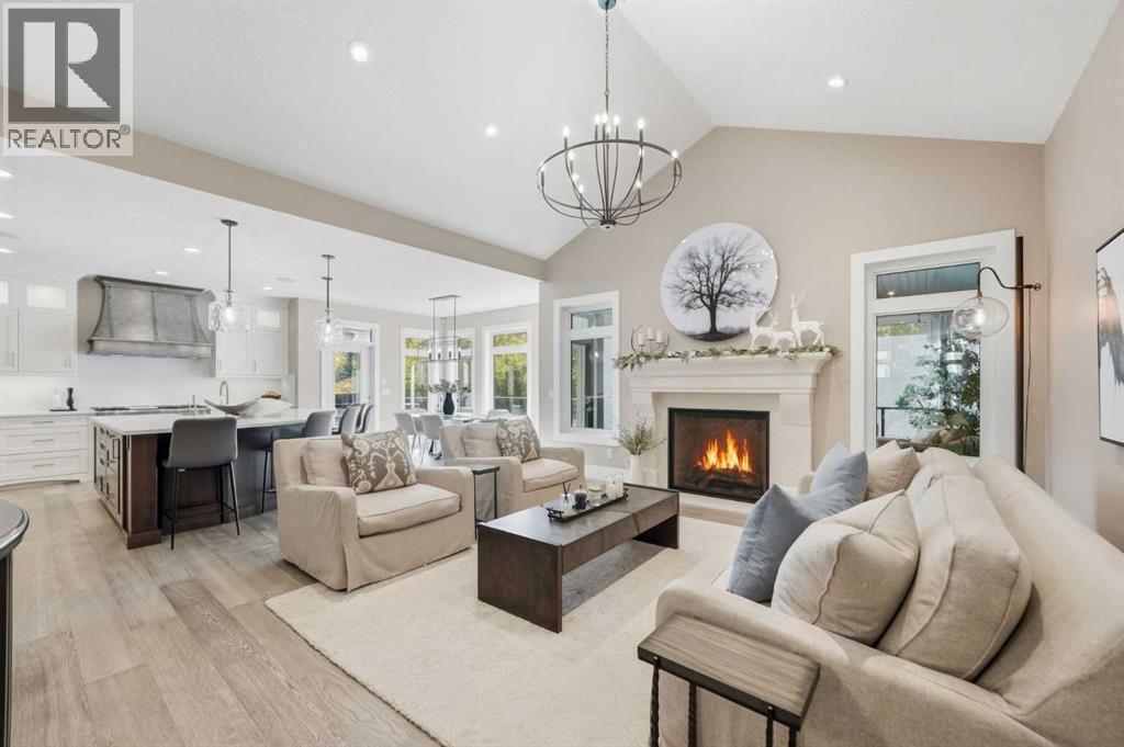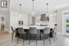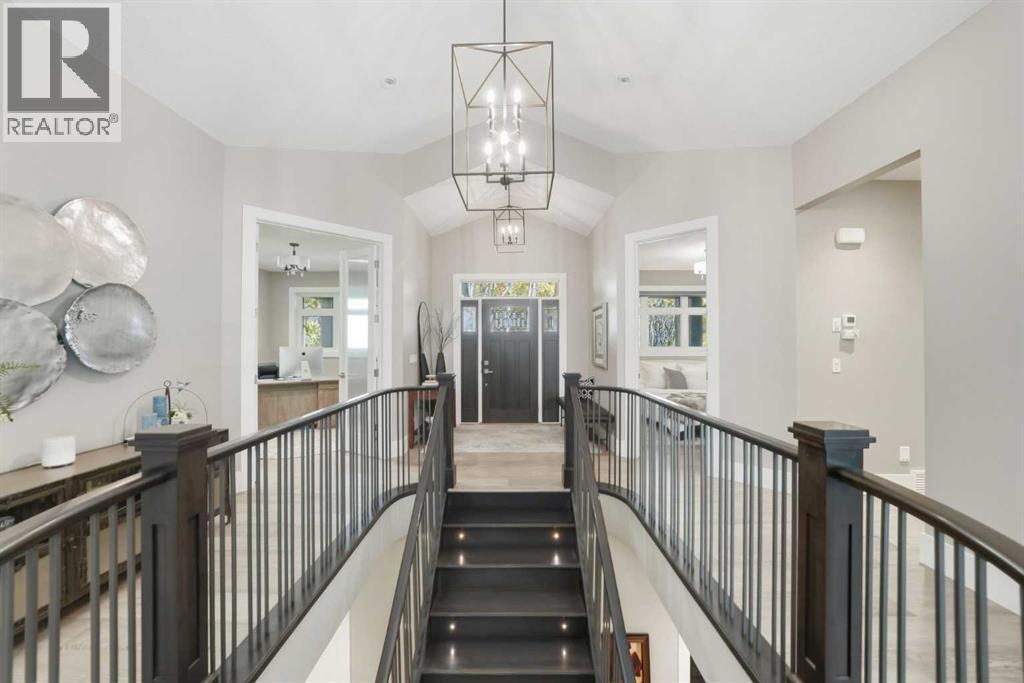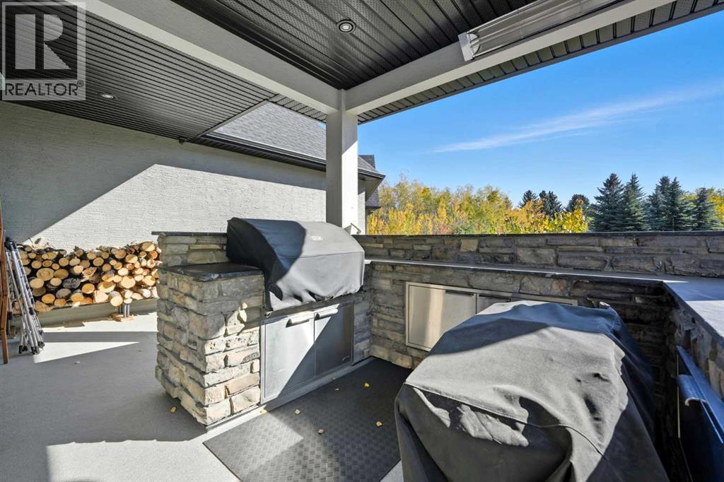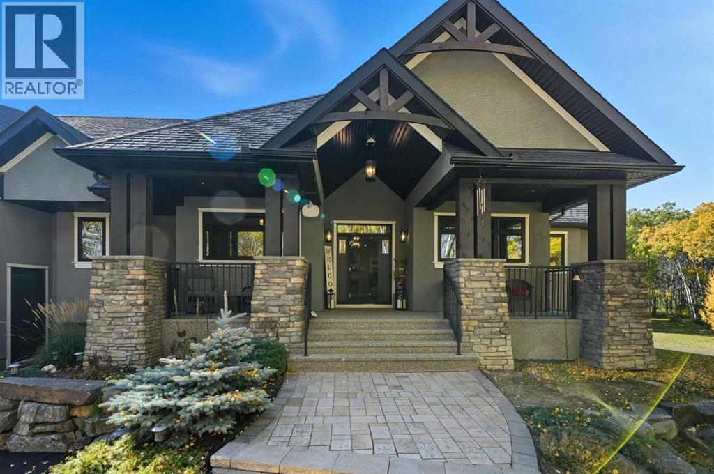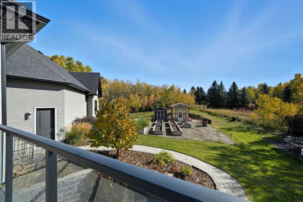 Welcome to this exceptional family acreage retreat in the peaceful community of Eagle Bend Estates, set on nearly 3 acres of beautifully landscaped grounds just minutes south of Calgary. This stunning 3+2 bedroom, 4.5 bath bungalow combines timeless design, quality craftsmanship, and modern comfort—perfect for families seeking space, serenity, and connection to nature without sacrificing convenience. Step inside to discover a warm, inviting main level featuring over 2,400 sq ft of thoughtfully designed living space. Vaulted ceilings and large windows flood the open concept great room with natural light, complementing hardwood floors and a striking feature fireplace that anchors the space. The gourmet kitchen is the heart of the home—designed for family gatherings and entertaining alike—with sleek quartz countertops, a large centre island, built-in appliances including a Miele steam oven, and a fully paneled fridge and freezer for a seamless custom look. Adjacent to the kitchen, the spacious dining area and sunroom open to a covered patio for effortless indoor-outdoor living. The primary suite is a peaceful retreat with a generous walk-in closet and a luxurious ensuite featuring a soaker tub, steam shower, and dual vanities. Two additional bedrooms (one currently used as an office) on the main level share a stylish 3-piece bath, while a well-planned mudroom and laundry area enhance everyday functionality. The fully developed lower level expands the living space with a large family and games area, wet bar, media room, two additional bedrooms each with a private ensuite—ideal for teens or guests. Comfort and quality are found throughout with central A/C, built-in sound, and abundant storage. Outdoors, this property truly shines. A paved lane leads to the home, framed by mature trees and meticulous landscaping. The oversized triple attached heated garage boasts 14-foot ceilings—perfect for large vehicles, hobbyists, or additional storage. A covered deck with infrared he aters, outdoor speakers and custom outdoor kitchen with BBQ oven and built-in grill create an ideal setting for outdoor entertaining. The nearly 3-acre lot includes gutter guards on the house, manicured lawns, a hot tub, greenhouse, and a sport court supplied by its own dedicated well, separate from the domestic well serving the home. Designed for families who love to live, entertain, and play, this property balances practicality with luxury. With underground sprinklers, thoughtful irrigation, and ample space to enjoy every season, it offers true country living with city convenience just minutes away. Located in a friendly, sought-after community close to schools, shopping, and major routes, this home provides the perfect blend of rural tranquility and urban accessibility. A rare offering where quality, comfort, and lifestyle come together—welcome home to Eagle Bend Estates. (id:6769)