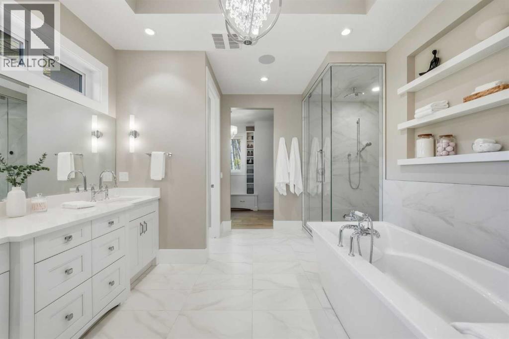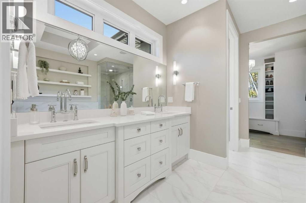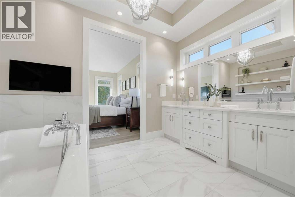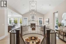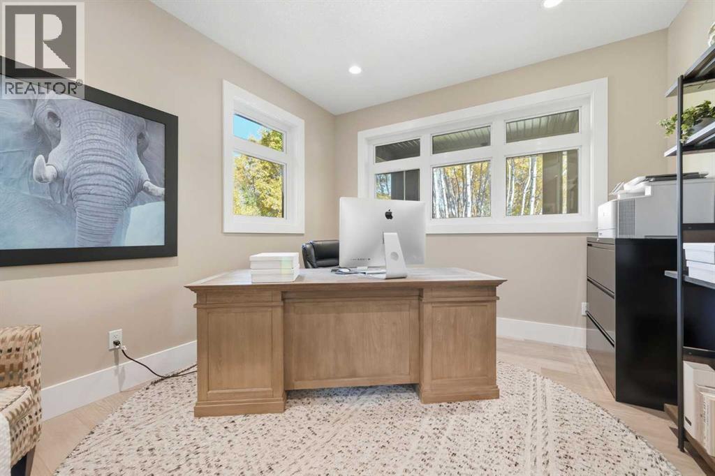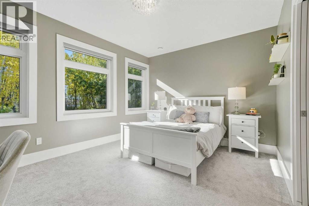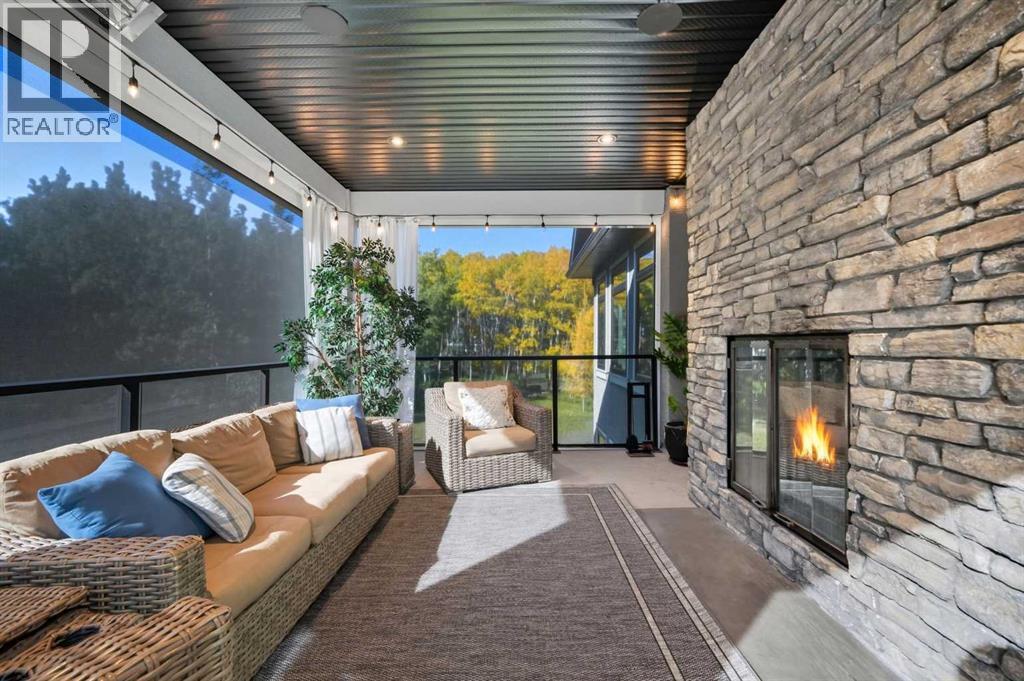 Welcome to this exceptional family acreage retreat in the peaceful community of Eagle Bend Estates, set on nearly 3 acres of beautifully landscaped grounds just minutes south of Calgary. This stunning 3+2 bedroom, 4.5 bath bungalow combines timeless design, quality craftsmanship, and modern comfort—perfect for families seeking space, serenity, and connection to nature without sacrificing convenience. Step inside to discover a warm, inviting main level featuring over 2,400 sq ft of thoughtfully designed living space. Vaulted ceilings and large windows flood the open concept great room with natural light, complementing hardwood floors and a striking feature fireplace that anchors the space. The gourmet kitchen is the heart of the home—designed for family gatherings and entertaining alike—with sleek quartz countertops, a large centre island, built-in appliances including a Miele steam oven, and a fully paneled fridge and freezer for a seamless custom look. Adjacent to the kitchen, the spacious dining area and sunroom open to a covered patio for effortless indoor-outdoor living. The primary suite is a peaceful retreat with a generous walk-in closet and a luxurious ensuite featuring a soaker tub, steam shower, and dual vanities. Two additional bedrooms (one currently used as an office) on the main level share a stylish 3-piece bath, while a well-planned mudroom and laundry area enhance everyday functionality. The fully developed lower level expands the living space with a large family and games area, wet bar, media room, two additional bedrooms each with a private ensuite—ideal for teens or guests. Comfort and quality are found throughout with central A/C, built-in sound, and abundant storage. Outdoors, this property truly shines. A paved lane leads to the home, framed by mature trees and meticulous landscaping. The oversized triple attached heated garage boasts 14-foot ceilings—perfect for large vehicles, hobbyists, or additional storage. A covered deck with infrared he aters, outdoor speakers and custom outdoor kitchen with BBQ oven and built-in grill create an ideal setting for outdoor entertaining. The nearly 3-acre lot includes gutter guards on the house, manicured lawns, a hot tub, greenhouse, and a sport court supplied by its own dedicated well, separate from the domestic well serving the home. Designed for families who love to live, entertain, and play, this property balances practicality with luxury. With underground sprinklers, thoughtful irrigation, and ample space to enjoy every season, it offers true country living with city convenience just minutes away. Located in a friendly, sought-after community close to schools, shopping, and major routes, this home provides the perfect blend of rural tranquility and urban accessibility. A rare offering where quality, comfort, and lifestyle come together—welcome home to Eagle Bend Estates. (id:6769)