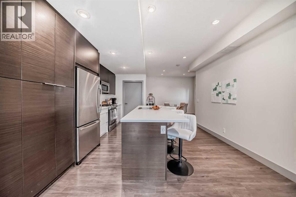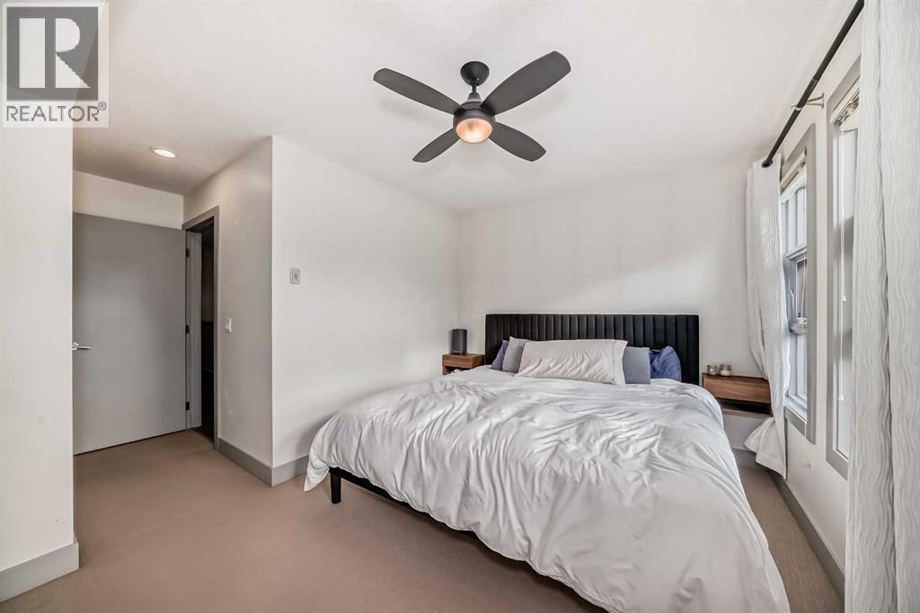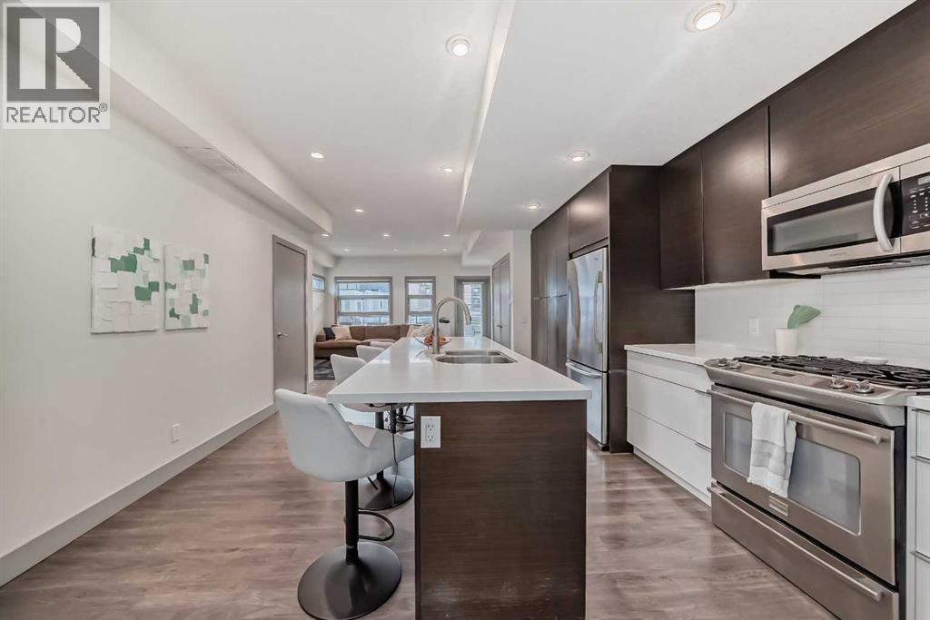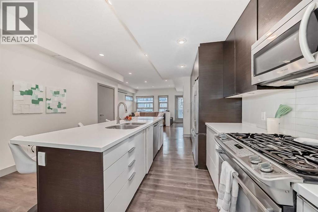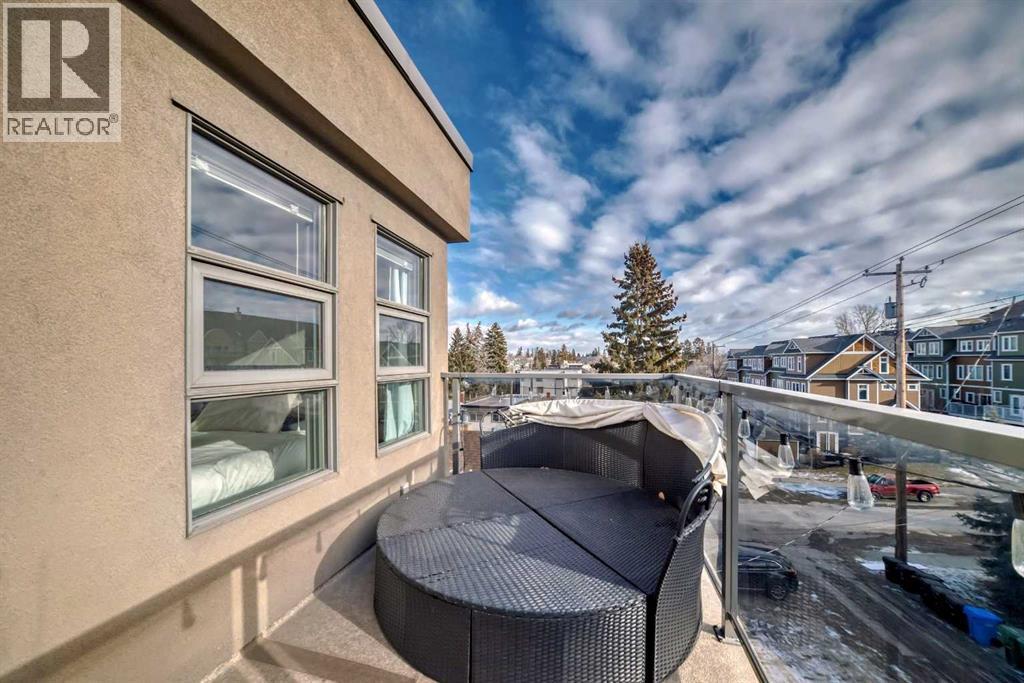 NEW IMPROVED PRICE!! Rare top floor, 2 storey, end unit condo with South exposure located in the highly desirable community of South Calgary. Inside you'll find the main floor is bright and open with 9' ceilings, a modern kitchen with a large island, quartz countertops, upgraded stainless steel appliances including a gas stove and plenty of cupboards & countertop space. Dining room and a half bath complete the main floor. On the upper level there are 2 good sized primary bedrooms. The first primary bedroom has a 5pc ensuite, a huge walk-in closet, and flex space off of the balcony. The second primary bedroom also has its own 4pc ensuite bathroom and walk-in closet. The in-suite laundry completes the upper level. This unit has 2 amazing South facing balconies, one on each level. The parking is a titled stall which is securely located in the buildings heated, underground parkade. This is a well managed, quiet complex with only 8 units, situated on an ideal location with close proximity to trendy 17th Ave and popular Marda Loop. A great investment perfect for downtown professionals seeking hassle free lifestyle with amazing location and value. Take advantage of this exceptional buy. Shows 10 out of 10! (id:6769)