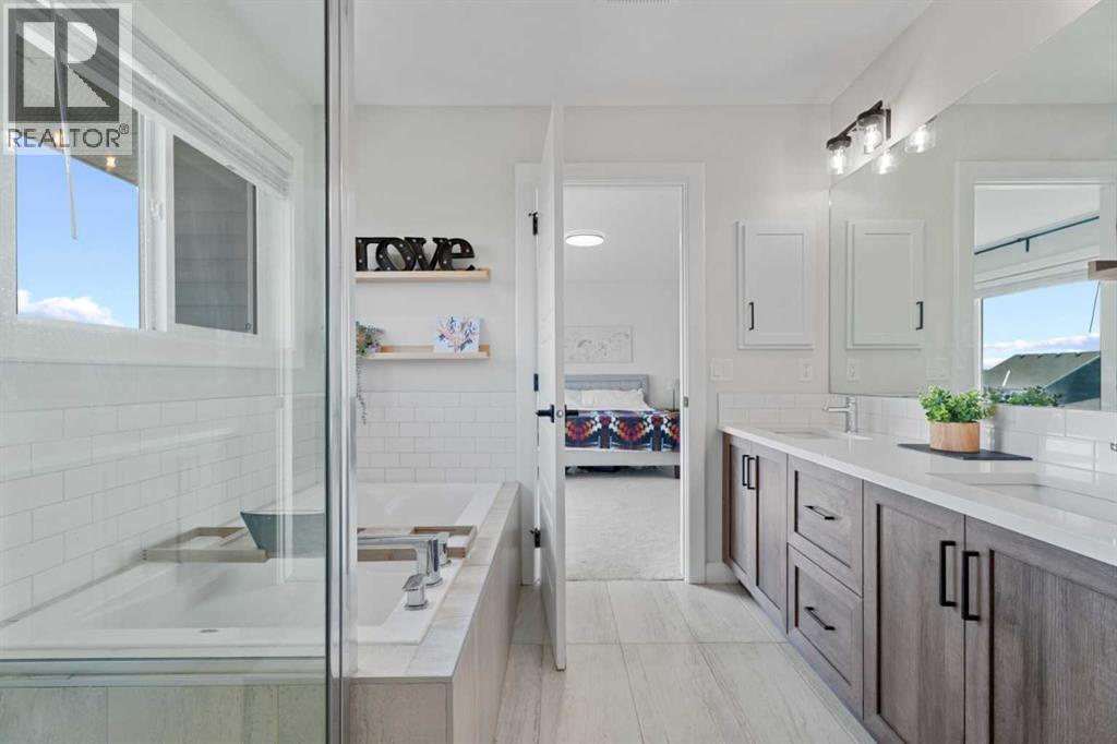 ~~ NEW LOWER PRICE ~~ OPEN HOUSE ~ 2-4 ~ SAT & SUN ~ Welcome home to this stunning, nearly new walkout home that is designed for modern family living and entertaining. At the heart of the home is a gorgeous kitchen with a large island, a separate pantry, and a family-sized walkthrough from the garage for easy everyday flow. The dining room boasts a striking feature wall (you can access the main level balcony from the dining room) and the living room is warmed by a showstopper gas fireplace with an included art frame TV. An office/flex room and a stylish 2-piece powder room complete this level. The upper level offers 4 bedrooms plus a bonus room (that divides the primary suite from the other 3 bedrooms) and is filled with thoughtful upgrades throughout. The primary suite is a true retreat with a luxurious 5-piece ensuite, walk in closet with room for a king sized bedroom set. This floor also features a 5-piece family bath, convenient laundry with a sink rough-in, and two of the bedrooms have walk-in closets. The unfinished walkout basement is bright and open, with a bathroom rough-in,a great utility area complete with a laundry tub. Additional highlights include a 50-gallon hot water tank, dual-zone furnace, main level flooring upgraded to showhome standards and the garage was bumped out an additional 2 feet – so yes, your truck will fit! Outside, enjoy the thoughtfully landscaped backyard with a pergola, a fenced dog run, and a gas line on the back deck for BBQs. Located in beautiful Air Ranch, with access to the walking/biking trails, schools, conveniently accessible main roads for commuting, this home combines style, function, and space for the whole family—move-in ready and waiting for you! (id:6769)