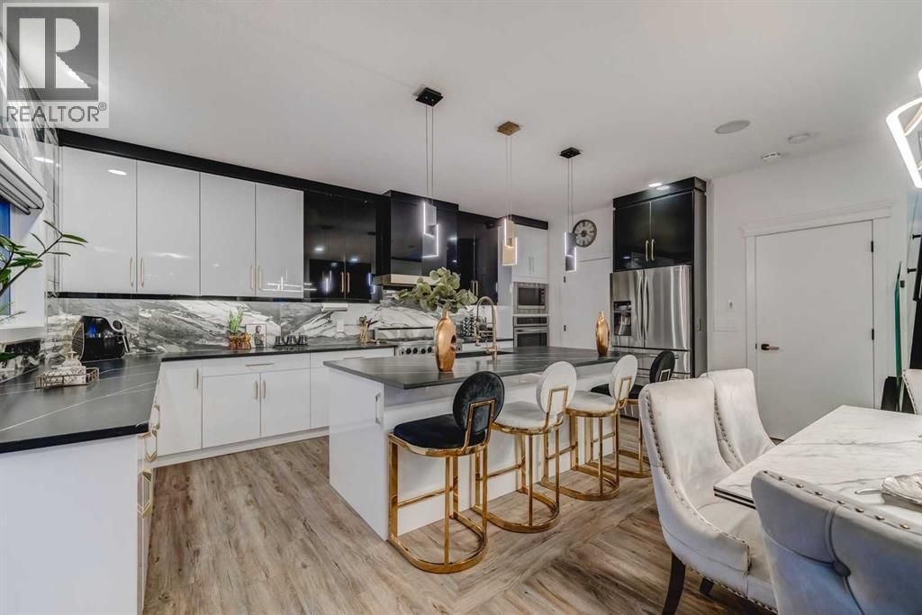 EXQUISITELY REMODELED DESIGNER HOME offering 5 bedrooms, 3.5 baths, and around 4,200 SQ. FT. of developed living space on a RARE 8,500 SQ. FT. PIE LOT in sought-after Rocky Ridge community.A dramatic entry with gold-accent columns and custom wall paneling opens to a stunning living room featuring a floor-to-ceiling slab fireplace, expansive windows, and MOTORIZED BLINDS. The chef’s kitchen boasts CUSTOM CABINETRY, GRANITE COUNTERS, HIGH-END APPLIANCES, and a walk-through pantry leading to the OVERSIZED HEATED GARAGE. The main floor also includes a private office and two elegant dining areas.Upstairs, a vaulted bonus room captures MOUNTAIN VIEWS. The primary suite offers a SPA-INSPIRED ENSUITE and CUSTOM BUILT-IN WALK-IN CLOSET. Three additional bedrooms include built-in beds, including a unique double-bed design.The fully developed basement showcases an IMPRESSIVE SECONDARY SUITE (ILLEGAL) with FULL KITCHEN, spacious living area, luxury bath, and custom walk-in closet – ideal for MULTI-GENERATIONAL LIVING OR INCOME POTENTIAL.Additional features include BUILT-IN SPEAKERS, IN-FLOOR HEATING, A/C, SOLAR-CHARGED SMART BLINDS, stair sensor lighting, central vacuum, SMART TOILETS, new water tank, and water filtration system.Seller willing to negotiate furnishings, offering the opportunity to purchase the home FULLY FURNISHED FOR A MOVE-IN-READY EXPERIENCE.Enjoy EXCLUSIVE ACCESS TO ROCKY RIDGE RANCH AMENITIES – canoeing, kayaking, rowboats, tennis, basketball, pickleball, splash park, playground, clubhouse rental, skating, fitness classes, and community events.A ONE-OF-A-KIND DESIGNER HOME that blends TIMELESS EUROPEAN-STYLE LUXURY with MODERN CONVENIENCE in a premier NW location. (id:6769)
