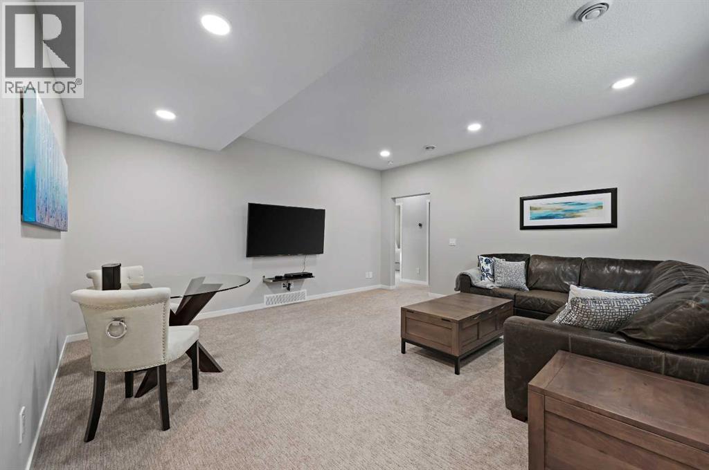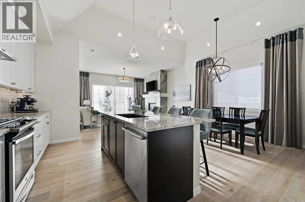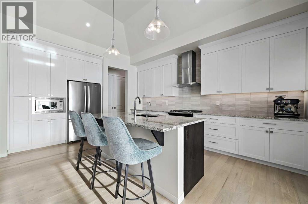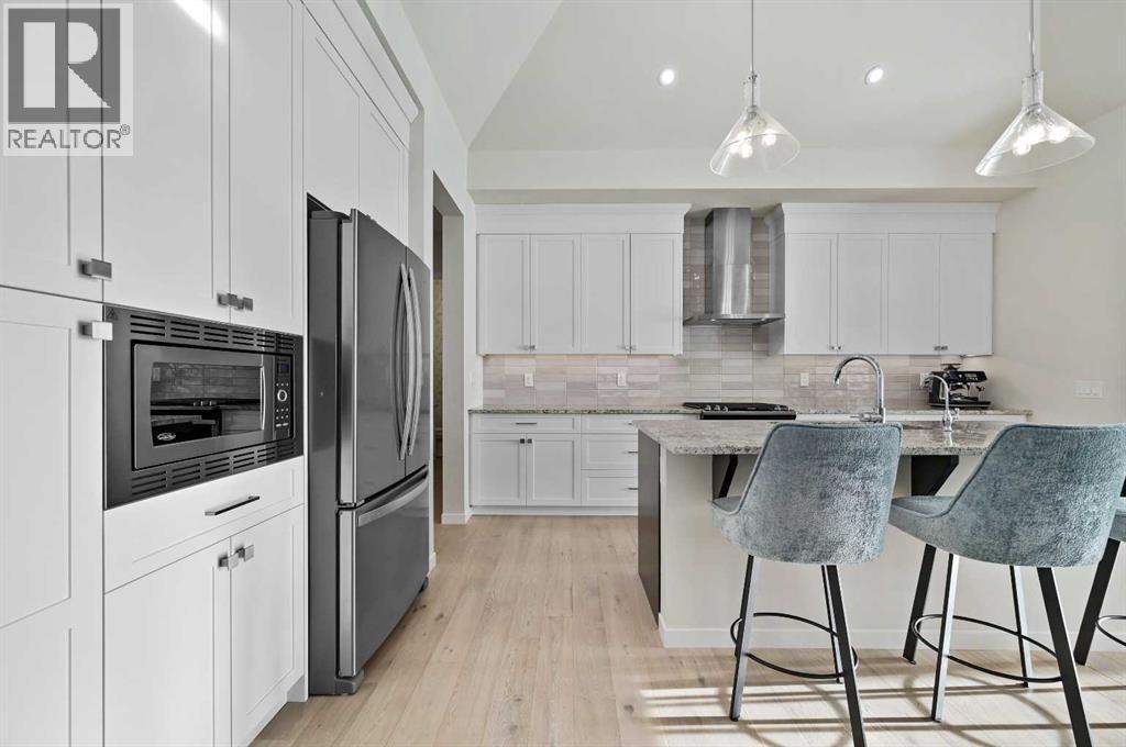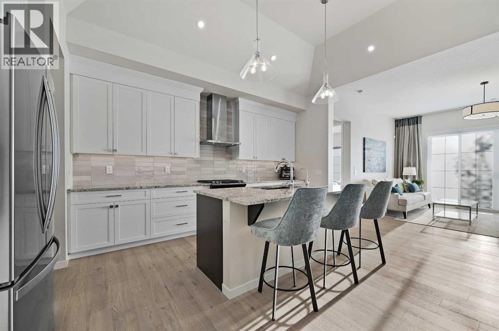 Experience refined living in this luxurious semi-detached villa bungalow, perfectly situated in the prestigious community of Riverstone — just steps from the tranquil Bow River and scenic walking and running paths. From the moment you step inside, you’ll be captivated by the home’s 10-foot ceilings, open-concept design, and abundant natural light that create an atmosphere of effortless elegance. The chef-inspired kitchen is a true showpiece, featuring stainless steel appliances, granite countertops, and an oversized island ideal for both culinary creativity and stylish entertaining. The living room exudes sophistication with its gas fireplace as the focal point and double patio doors leading to a private backyard oasis. The primary suite is a serene retreat complete with a spa-like ensuite featuring a dual vanity, heated floors, water closet, and a beautifully appointed California walk-in closet. Conveniently located off the mudroom/laundry area, a two-piece powder room and double attached garage provide both practicality and ease. Lower level offers exceptional versatility with 2 spacious bedrooms, a full bathroom, and an expansive recreation area perfect for entertaining or relaxing. A dedicated gym, home office, or den adds even more flexibility to suit your lifestyle. Every closet throughout the home is generously sized, offering abundant storage and thoughtful design at every turn. Additional highlights include central air conditioning, professional landscaping, Gemstone exterior lighting, fully finished drywalled garage, underground irrigation, and upgraded dishwasher, washer and dryer. Discover the perfect harmony of comfort, style, and quality craftsmanship in this remarkable Riverstone residence — a home that truly exceeds expectations! (id:6769)