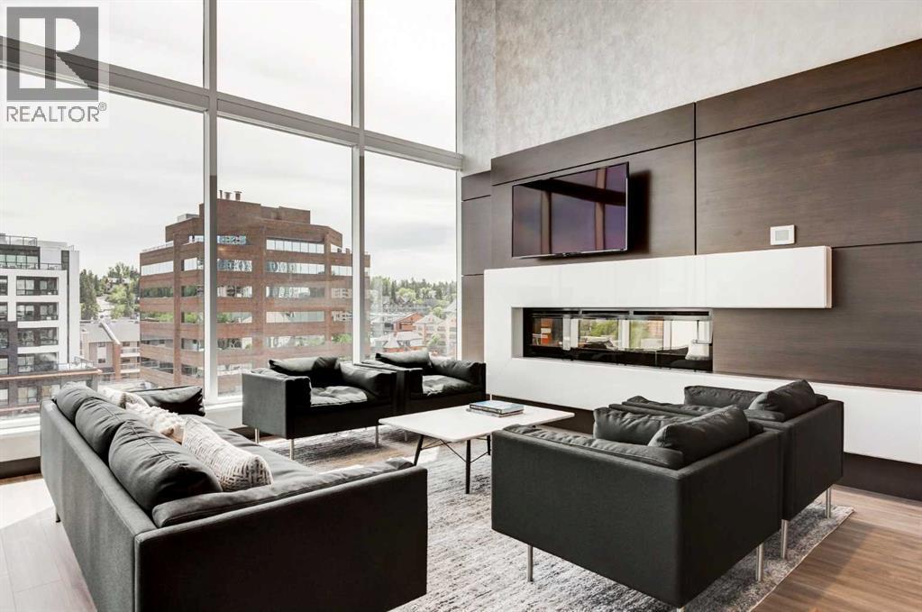 Welcome to unit 703 in The Royal! A lovely 2 bedroom 2 bathroom double balcony corner unit with stunning downtown views. The floor to ceiling windows flood the main living space with natural light and the north and east vistas are stunning. The bright kitchen is fully equipped with a large quartz island, high end appliances, plenty of cabinet and counter space with custom built in - all overlooking the main living and dining areas, perfect for entertaining. Large primary bedroom, with direct access to the second balcony, features a walk-in closet, an ensuite with a large glass door shower, double vanity and heated floors. The second bedroom is located on the opposite side of the unit, perfect for guests or home office. Other features include air conditioning, a gas line on the balcony for bbq, in-suite full size stacked laundry and additional 4 piece bathroom with soaker tub. Residents can enjoy the many amenities including a fitness center, steam room, sauna, squash court, 24-hour concierge/security, outdoor courtyard, and private dining area for larger get togethers. Located just off 17th avenue you will have quick access to great shopping, restaurants, groceries, coffee shops and pubs. Building is very pet friendly, with approval, and there are many parks and green spaces near by. This unit is complete with a secure heated underground parking space and a separate storage locker. An excellent well cared for urban home. (id:6769)