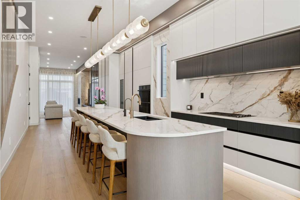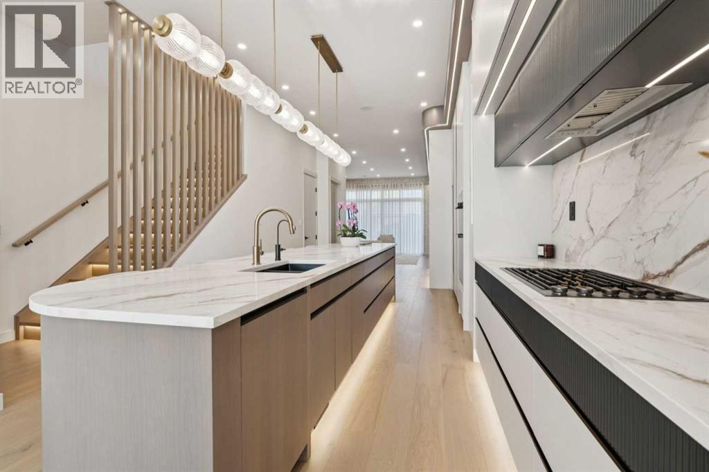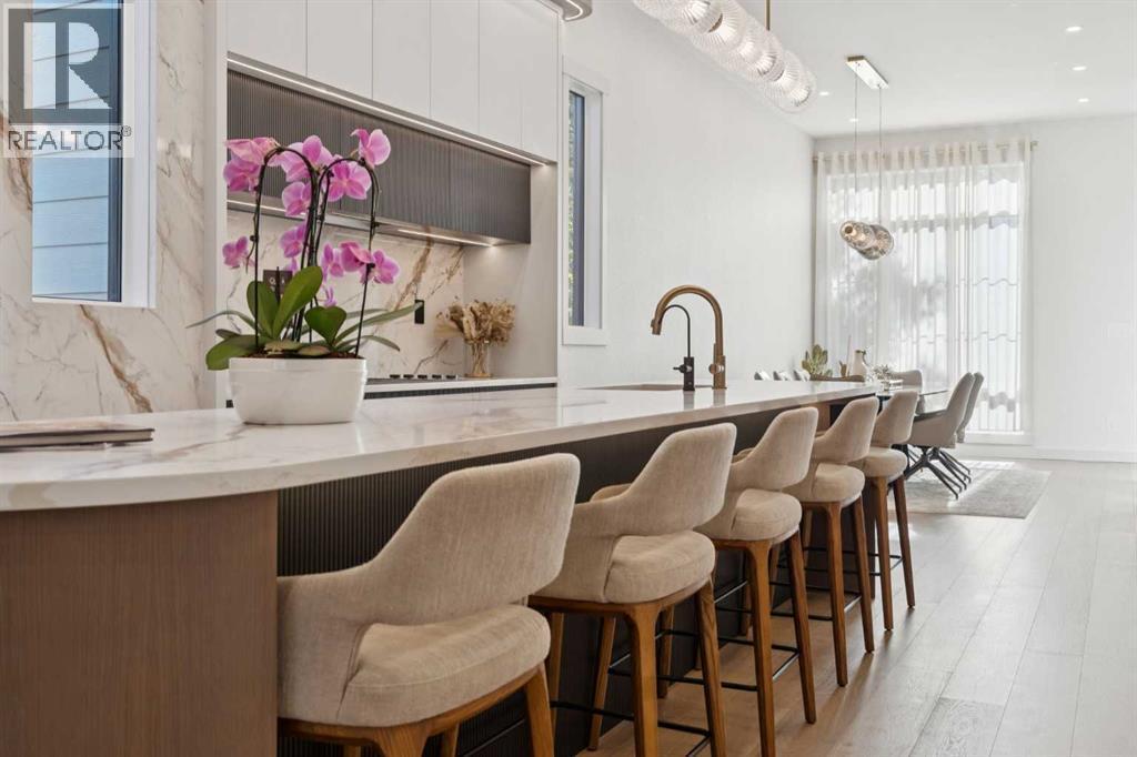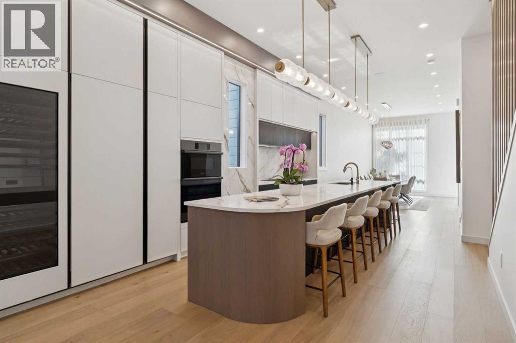 Modern Luxury Meets Urban Living in InglewoodWelcome to this stunning brand-new detached home in one of Calgary’s most sought-after inner-city communities — Inglewood. Thoughtfully designed and originally built by the owner for his own family, this residence showcases an extraordinary level of craftsmanship and detail rarely found in new construction.Step inside to a bright, open-concept main floor featuring 11-foot ceilings, large-plank white oak engineered hardwood, and floor-to-ceiling custom storage. The inviting front patio sets the tone for urban living, perfect for morning coffee or evening conversation. The chef-inspired kitchen is an entertainer’s dream, complete with an oversized island, Fisher & Paykel built-in refrigerator, Cove/Sub-Zero dishwasher, 6-foot wine fridge, and elegant glass-enclosed lighted shelving. A cozy gas fireplace, natural stone powder room with smart bidet toilet, and functional side entrance mudroom with built-in seating complete the main floor.Upstairs, natural light floods the space through expansive windows. A flex/bonus area offers versatility for an office or reading nook. The primary retreat is a true sanctuary featuring a freestanding soaker tub, dual vanities, glass-enclosed steam shower with heated floors, and a custom walk-in closet with floor-to-ceiling built-ins, lighted glass drawers, and cupboards. Enjoy breathtaking views of the Bow River and nearby park — a rare find in urban living. Two additional bedrooms, each with their own 3-piece ensuite and custom walk-in closets, provide exceptional comfort and privacy. The laundry room with extra storage and sink adds convenience to the upper level.The fully developed basement offers incredible flexibility with two bedrooms (one with a private ensuite), an additional 3-piece bath, full kitchen with Samsung stainless steel appliances, separate laundry, and roughed-in in-floor heating. While currently set up as an illegal suite, it includes a dedicated side entrance and al l the essentials should a future owner wish to pursue legal secondary suite status.Outside, the backyard oasis features a large vinyl deck, low-maintenance landscaping with exposed concrete, and a detached double garage equipped with a dedicated electrical panel and dual overhead doors — ideal for entertaining or practical use.Additional features include a high-end New York lighting package, $9,000 water softener and filtration system, and separate Nu-Air HRV systems for both upper and lower levels.Ideally located in vibrant Inglewood, you’ll enjoy easy access to parks, pathways, shops, restaurants, and downtown Calgary — all while embracing the best of inner-city living. (id:6769)