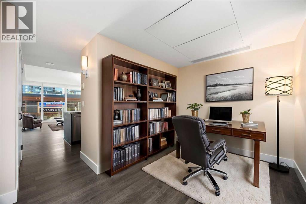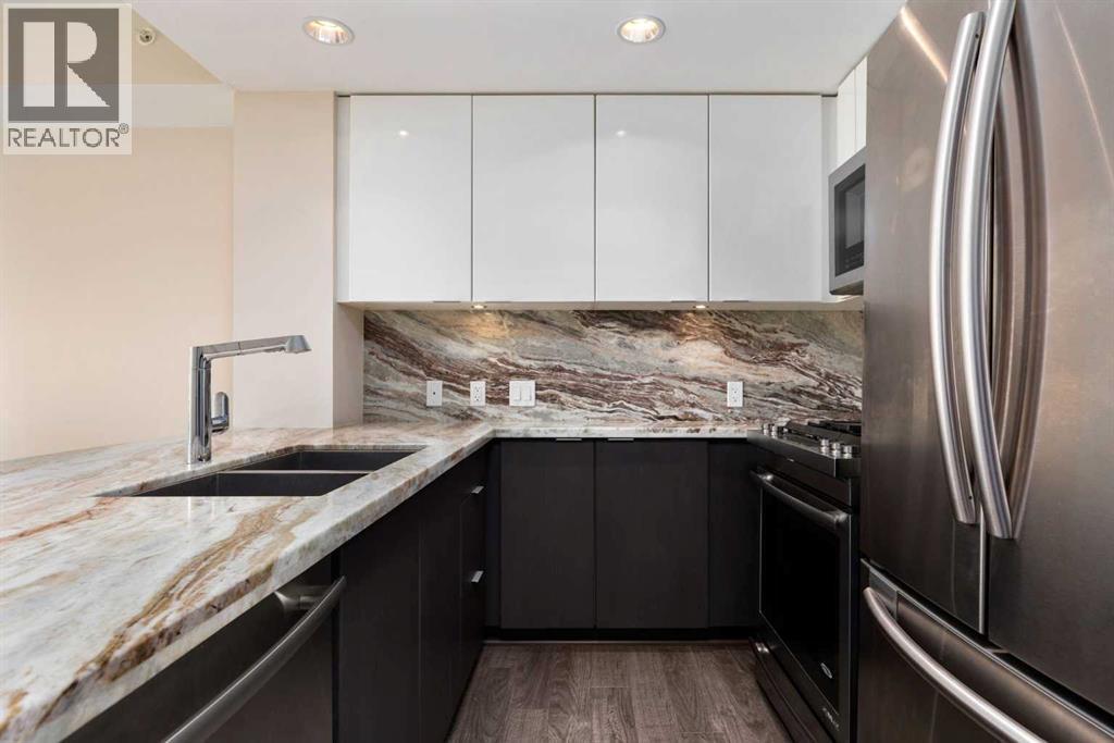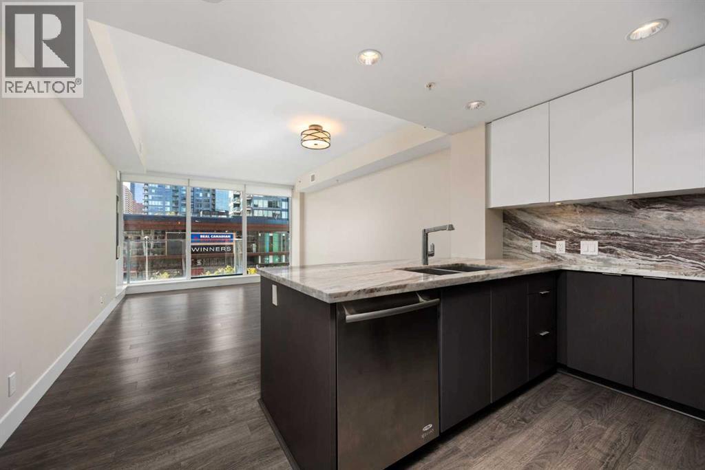 Welcome to the Evolution in East Village! Experience the best of urban living with restaurants, cafés, shopping, and entertainment just steps away. Enjoy riverfront pathways, parks, and easy access to transit—all from your doorstep.This 2-bedroom + den, 2-bath condo features a bright, open-concept layout with floor-to-ceiling windows and city skyline views from your balcony. The modern kitchen offers high-end stainless-steel appliances, granite countertops and backsplash, ample cabinetry, and a large breakfast bar—perfect for entertaining.Additional features include central A/C, in-suite laundry, and extra storage. Both bedrooms showcase downtown views; the primary bedroom has a walk-in closet and a 4-piece ensuite with granite finishes, while the second bathroom offers a fully tiled shower.Residents enjoy concierge and security services, fitness centre, saunas, steam room, party room, outdoor patio with BBQ area, heated underground parking, and a secure storage locker.Modern comfort meets convenience in the heart of East Village—city living at its finest! Call today for your private showing! (id:6769)