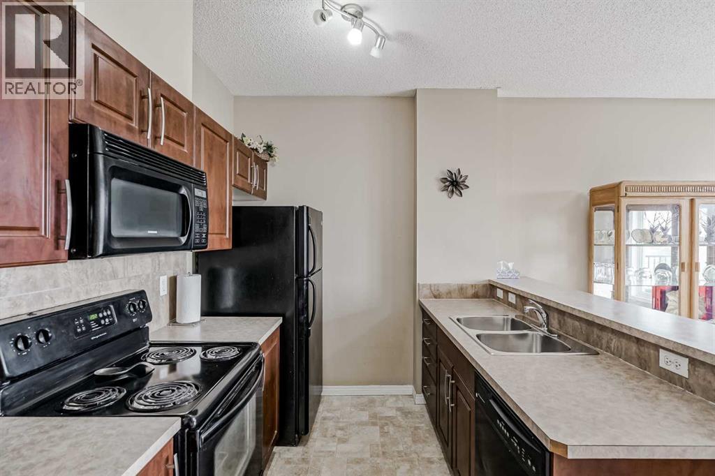 Discover the perfect blend of comfort and convenience in this bright and spacious one-bedroom condo at Bella Casa. Situated on the top floor, this corner unit offers an open layout with 9 ft. ceilings and plenty of natural light. The kitchen features ample cabinetry and a raised breakfast bar, opening into a cozy living room complete with an electric fireplace. Step outside onto your private balcony to enjoy breathtaking views of downtown Calgary and the mountains. The generous primary bedroom includes a walk-through “His & Hers” closet leading to a 4-piece bathroom. This home also comes with titled underground parking, plus visitor and handicapped parking for your guests. Bella Casa residents enjoy access to a central courtyard with a gazebo and BBQ area, perfect for relaxing or entertaining. The building is pet-friendly (with board approval) and ideally located close to shops, restaurants, and transit, with quick access to downtown Calgary. Condo fees conveniently cover all utilities except electricity. Available for immediate possession – don’t miss this opportunity to make Bella Casa your new home. (id:6769)