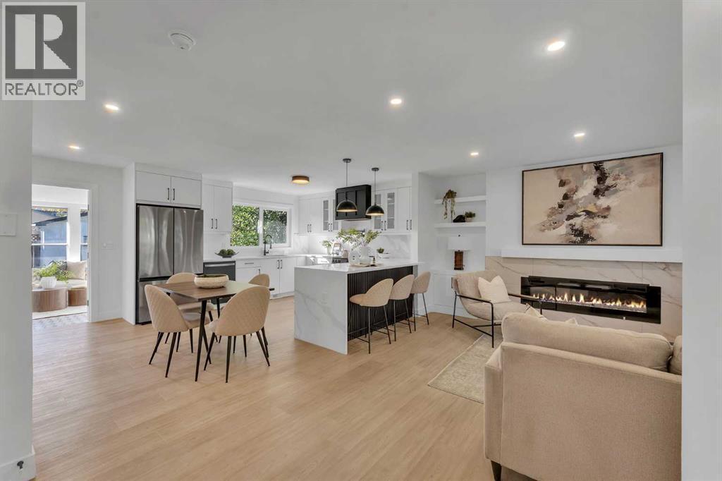 FRONTING ON GREEN SPACE!! FULLY RENOVATED BUNGALOW!! 2100+ SQFT OF LIVING SPACE!! 4 BEDROOMS!! 3 FULL BATHS!! UPGRADES INCLUDE: UPDATED LANDSCAPING - NEW GARAGE DOORS - FULLY REFRESHED SUNROOM WITH HEATING - NEW WINDOWS - MASTER BEDROOM WITH FULL BATH - WET BAR IN BASEMENT!! Step inside to a bright living area with a cozy fireplace that flows seamlessly into the dining space and a custom kitchen featuring STAINLESS STEEL APPLIANCES, WATERFALL COUNTERTOP, and modern finishes. The main floor offers 2 bedrooms including a spacious PRIMARY BEDROOM with WALK-IN CLOSET and 3PC ENSUITE BATH, plus another bedroom and full 4PC bath. A SUNROOM with backyard access completes the main level. The lower level is designed for flexibility with a HUGE REC ROOM, electric fireplace, wet bar with bar fridge, 2 bedrooms, a 3PC bath, and laundry. Outside, enjoy a private backyard with patio and an OVERSIZED SINGLE DETACHED GARAGE as well as EXTRA PARKING PAD. This Braeside bungalow is more than a home — it’s a perfect blend of MODERN UPDATES, FUNCTIONAL SPACE, and a PEACEFUL GREEN SPACE SETTING! (id:6769)