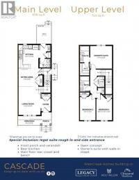 Westcreek Home presents the Cascade plan offering a perfect blend of style and functionality, starting with a charming front porch with stone accent exterior. Step inside to a spacious front lifestyle room featuring 9’ knockdown ceilings and durable vinyl plank flooring. The center dining area flows seamlessly into a beautifully appointed rear kitchen, complete with quartz countertops, extended height white cabinets with upper soffit fillers, a striking chimney hood fan, and a tiled backsplash. A gas line rough-in to the stove adds convenience for cooking enthusiasts. Additional features include a rear entry with a closet, a 2-piece bath, and a dual-door pantry closet for ample storage. Upstairs, plush carpeting enhances comfort in the two front bedrooms and hallway, while the rear primary suite boasts vinyl plank flooring in the 4-piece bath and a generous walk-in closet. The bath is elegantly finished with a quartz storage vanity and a tub surround accented with decorative tile. A dual-door upper laundry room with built-in upper storage cabinets adds practicality. Another 4-piece bath with vinyl plank flooring, quartz vanity and tiled tub surround serves the upper level. A linen closet completes the upper floor. The basement offers a separate side entry and is ready for your personal touch, featuring 9’ ceilings and rough-ins for a bath and kitchen, providing excellent potential for future development. Experience this amazing plan, community with unique options to make this your smart investment! (id:6769)