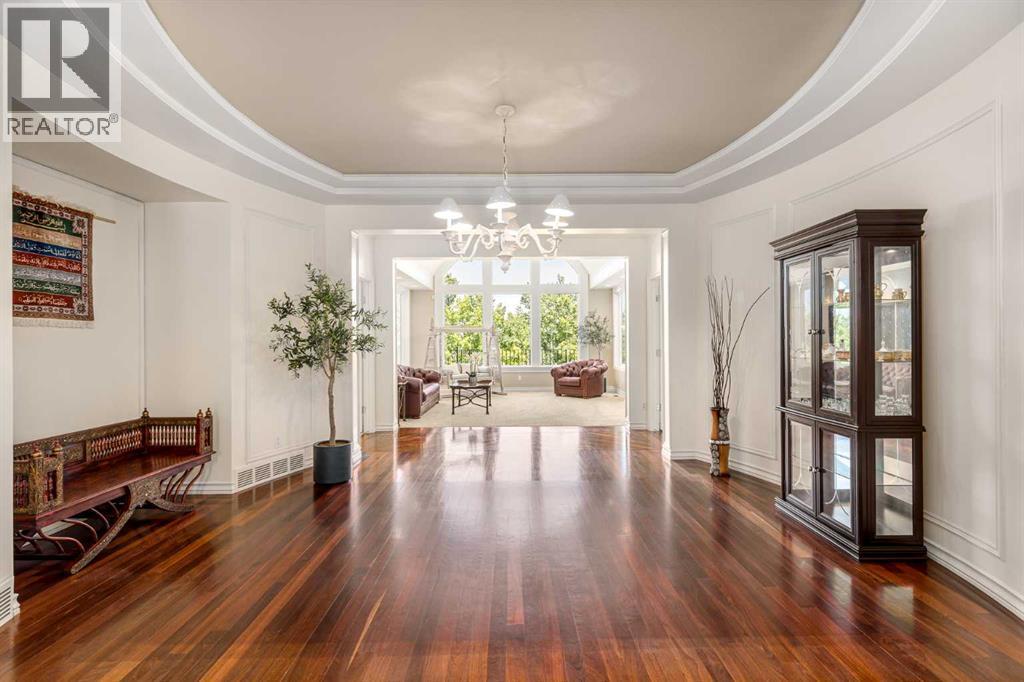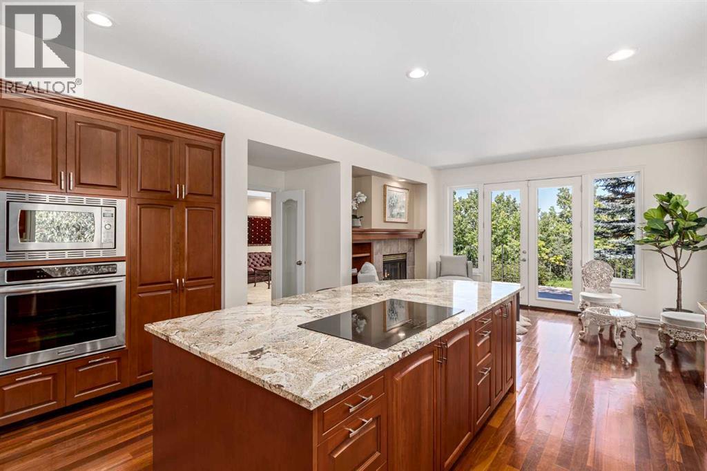 WALKOUT BUNGALOW | 4,700 SQFT OF LIVING SPACE | TRIPLE GARAGE w/ HEATED EPOXY FLOORS | IMMACULATE CONDITION | REMODELLED BASEMENT | BACKING ONTO FOREST + GOLF COURSE | Welcome to 33 Ridge Pointe Drive - a rare opportunity to own one of the most distinguished homes on arguably one of the best streets in Heritage Pointe. Backing directly onto forest and golf course, this exceptional home blends privacy, architectural elegance, and timeless luxury on over 0.35 acres. With 2,389 SQFT above grade and a fully developed walkout basement, this is one of the community’s largest bungalow floor plans and ideal for empty nesters, families, or entertainers. Inside, rich hardwood, crown molding, custom millwork, and stunning forest views define the main floor. A formal dining room provides a refined space to host, while the sunlit great room features barrel-vaulted ceilings, an incredible arched window, and a double-sided gas fireplace - perfect for cozy evenings and enjoying the views of the greenery behind. The gourmet kitchen is designed with custom cabinetry, premium stainless steel appliances, and a large granite island. Through beautiful French doors, the kitchen and breakfast nook open to the expansive patio - one of the largest available as it spans the entire width of the home - complete with a gas line and ideal for outdoor dining or quiet mornings in nature. The luxurious primary suite includes a spa-like ensuite with freestanding tub, oversized glass shower, dual vanities, and walk-in closet. The large main-floor office (or potential 4th bedroom) adds flexibility for homeowners. A newly updated powder room (2025), spacious laundry area and mudroom with new marble tile (2025) lead to the heated, oversized triple garage with epoxy floors. The fully finished walkout basement spans over 2,200 SQFT and was recently remodeled with new LVP flooring, designer paint, an expansive living and games area with a brand-new electric fireplace and custom stone surround (2025) and a wet bar. The theatre room has brand new sound-absorbing paneling (2025) can also function as a home gym or 5th bedroom. Two large bedrooms share a 4-piece bath, making this level perfect for guests or family. Additional highlights include cedar and cold storage rooms as well as sprinkler systems both in the front and back of the home. Significant updates include a new roof, garage door, and eaves (2007), window replacements and a kitchen remodel (2015), ensuite renovation (2019), new central A/C (2020), dual hot water tanks (2021), new carpets (2023), and a full basement remodel (2025). Additional features include a furnace-mounted HEPA air filtration system with UV light, a Kinetico water softener and chlorine filter, a security system, and more. A full list of features is available in the supplements. Tucked alongside the peaceful golf course and just steps from the clubhouse, this exceptional property offers quiet sophistication and a true sense of community - just minutes to Calgary’s south amenities. (id:6769)