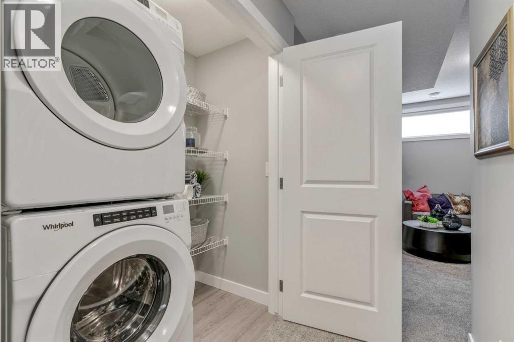 This beautifully designed show home features a double detached garage and welcoming front porch, complemented by 9’ knockdown ceilings throughout the main level. The front lifestyle room offers a spacious area to relax, while a dual-door closet provides ample storage. The center dining area flows effortlessly into the rear kitchen, which boasts stainless steel appliances including a slide-in stove, over-the-range microwave, French door refrigerator, and dishwasher, all enhanced by soft-close cabinetry, quartz countertops, and a stylish tiled backsplash with added upper soffit filler. A dual-door pantry and rear entry with a coat closet add convenience, along with a 2-piece bath on the main floor. Upstairs, plush carpeting covers the hall and two front bedrooms, while the rear primary suite features vinyl plank flooring in the 4-piece bath, complete with a quartz storage vanity, tub surround with decorative tile accents, and direct access to a spacious walk-in closet. The upper laundry area includes a washer, dryer, and additional upper cabinets for storage. A second vinyl plank 4-piece bath with quartz vanity and tiled tub surround serves the upper level, alongside an upper linen closet. The finished legal basement suite with a separate side entry offers comfortable living with carpeted floors and knockdown ceilings. It includes a common area leading to the utility room, a stacked laundry closet with full-size washer and dryer, and a vinyl plank 3-piece bath featuring a separate shower, quartz storage vanity, and tile accents. The suite’s kitchen is equipped with vinyl flooring, upper and lower cabinets, stainless steel fridge, smooth-top stove, dishwasher, quartz counters, tiled backsplash, and over-the-range microwave. A rear bedroom with closet completes this self-contained living space. Not just a home but a smart investment with a legal suite and double detached garage!This home combines modern finishes, thoughtful design, and a fully finished legal suite, pe rfect for families or investors seeking comfort and versatility. (id:6769)