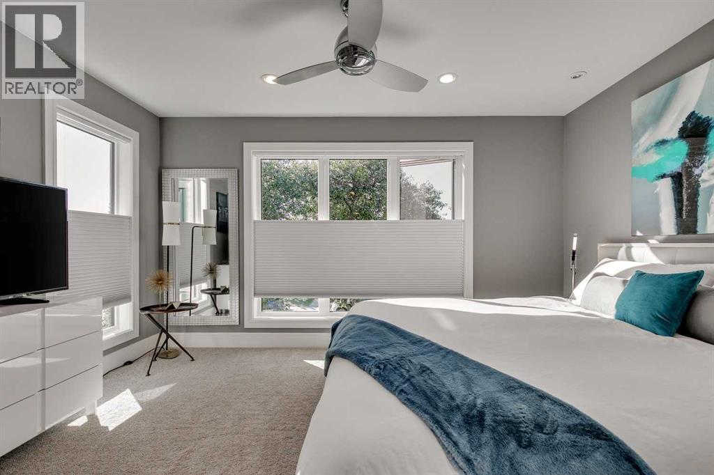 Set in Calgary’s central Windsor Park, this three-storey semi-detached home offers space, flexibility, and a design that works as well for entertaining as it does for everyday life. It combines solid construction with modern finishes and thoughtful details throughout. With over 3000 sqft of developed living space, the main floor is anchored by an open, flowing space where the kitchen, dining, and living areas connect naturally. At the front, a wall of built-ins frames the gas fireplace, giving the living room a defined yet inviting feel. The kitchen pairs clean-lined cabinetry with quartz surfaces, a gas stove, dual beverage/wine fridges, and a walk-in pantry. Just off the back entrance, a tiled mudroom with custom cabinets keeps the busy parts of life tucked out of sight. Upstairs, the primary bedroom offers a generous retreat with a walk-in closet and an ensuite featuring dual sinks, a soaker tub, and a separate shower. Two additional bedrooms and a full laundry room with sink round out this level. The top floor loft adds even more versatility, with its own bathroom and walk-in closet—ideal as a fifth bedroom, gym, studio, or quiet getaway. The basement is fully developed with in-floor heating, a bedroom, and a three-piece bathroom.Out front, the home makes a striking impression with excellent curb appeal. The landscaped yard is complemented by an extra-wide exposed aggregate sidewalk leading to the oversized front door, while underground sprinklers make upkeep effortless. Out back, the private yard has been designed for low-maintenance enjoyment. Finished with paving stone, a pergola with built-in lighting, and dual gas hookups, it’s ready for summer evenings around a fire table and dinner on the grill. Comfort and efficiency come standard with triple-glazed windows, spray foam insulation, automatic lighting in the stairs and pantry, distributed audio throughout as well as on the patio, central A/C, and a heated garage. With Chinook Centre, Glenmore Trail, Deerf oot Trail, and downtown all just minutes away, convenience is part of the package. This home has been exceptionally well maintained, giving you more than just a place to live, it offers peace of mind. It truly has to be seen to be appreciated, so book your showing today! (id:6769)