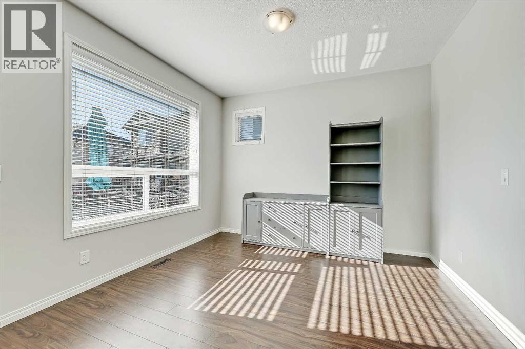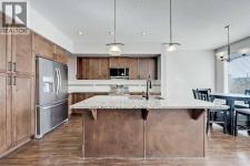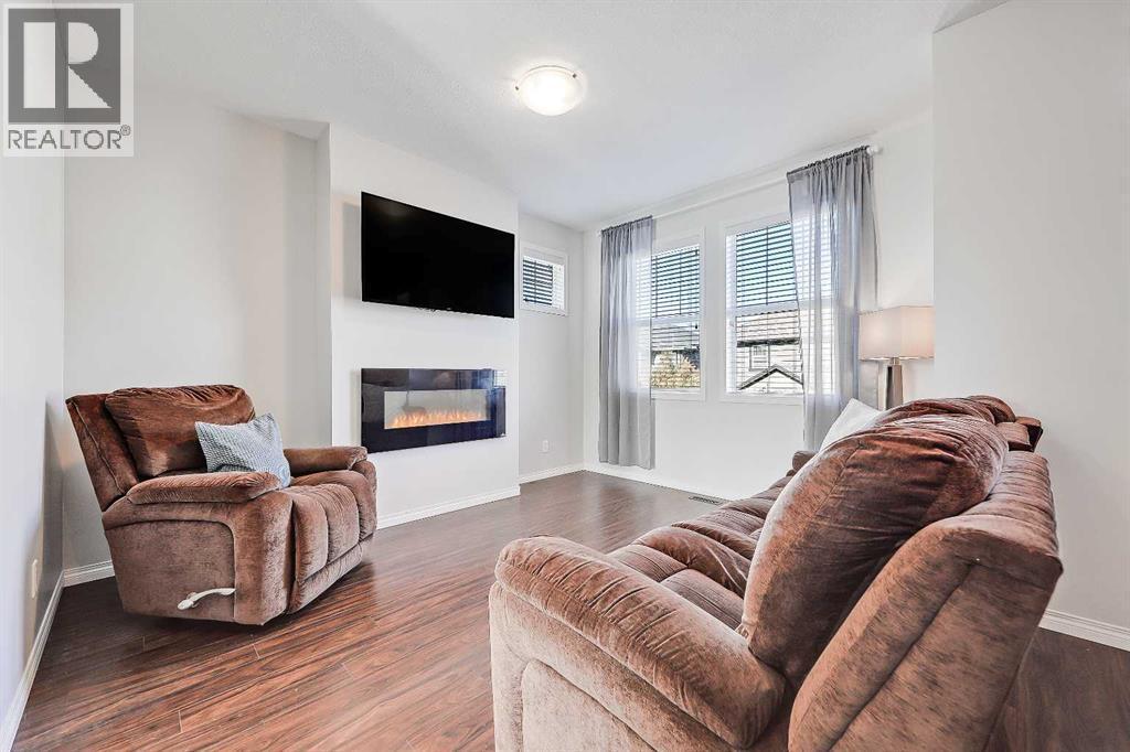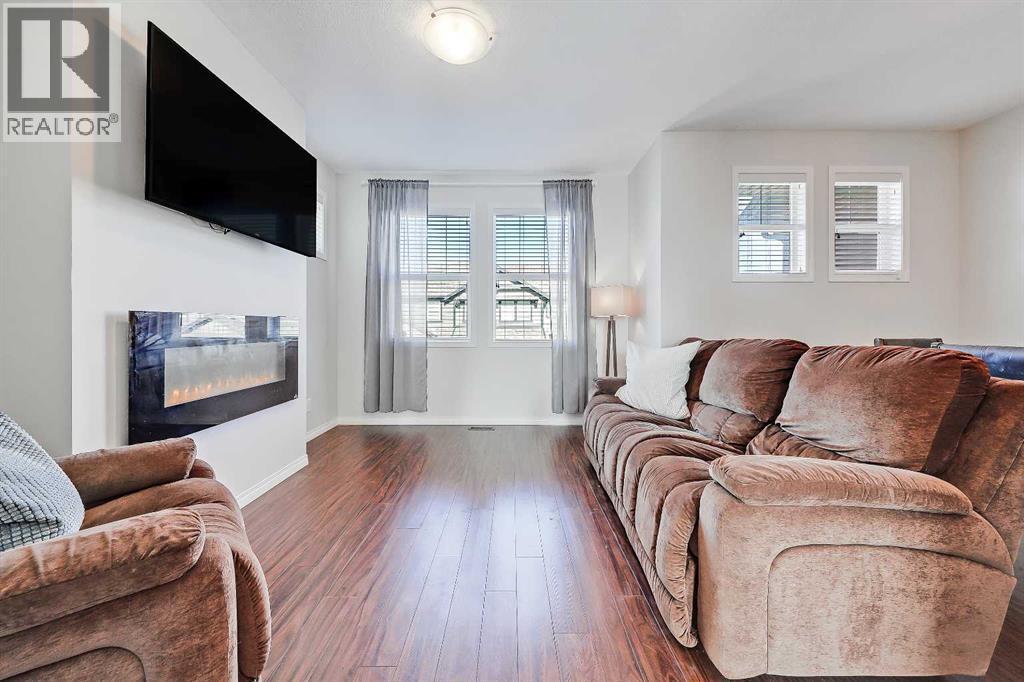 BRIGHT END UNIT | DOUBLE GARAGE | FINISHED WALKOUT BASEMENT | SCHOOL & NATURE PRESERVE STEPS AWAY! This spacious end unit in the family and pet-friendly Bridges at Williamstown complex offers an exceptional location with a south-facing balcony and enclosed yard that overlook the central courtyard. This property also provides easy access to an absolute abundance of amenities including playgrounds, parks, pathways, sports fields, Herons Crossing School just steps away, direct access to Williamstown Nose Creek Preserve right from the complex and close proximity to Reunion Pond, Woodside Golf Course and the shops, services, restaurants and retail along Veterans Boulevard.As you enter the property you will discover a main floor designed for both comfort and functionality. The spacious front foyer welcomes you with a large closet and easy access to the main and lower walkout levels of the home. Wide plank laminate floors flow throughout, enhancing the open-concept layout. The well-appointed kitchen offers rich cabinetry, stainless steel appliances, a pantry closet, ample granite countertop space, island with sit up breakfast bar, nook and a stylish stacked tile backsplash. The main living room is connected to the designated dining room and is warm and welcoming with bright windows and an attractive electric fireplace, perfect for relaxing evenings or gathering with friends. The main floor is completed with a half bathroom and a functional flex space that is ideal as a sitting room, reading area or computer station and provides direct access to the balcony. Upstairs, the home continues to impress, the spacious primary bedroom is a true retreat offering room for a king-sized bed, a generous walk-in closet and a 4-piece ensuite with a double vanity and a fully tiled shower. There are 2 additional bedrooms that offer size and versatility - ideal for kids/teens or a home office. Finishing off the upper level is a 4-piece bathroom with a large vanity and full tub/show er combination and a convenient laundry closet. The fully finished lower walkout level is as versatile as it is welcoming. It can easily serve as a 4th bedroom with a separate entrance and dedicated bathroom, or as a multi-use space for a home theatre or games room. Highlights include a modern 3-piece bathroom with in-floor heating, privacy door separating the space and oversized windows. From this level, you’ll also find access to the utility room and the attached double garage.The outdoor living areas are outstanding with a sunny, south-facing raised balcony on the main level that overlooks the courtyard and a good-sized lower concrete patio and fenced yard off the lower level, perfect for sipping your morning coffee or just relaxing and enjoying the space. Additional features include 9’ ceilings on the main level, new stove and over the range microwave (2024), new paint (2025), large driveway with room for 2 vehicles, ample visitor parking close to the unit and more. Welcome Home. (id:6769)