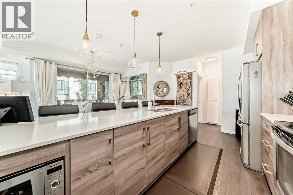 Welcome to this stunning, ONE-OF-A-KIND, two bedroom + den, two bath, two titled premium side by side parking stalls, NW facing, prestigious Calligraphy, Westman Village home. This home SCREAMS RARE, LUXURY, SOPHISTICATION, UNIQUE. This Original owner home boasts over 1045 sq.ft of indoor living space. You can enjoy relaxing or entertaining on your covered wrap-around 600 sq.ft. balcony. For those who cringe at the thought of losing their garden space, this homeowner has created a garden oasis that will be sure to delight any avid gardener. Many of the pots will be left behind to enjoy, along with tens of thousands of dollars of additional items (see agent remarks) Once inside this modern and sophisticated ultra upgraded unit you notice the stylish stainless appliances, luxury vinyl flooring, cabinets which go all the way up and are designed to offer an abundance of storage. This kitchen is a dream for any cook who can summon that inner chef, from the expensive quartz countertop which provides a warm and inviting atmosphere, to the oven & cooktop which makes the kitchen a perfect place to prepare meals and entertain guests. The unit is equipped with forced air heating and Central air to keep you comfortable year-round. Everywhere you turn you notice the attention to detail. Upgrades included: flooring, all lighting fixtures, several motion sensor light switches, over 50% of kitchen cabinets have high end pull out drawers built in, balcony water faucet. The Calligraphy/Westman Village community resort is unprecedented, with endless amenities! You will not see anything similar elsewhere. The Village Centre complex includes over 40,000 sq ft of amenities spread over 3 stories with 24 hr on-site security. You will never run out of things to do. Amenities include electric vehicle charging, car & pet wash, bike storage, fire pit, playground, resident-only off-leash dog space and outdoor gathering spaces with lounge chairs. In this complex you also gain access to the high-end fitness centre, golf simulator, wine vault, marketplace, library, gymnasium, saltwater pools with waterslide, hot tub, steam room, demo kitchen, party room, pool tables, theatre, art room, woodworking room, and walking track. Additionally, the Village Centre is home to Mode Fitness and JC Spa and Salon. Within walking distance, you'll find a variety of stores and restaurants, including Chairman's Steakhouse, Alvin's Jazz Club, Marble Slab, Diner Deluxe, Analog Coffee, Five Vines liquor store, dry cleaning, pharmacy, and so much more. Just blocks away is Mahogany Village Market and numerous restaurants, and shopping. As a resident of Westman Village, you'll have full lake access to the Main Beach area and are steps away from West Beach, where you can enjoy swimming, kayaking, picnic areas and other outdoor activities. The Village Centre amenities are truly impressive, offering a full slate of monthly activities, from art & wine events to movie night and pickleball. Book your showing today. (id:6769)