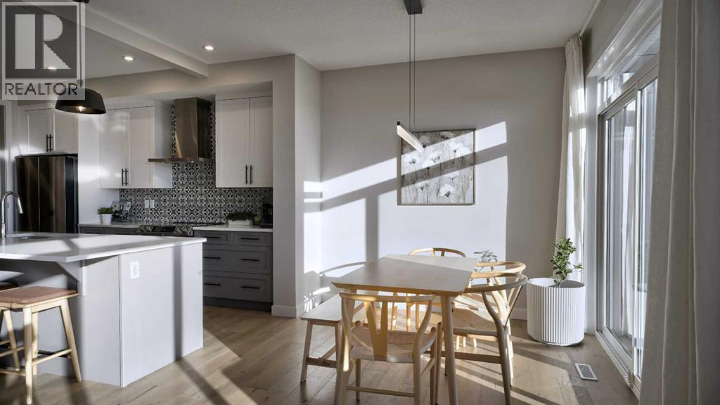 This beautifully upgraded 3-bedroom, 2.5 bathroom home offers over 2,000 square feet of living space, including a walkout basement with 9-foot ceilings ready for your future development. Perfectly positioned on a quiet street with no rear neighbours, the property backs onto the Bow River Valley, providing both privacy and stunning, unobstructed views.Designed for modern living, this home features 9-foot ceilings on both the main and lower levels, a vaulted foyer, engineered hardwood flooring, and oversized windows that fill the home with natural light. The gourmet kitchen showcases quartz countertops, a 9’6” island, a walk-through pantry, a coffee bar with wine fridge, and stainless steel appliances. The bright and inviting family room centres around a cozy fireplace — the perfect spot to relax and unwind — while a versatile flex room with French doors makes an ideal office or playroom.Upstairs, the spacious primary suite offers a luxurious five-piece ensuite with dual vanities, a walk-in closet with direct access to the laundry room, and elegant finishes throughout. Two additional bedrooms, a full bathroom, and a central loft provide plenty of space for family living.With a fully fenced yard, beautiful views, and exceptional attention to detail, this home delivers the perfect blend of comfort, style, and future potential for your family. (id:6769)