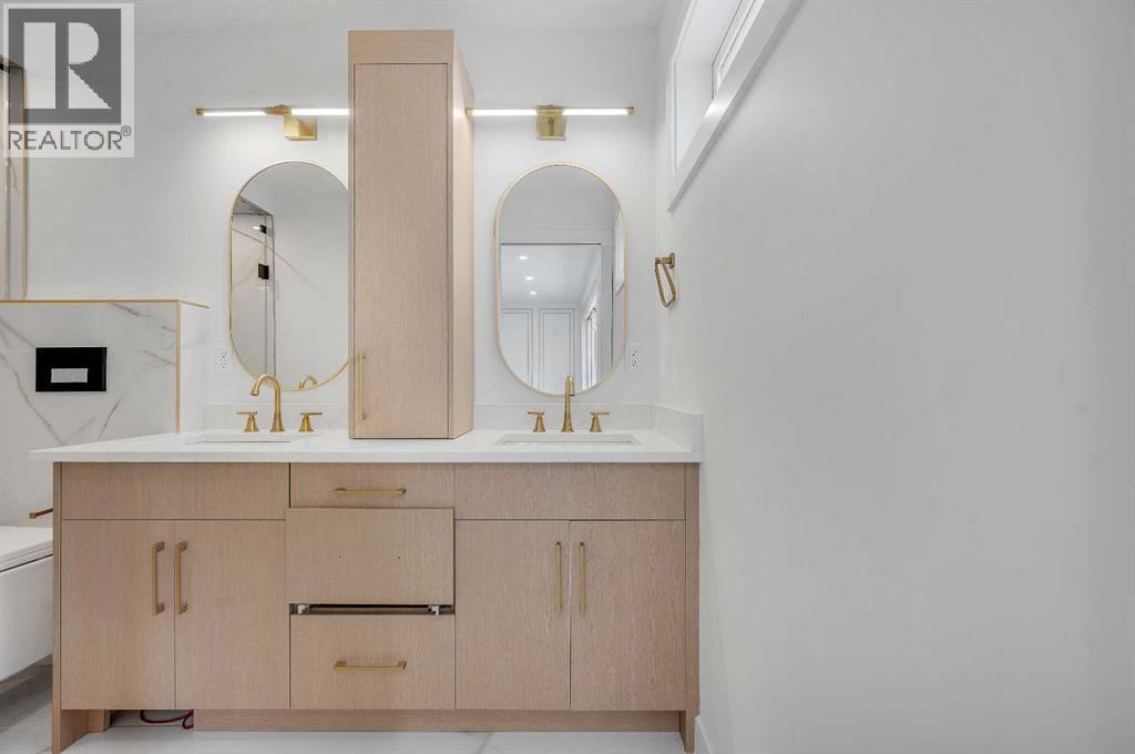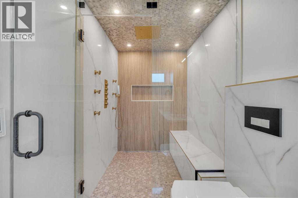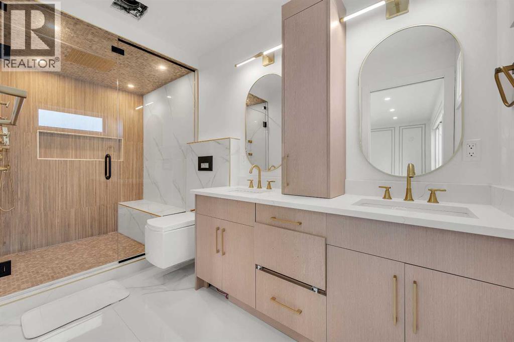 Welcome to this incredible 2 Storey home on a massive Pie Lot in Varsity! A rare find: this fully rebuilt home comes with an enormous triple garage and massive backyard. Extensively redone with the highest quality renovations, this home was taken to the studs and is complete with new electrical, plumbing, HVAC along with luxury modern finishes. Step inside to the spacious foyer complete with built in oak grain cabinets, table bench and shelving. Spacious cabinets provide a plethora of space for your daily living.The crescent kitchen is 20' wide and sports a massive island with quartz waterfall. Bone White cabinet doors float above the wood grain cabinets to create a natural open kitchen with sleek Quarts countertops. Custom gold pedant lights compliment the natural light and sleek luxury wood finishing. Built in refrigerator blends into the cabinets to provide a consistent lush look.The kitchen transitions seamlessly to the light filled Living room with a stone tile centerpiece wrapping the cinder log style fireplace. Incredibly spacious and fits the whole family as well as guests when entertaining. Open right to the backyard deck via sliding doors. The main floor also hosts an office complete with extensive built in shelfing and oversized windows allowing natural light to pour in. Moving upstairs takes us through the Glass handrail staircase. Upstairs has three bedrooms, the laundry and a spacious bonus room. The master bedroom overlooks the front yard and comes complete with a beautiful ensuite and walk in closet.. The Ensuite has his and her vanities, and a massive tiled walk in shower with a overhead rainhead. Every bedroom is massive with large closets and yard views. The bonus room is the perfect family room with the wood grain flutes and sleek gold tile feature wall making the ultimate backdrop for entertainment. The large and spacious basement comes with a media room, 2 additional bedrooms, another bathroom and a wet bar. Because this home is on a pie lot, that means the backyard is much larger then a traditional rectangle lots and that allows for a massive triple garage while still giving way to huge amenity space. A tremendous amount of parking thanks to the cul-de- sac front access parking as well as the triple garage means the whole family has ample parking space. Large amounts of leisure space outside as well. Enjoy the rear deck, or the concrete Patio surrounded by young Aspens fitted with a firepit, barbeque and gazebo for summer lounging. The exterior of this home is adorned with fire resistant stucco and Roman Stone giving this home a beautiful timeless look. Minutes from Market Mal, the University of Calgary and the bow river. Peerless layout, finishes and location, book a showing today for this classic inner city masterpiece. (id:6769)