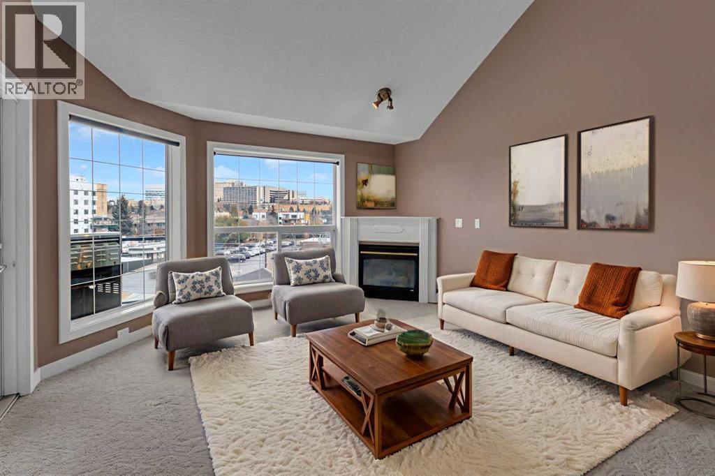 Welcome to The Hemisphere on the Bow, a quiet, well-managed, pet friendly, 28-unit building perfectly located just steps from the Bow River and the river pathway system! This top-floor, two-storey condo offers 1 bedroom plus loft, 3 full bathrooms, a very large in-suite storage room, titled underground parking and a storage locker. This well cared for condo features an open concept main level with a spacious kitchen with granite countertops, wood cabinetry, raised breakfast bar & stainless steel appliances. The kitchen opens onto the dining room, as well as onto the living room with vaulted ceilings, large windows, a gas fireplace & the patio door out to the roomy deck with gas hook up for your bbq. The main-floor primary bedroom is a standout, featuring vaulted ceilings, oversized windows, a walk-in closet, and an ensuite with a jetted tub, separate shower, and extended vanity offering ample counter and storage space. Completing the main level is a second full bathroom, a laundry area with stacked washer and dryer, and a convenient walk-in storage/coat room near the foyer. The upper loft level offers incredible versatility, use it as a bedroom, home office, gym, hobby room, or games area. This level also includes a third full bathroom with shower and a rare 10’ x 10’ storage room. Additional highlights include custom opening and self-closing skylights, a new expansion tank for the in-floor heating system, and a new electric heater in the utility room. One titled underground parking stall and an assigned storage locker, plus plenty of on-street parking for guests outside the building. Enjoy an unbeatable location close to Edworthy Park, coffee shops, restaurants, and shops, with quick access to the Foothills Hospital, Alberta Children’s Hospital, the University of Calgary, and downtown. (id:6769)