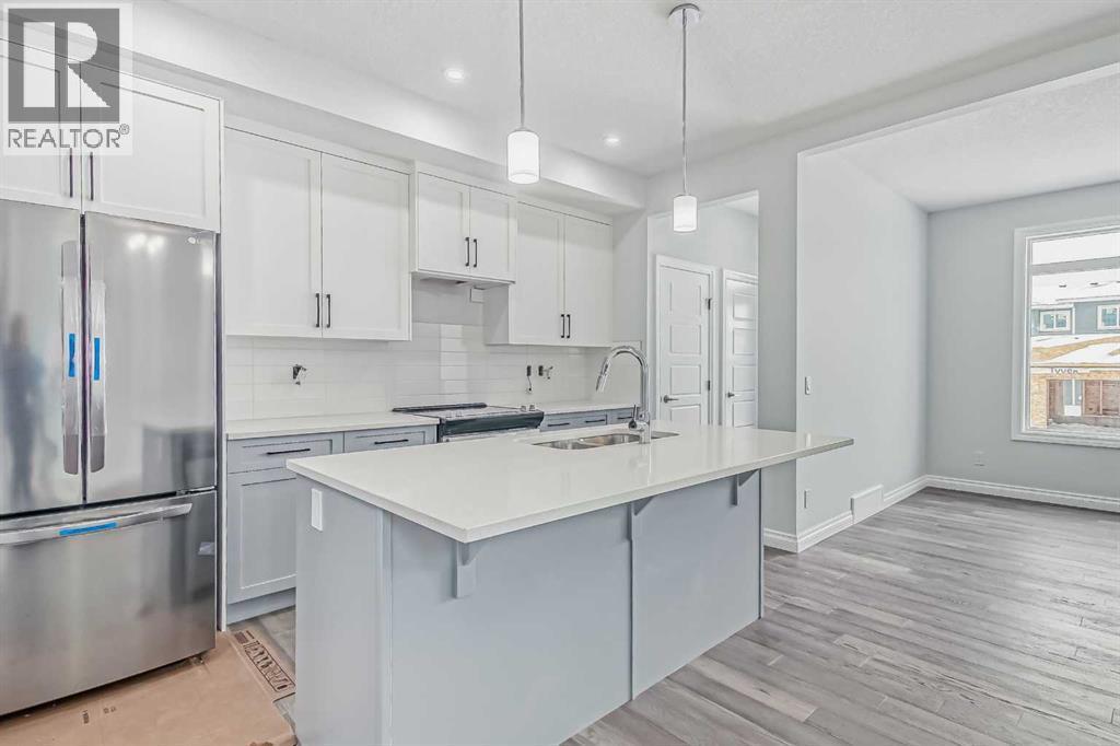 WOW ! A brand new home by Douglas Homes- Master Builder. Located one block from the new park that has been put into Southbow Landing. Thinking you may need a little bit more space ? Why not upgrade to this beautiful attached property- The Canberra ! With a generous almost 1500 worth of square footage, this home is sure to impress. This home provides 3 bedrooms, 2.5 bathrooms, a main floor bedroom or office for a perfect floor plan. The Douglas Homes kitchen comes standard with Quartz countertops on both the main floor kitchen, and the upstairs bathrooms. What an upgrade ! What really sets this home apart is the main floor office, isn't that handy ? As you go upstairs, the large window going up the stairs brings in lots of natural light. It's one of our favourite features of this home. Once upstairs, you will find 3 large bedrooms, and a walk in, full size washer and dryer with room for storage. The upstairs primary bedroom is spacious, and has a walk in closet, and even double sinks in the primary ensuite. This home doesn't even feel like a semi detached property, if you can believe it ! On the way to the basement you will find a side entrance which is perfect for a possible mortgage helper ( with approval from Rocky View County ). This home is ready in about six months and it can be yours this spring, and the best part is you have enough time to choose your palette of colours/finishings. Photos are from prior build & are reflective of fit, finish & included features. Note: Front elevation of home & interior photos are for illustration purposes only. Actual elevation style, interior colours/finishes, & upgrades may be different than shown & the Seller is under no obligation to provide them as such. Directions: Come to the Show Home first located at 115 Southborough Crescent. Show Home hours to view. This home is under construction (id:6769)