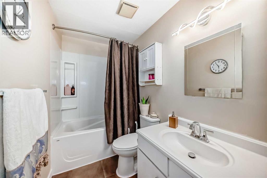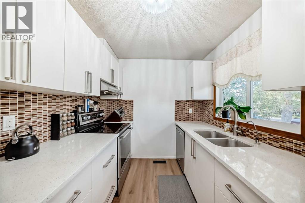 ** OPEN HOUSES, SAT, SEPT. 27, 2-4PM & SUN. SEPT. 28, 2-4PM ** From the moment you step inside, you’ll appreciate the bright and cheerful living room, featuring (new) French doors that open to the private backyard. The dining area is filled with natural light, offering space for a generous table and additional cabinets and counter space. The kitchen has been fully renovated with quartz countertops, modern white cabinetry with soft-close drawers, and stainless steel appliances. The main floor includes three spacious bedrooms. The primary retreat features a 4-piece ensuite, large closet and ceiling fan for comfort. The main floor 4-piece bathroom has been beautifully updated to include a stand up shower and large vanity. Conveniently, the washer and dryer are also located on the main level. A separate entrance leads to the finished basement, which offers a cozy family room, a versatile flex space (perfect for an office or gym) and a spacious fourth bedroom with direct access to a full 3-piece bathroom, which is also accessible from the family room. Step outside to the large backyard, complete with a charming covered deck, mature landscaping with an amazing flower garden, a firepit area, and plenty of space for kids and pets to play. With no neighbours behind, you’ll enjoy privacy and quiet, plus a double parking pad off the back alley and ample street parking. Recent updates include new flooring throughout, new French doors in living room, updated bathroom, a fully renovated kitchen, a new roof (June 2025), a newer hot water tank (March 2019), and a well-maintained furnace. This home has been loved and meticulously cared for—move-in ready and waiting for you. Ideally located close to the Strathmore Aquatic Centre, Brentwood Elementary, Strathmore High School, and numerous parks and amenities and quick access to the highways. Call your favourite realtor and book a showing today! (id:6769)
