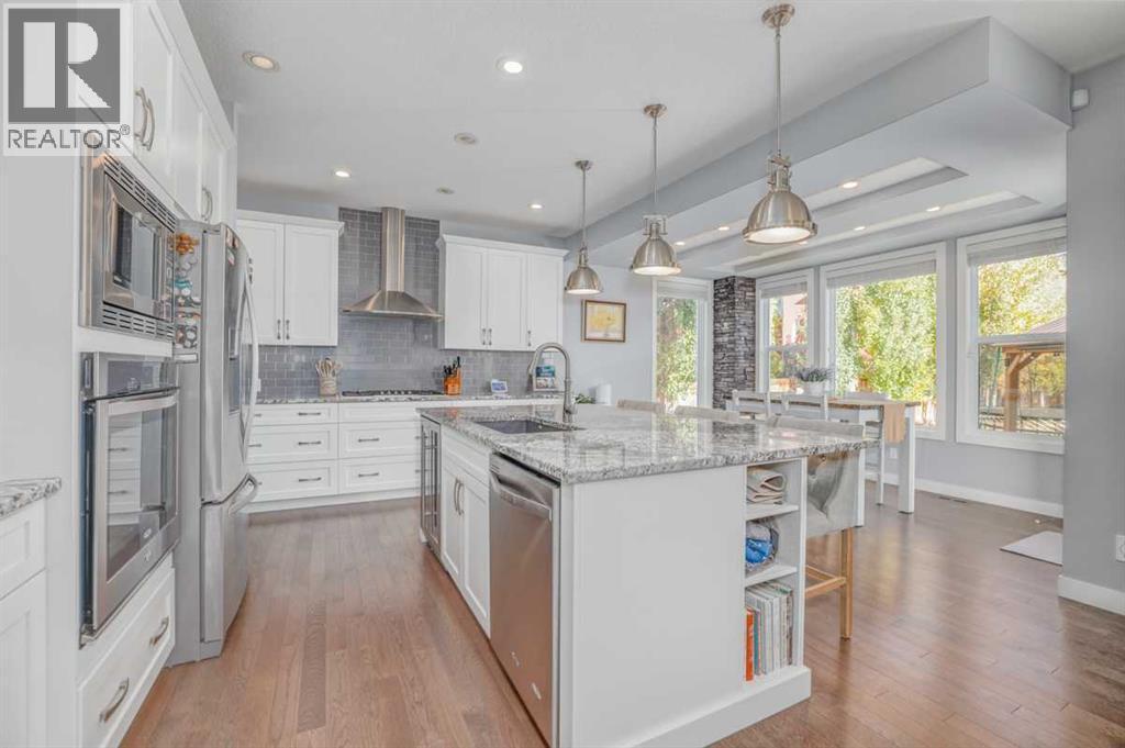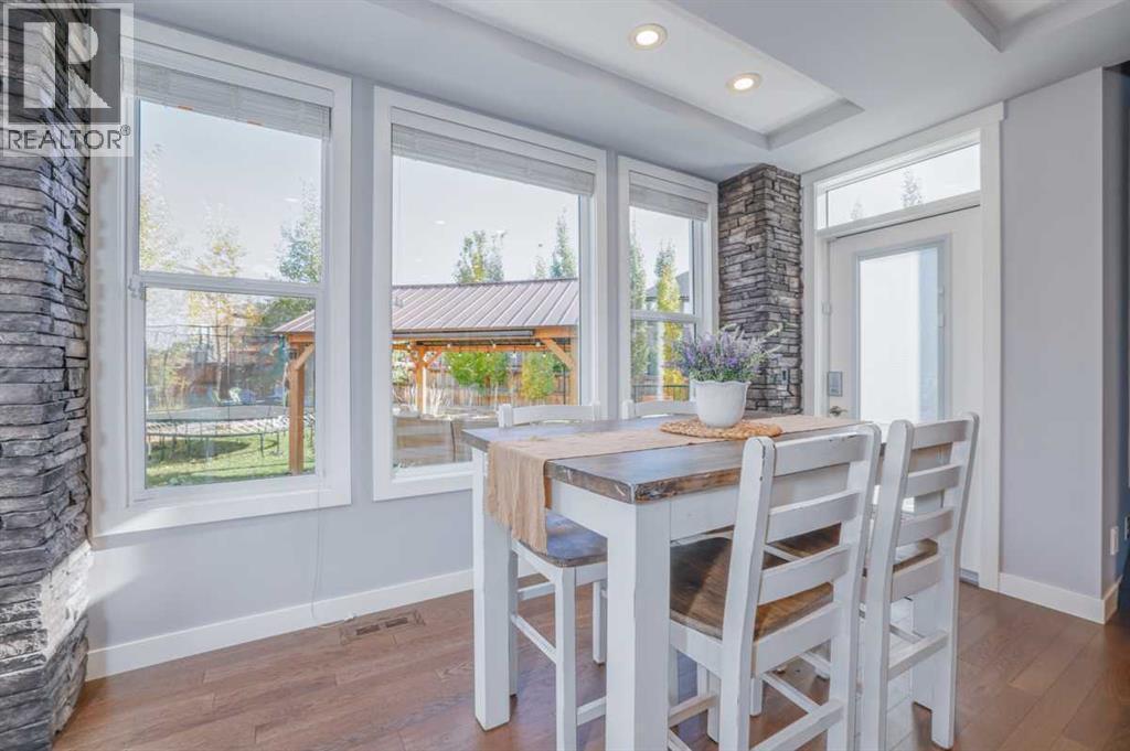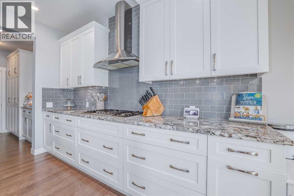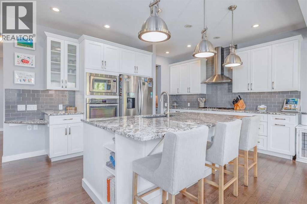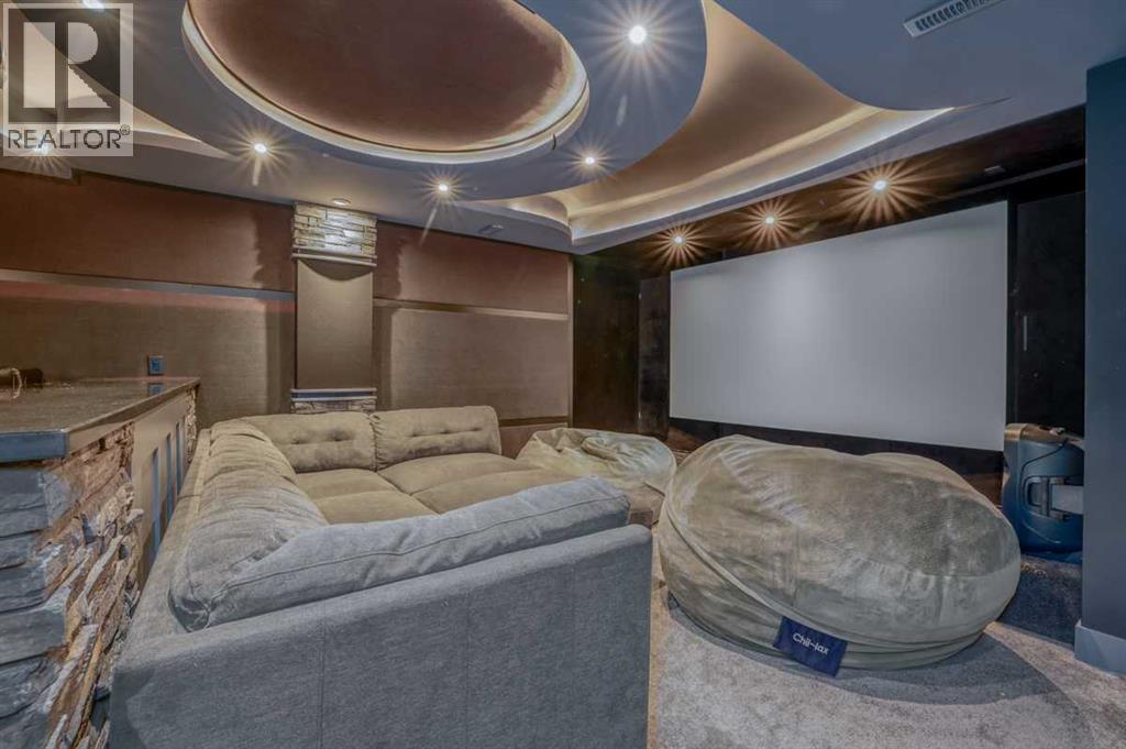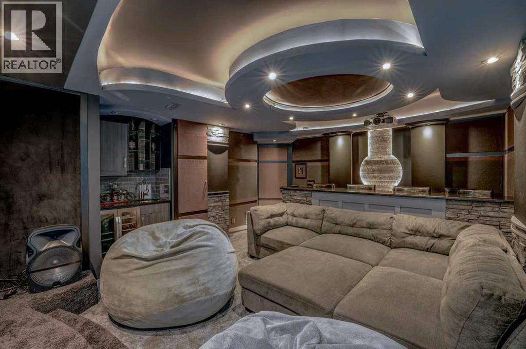 A BEAUTIFUL & ELEGANT, fully developed 2-storey home in the heart of Mountainview, with over 3500sq.ft of developed LIVING SPACE, extensive CUSTOM MILLWORK, IN HOME THEATER, 3 spacious bedrooms + MASTER SUITE, HOME GYM, STUNNINGLY landscaped treed backyard & DOUBLE ATTACHED GARAGE, this home shows its pride of ownership!With detailed stonework, oversized windows, custom lighting and top of the line finishings, this home is all class!! A warm & inviting front foyer welcomes you into the open concept main floor with a spacious living room, centered around a stunning floor to ceiling stone surround gas fireplace with custom millwork and large windows allowing for natural light to brighten the space. The living room nicely opens to the gourmet kitchen, which has been designed extensively & upgraded with stone countertops, custom cabinets, large island, decorative lighting & a walk-through butler’s pantry with ample cabinetry & counter space. Quality S/S appliances include gas countertop stove, hood fan, built-in wall oven and microwave, French door fridge/freezer, built-in dishwasher and separate built-in beverage fridge. Just off the kitchen, the dining room offers 4 large windows, beautiful custom ceiling detail with inset lighting & beautiful views into the backyard features including a large composite deck area perfectly combining outdoor/indoor living space and great for hosting family & friends. The main floor of this home is finished with beautiful hardwood, high ceilings and also offers a nicely tucked away den/office area, modern 2pc main bathroom, large mudroom with built-in bench, closets and hangers, connecting to the double attached garage. The upper level features a large bonus room area, one wing of the upper level is the master retreat, designed with custom ceiling and feature lighting, a dual spacious walk-in closet, and the stunning master 5pc-ensuite offering decorative tile, dual vanity with undermount sinks, soaker tub, full height glass & decorativ e tile shower with rain showerhead & built-in bench/ shelves and tucked away private water closet. Nicely rounding off the upper level you will find large 2 bedrooms, both with good-sized closets, a shared main 4pc bathroom with private tub/shower combo, 2 sets of vanities - each with their own sinks & cabinets, and a separate laundry room with tiled floors, sink, ample counter and cabinetry space, and built-in racks for storing linens. The basement of this home is TRULY EXCEPTIONAL and features a luxurious custom home theater + wet bar + wine fridge, home gym equipped with sport flooring, a great-sized 4th bedroom & shared 4pc bathroom with tub/shower combo! All this in a quiet cul-de-sac and on an amazing oversized pie lot that is fenced & beautifully landscaped backyard w/ huge composite back deck & gazebo. This home is located just steps away from various parks, amenities, grocery centers and schools. A RARE FIND in an even better location that needs to been seen to be appreciated! (id:6769)