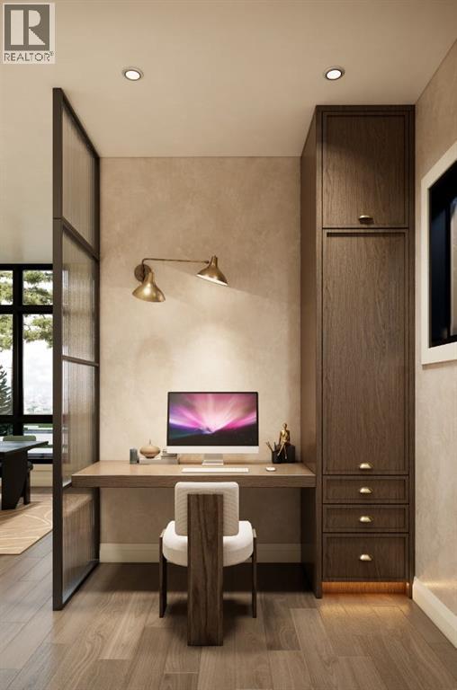 Experience elevated inner city living in this exquisite 3 storey infill, offering over 3,580 sq ft of thoughtfully designed space across four levels. Every detail of this semi-detached home reflects exceptional craftsmanship and contemporary elegance, from the wide plank hardwood flooring to the striking custom limewash feature wall in the main-floor office. The open concept main floor features 10 foot ceilings, a formal dining room with custom wainscoting and expansive windows, and a show stopping kitchen with a 12’ island, high-end built-in appliances, quartz countertops, gold and black hardware, and under cabinet lighting. Just off the kitchen, a cleverly tucked away pocket office offers a quiet and functional workspace ideal for remote work or daily planning. The spacious living area is anchored by a designer gas fireplace with full height tile surround and built in millwork, while a generous mudroom with built ins adds practical convenience. Upstairs, discover two luxurious primary suites, each with double vanities, freestanding soaker tubs, and fully tiled showers, along with a bonus room and a full laundry room. Designer details like curated lighting, feature wallpapers, and elegant sconces add elevated character throughout. The third level loft serves as a private retreat, showcasing another expansive primary bedroom with a large walk-in closet, a spa-inspired ensuite, and an additional office with access to a private balcony. The fully developed basement completes the home with a spacious rec room and wet bar, a fourth bedroom, full bath, and a dedicated home gym. Finished with oversized windows, this architectural gem designed by the renowned John Trin, sets a new benchmark for modern luxury in Calgary’s desirable West Hillhurst/Bowness corridor. Situated near parks, schools, the river and amenities. Call today to book your private tour!! (id:6769)