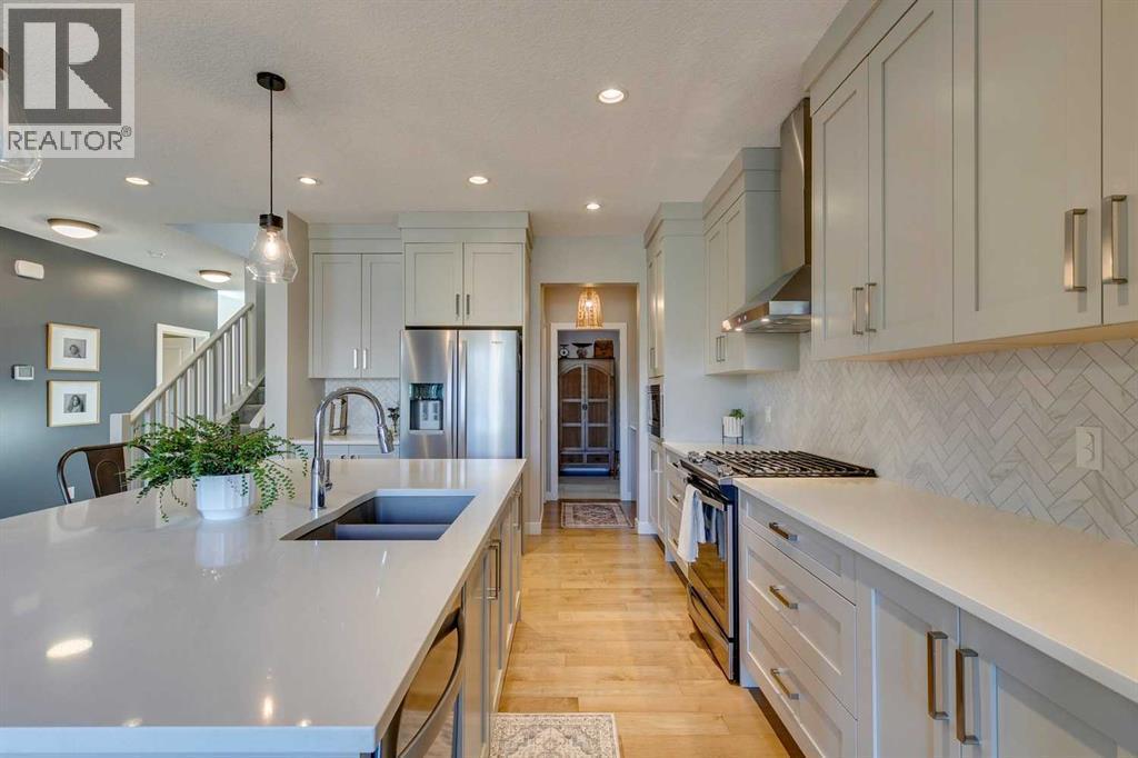 Welcome to 150 Cranbrook Circle – Nestled within an EXCLUSIVE POCKET OF CRANSTON RIVERSTONE, this property sits just steps from a children’s tot park and the BOW RIVER PATHWAYS. Situated on a beautifully landscaped corner lot, this warm and welcoming home offers over 2,600 sq.ft. of thoughtfully designed living space—ready for your family to create new memories in a setting surrounded by nature. A BRIGHT TWO-STOREY FOYER greets you, open to the level above. Morning light floods the great room through a wall of OVERSIZED WINDOWS overlooking the spacious backyard and mature trees. Step outside to a large back deck with plenty of room for dining and lounging, and unwind in the inviting hot tub after a long day. The kitchen, styled with full-height cabinetry, QUARTZ COUNTERTOPS, and ELEGANT HERRINGBONE TILE, connects seamlessly to the mudroom and includes a LARGE PANTRY plus a convenient coffee bar/nook tucked neatly out of sight. A MAIN-FLOOR OFFICE enjoys excellent natural light—perfect for working from home. Upstairs, the bonus room captures tranquil RIVER VIEWS, while three generous bedrooms and a large laundry room provide ideal family function. The bright primary ensuite features expansive windows, a DOUBLE VANITY, OVERSIZED SHOWER, and a HUGE WALK-IN CLOSET. The spacious basement awaits your creative touch, and the TRIPLE GARAGE plus corner lot offer AMPLE PARKING and STORAGE options. Discover this beautiful home in CRANSTON RIVERSTONE—Calgary’s best-kept secret—where Fish Creek Park and the Bow River are just outside your door. Enjoy easy access to schools, shopping, restaurants, and the South Health Campus and Seton YMCA, all only minutes away. (id:6769)