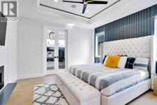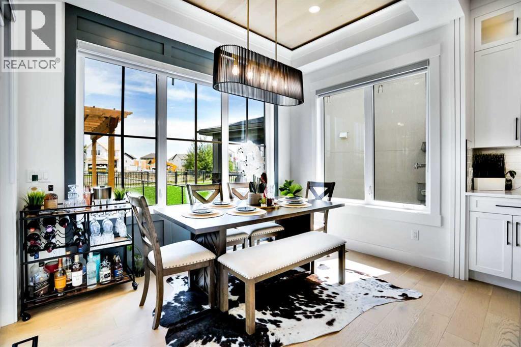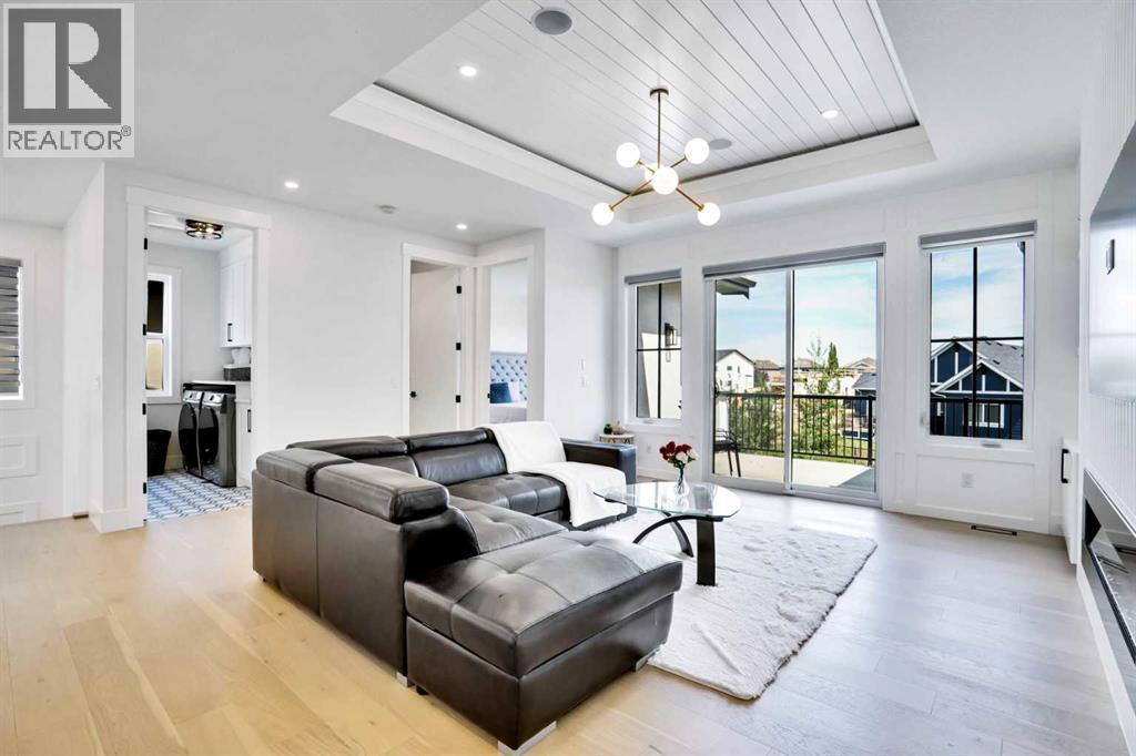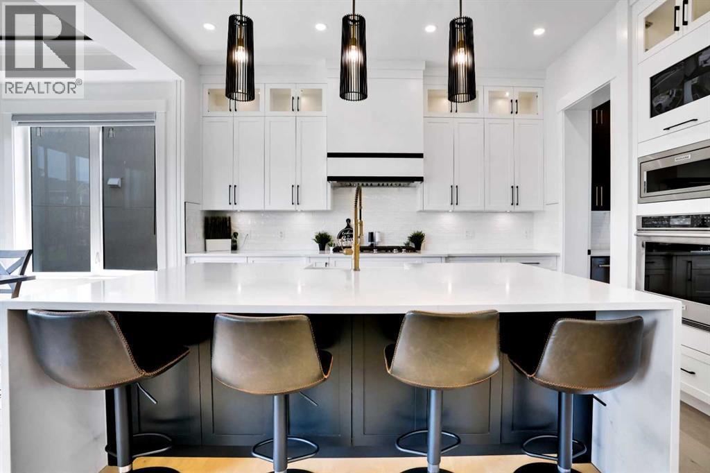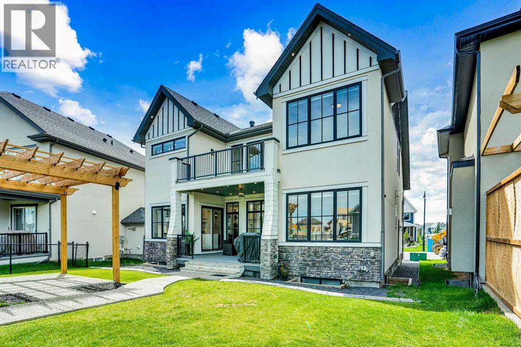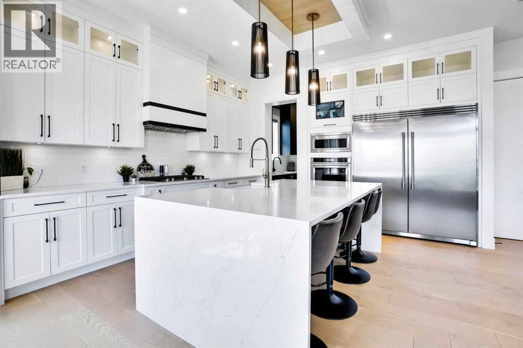 Welcome to Luxury Living in the Desirable Community of Coopers Crossing! This stunning luxury estate home offers over 4,100 square feet of living space in the sought-after community of Coopers Crossing in Airdrie. Upon entering this beautiful home, you'll be greeted by a grand foyer with vaulted ceilings leading to the upper floor. The main floor of the home features 10-foot ceilings and a versatile office space that can be used as a bedroom. A full bathroom is also located on the main floor. The open-concept layout boasts a cozy family room with a gas fireplace and custom feature wall, a formal dining room with coffered ceilings and custom feature walls, and a dream chef's kitchen with a waterfall island and seating area. High-end Kitchen-Aid appliances, built-in oven, gas range, and a large built-in refrigerator are the highlights of this beautiful kitchen. The kitchen area also features a spice kitchen/pantry with a gas range and refrigerator. The entrance from the triple garage that has epoxy floors leads you to your large mudroom with storage for your coats and shoes. The upper floor features 9-foot ceilings, a large chandelier, and a feature wall leading to 4 bedrooms and 3 full bathrooms, including a primary suite with a large walk-in closet. The upper floor also features a large laundry room with a sink. A spacious bonus room with sliding doors leading to the upper balcony completes the upper floor. The fully finished basement has 9-foot ceilings, a built-in custom wet bar with a sink, microwave, and bar fridge, leading to a rec room with a feature wall wired in for a projector setup and surround sound. An additional bedroom and a 4-piece washroom complete the basement. The exterior is now landscaped and wired with custom gemstone lighting that can be used year-round, security system with cameras, and a large lot backing onto a green space walkway, the garage is also wired for an electric car charger. This home is designed and built with many upgrades, inclu ding engineered hardwood, custom railing, tile, feature walls, A/C and built-in closets. You don't want to miss the opportunity to own this dream home. Check our the 3D Tour and Schedule your showing today! (id:6769)
