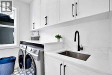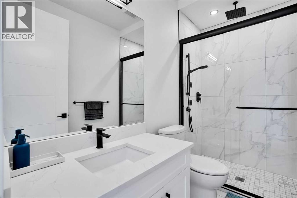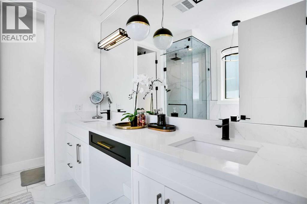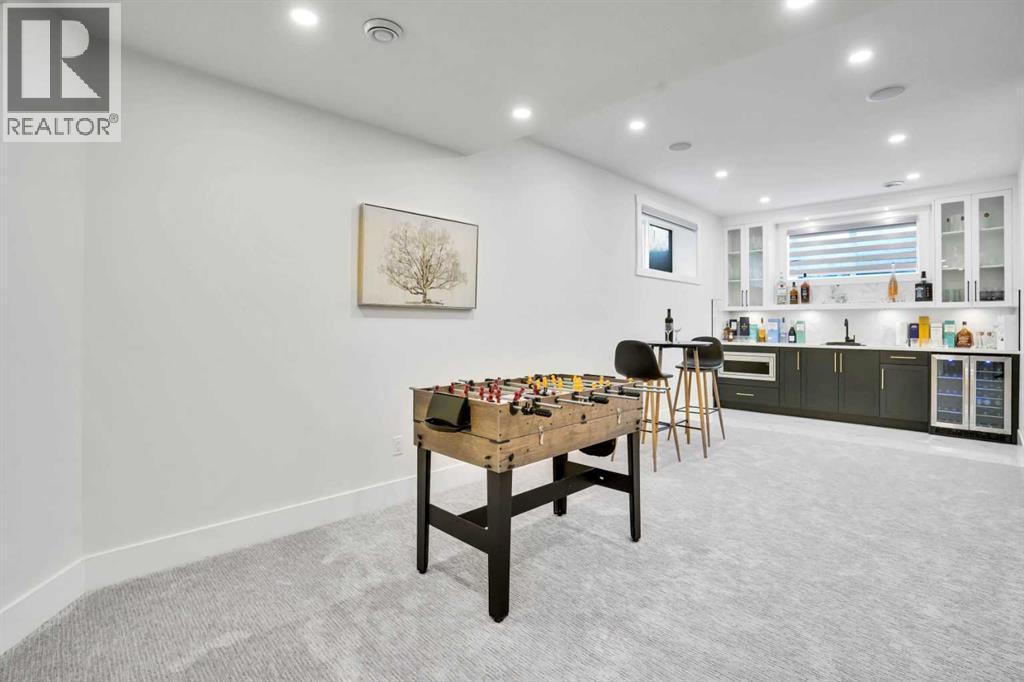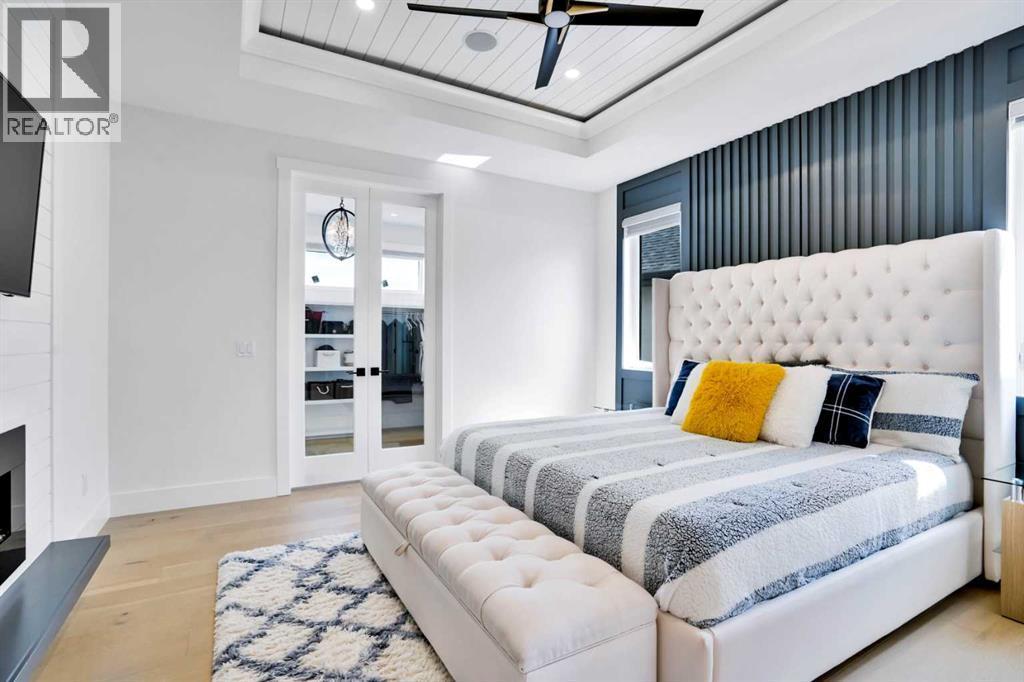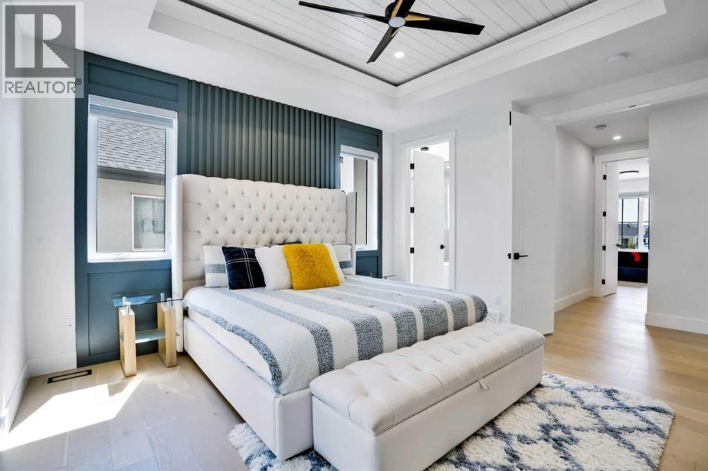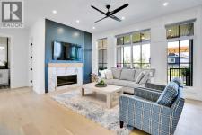 Welcome to Luxury Living in the Desirable Community of Coopers Crossing! This stunning luxury estate home offers over 4,100 square feet of living space in the sought-after community of Coopers Crossing in Airdrie. Upon entering this beautiful home, you'll be greeted by a grand foyer with vaulted ceilings leading to the upper floor. The main floor of the home features 10-foot ceilings and a versatile office space that can be used as a bedroom. A full bathroom is also located on the main floor. The open-concept layout boasts a cozy family room with a gas fireplace and custom feature wall, a formal dining room with coffered ceilings and custom feature walls, and a dream chef's kitchen with a waterfall island and seating area. High-end Kitchen-Aid appliances, built-in oven, gas range, and a large built-in refrigerator are the highlights of this beautiful kitchen. The kitchen area also features a spice kitchen/pantry with a gas range and refrigerator. The entrance from the triple garage that has epoxy floors leads you to your large mudroom with storage for your coats and shoes. The upper floor features 9-foot ceilings, a large chandelier, and a feature wall leading to 4 bedrooms and 3 full bathrooms, including a primary suite with a large walk-in closet. The upper floor also features a large laundry room with a sink. A spacious bonus room with sliding doors leading to the upper balcony completes the upper floor. The fully finished basement has 9-foot ceilings, a built-in custom wet bar with a sink, microwave, and bar fridge, leading to a rec room with a feature wall wired in for a projector setup and surround sound. An additional bedroom and a 4-piece washroom complete the basement. The exterior is now landscaped and wired with custom gemstone lighting that can be used year-round, security system with cameras, and a large lot backing onto a green space walkway, the garage is also wired for an electric car charger. This home is designed and built with many upgrades, inclu ding engineered hardwood, custom railing, tile, feature walls, A/C and built-in closets. You don't want to miss the opportunity to own this dream home. Check our the 3D Tour and Schedule your showing today! (id:6769)