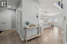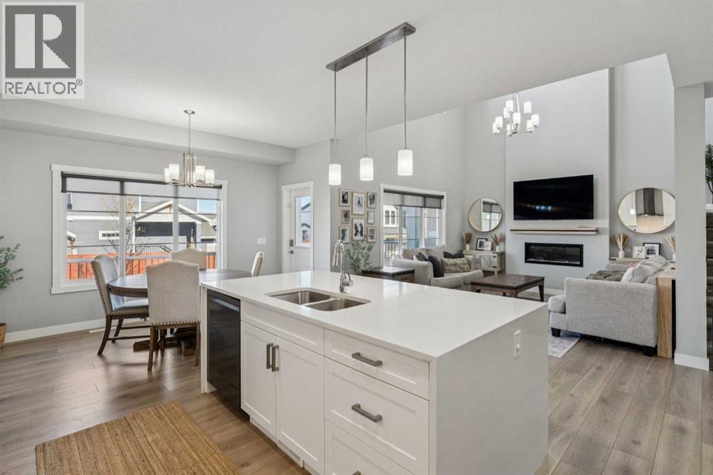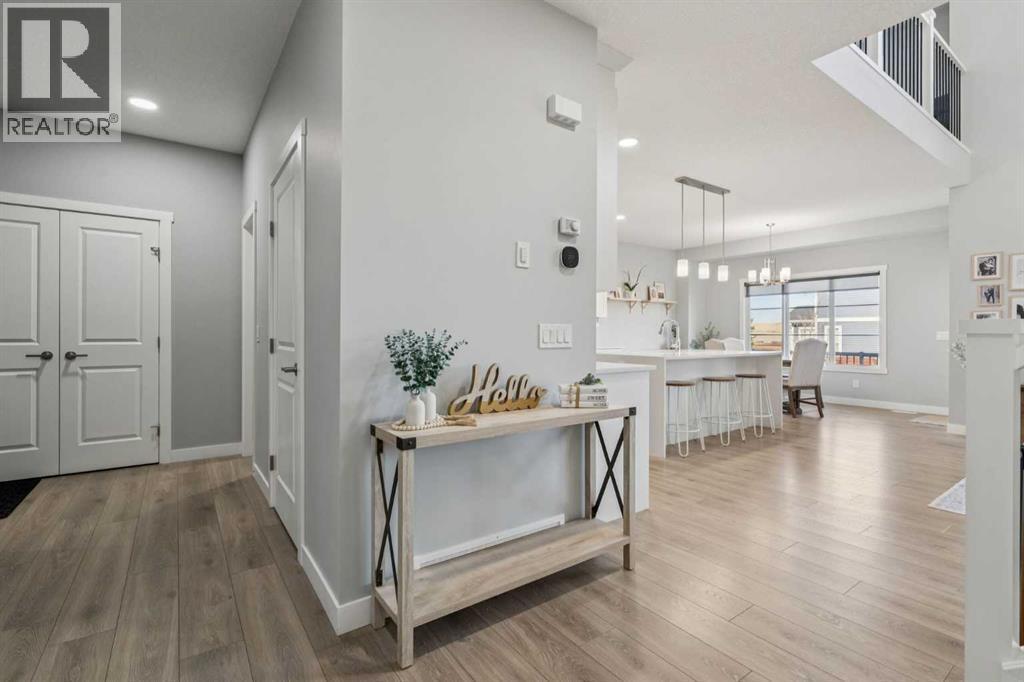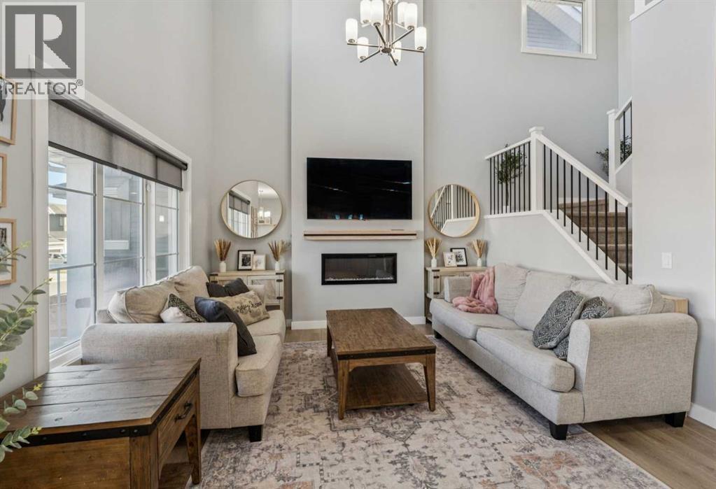 Welcome to this beautifully designed two-storey home in the desirable community of Cobblestone Creek—where style, function, and thoughtful design come together.Step inside to an inviting OPEN-CONCEPT main floor featuring a chef-inspired kitchen that is a showstopper with WATERFALL QUARTZ COUNTERTOPS on the ISLAND with a BREAKFAST BAR, an INDUCTION RANGE, sleek hood fan, BUILT-IN MICROWAVE, and a WALK-THROUGH PANTRY connecting seamlessly to the mudroom. The mudroom offers a BUILT-IN BENCH and convenient access to the TRIPLE ATTACHED GARAGE, complete with an EV CHARGER, SIDE ENTRANCE, and a handy BIN STORAGE SYSTEM. The living room impresses with soaring OPEN-TO-BELOW CEILINGS, an OPEN RAILING, and an ELECTRIC FIREPLACE with a MANTLE, creating a stunning focal point for family gatherings. A dedicated OFFICE on the main floor, is perfect for remote work or homework space. Upstairs, you’ll find a bright BONUS ROOM accented with BOARD and BATTEN detailing, along with two spacious kids’ bedrooms featuring the same custom touch. All bathrooms showcase QUARTZ COUNTERTOPS, adding a touch of luxury throughout. The laundry room is conveniently located upstairs.The primary bedroom is a serene retreat with a 5-piece ENSUITE featuring DOUBLE SINKS, a SOAKING TUB and a STAND ALONE SHOWER. The WALK-IN CLOSET that offers TWO-TIERED SHELVING and a WINDOW for natural light—a rare and thoughtful upgrade.The UNFINISHED BASEMENT includes a BATHROOM ROUGH-IN, ready for your future development. Outside, enjoy the TWO-TIER COMPOSITE DECK, PARTIALLY COVERED for all-weather entertaining, overlooking TWO-TIERED LANDSCAPING with ARTIFICIAL TURF and a PAVED PATHWAY and GREEN SPACE behind—offering privacy and easy outdoor living.This home blends modern comfort, designer details, and practical upgrades in one of Airdrie’s fastest-growing communities. (id:6769)
