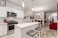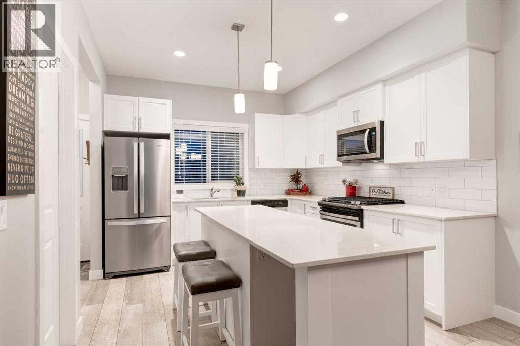 WELCOME to this IMMACULATE 2-Storey ROW HOME offering 2,002 sq ft of beautifully developed living space in the SOUGHT-AFTER community of MIDTOWN!! Set on a CORNER LOT with NO CONDO FEES, this home blends STYLE, FUNCTIONALITY, and COMFORT, complete with a FULLY DEVELOPED BASEMENT and an INSULATED DOUBLE DETACHED GARAGE. Step inside to a BRIGHT and INVITING Foyer with 9’ KNOCKDOWN CEILINGS, NEUTRAL Colours and sleek LAMINATE FLOORING that flows into the OPEN Living Room-perfect for relaxing or entertaining. The Dining Area comfortably fits your dinner party or weeknight meals, and flows into a CHEF-INSPIRED Kitchen featuring White Cabinetry, QUARTZ Counters, SS Appliances including a GAS COOKTOP, Whirlpool Fridge, Fresh White TILE Backsplash, and a central Island with Breakfast Bar. A dedicated PANTRY and a well-designed Mudroom with access to the backyard add to the everyday convenience, along with a stylish 2pc Bath on the main level. The upper level hosts 3 Bedrooms, including a large Primary Suite that’s FLOODED with NATURAL Light, a WALK-IN Closet and a PRIVATE 3pc EN-SUITE featuring a Glass door SHOWER. Two more well-sized Bedrooms share a 4pc Bath with a SOAKER TUB, and an UPPER FLOOR LAUNDRY adds everyday ease. The FULLY FINISHED BASEMENT provides even more space with a large REC ROOM, a 4th BEDROOM with a WALK-IN-CLOSET, a full 4pc Bath, and a Utility Room-great for guests, teens, or extended family. Step outside to your EAST-FACING BACKYARD and enjoy morning coffee on the PATIO and weekend BBQs, a DOUBLE GARAGE that's DRYWALLED, INSULATED, and even ROUGHED-IN for a heater + an ADDITIONAL Gravel Parking Pad!! Located in the family-friendly Midtown community, you’re just steps from parks, walking paths, a pond, schools, shops, and more. Easy access to 8th Street and Deerfoot makes commuting a breeze. This is more than a home - it’s a TURNKEY LIFESTYLE in one of Airdrie’s best new neighborhoods. BOOK your showing TODAY!! (id:6769)
