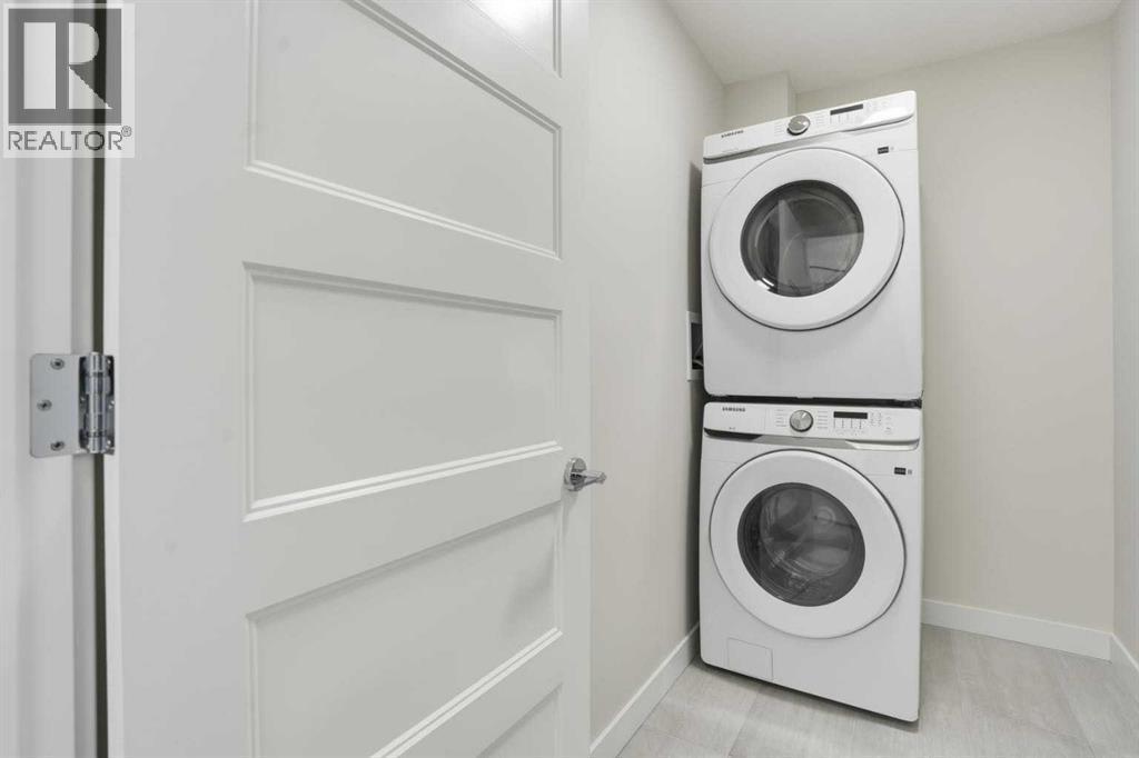 Welcome to The Whitney in Springbank Hill! This brand-new, top-floor corner condo offers the perfect blend of modern design, functionality, and convenience, just steps from Aspen Landing’s 50+ shops and services, close to the C-Train and transit, and minutes from 17th Ave SW and downtown. The Madison floor plan features two spacious bedrooms, each with an ensuite, and a bright open concept living area that flows seamlessly to a covered balcony with glass railings and bbq gas line, providing park views. The chef-inspired kitchen boasts Samsung stainless-steel appliances, a quartz island with eating bar, and soft-close cabinetry, while practical features include air conditioning, in-floor heating, in-suite washer/dryer, indoor parking (#29) with extra storage, and a private locker (#18), Extensive fire suppression system located throughout the building including the balconies, closets and attic area with Premium sound attenuation assemblies. With architectural measurement of 946 sq (871 sq. ft. RMS), this home combines style, comfort, and convenience, with walking paths, shops, and restaurants just steps away, offering the ideal mix of city living and natural beauty. (id:6769)