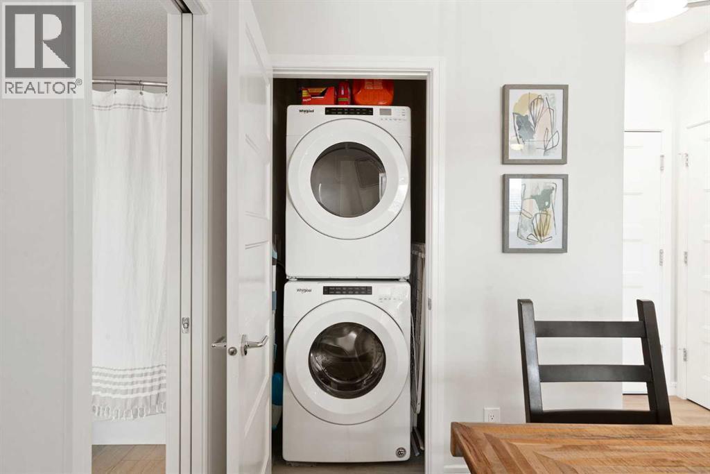 Welcome to The Apollo at Greenwich — this exceptional 2-bedroom, 2-bathroom condo offers TWO titled underground parking stalls (not tandem but two individual spaces) and TWO assigned storage cages — one conveniently located on the same floor as the unit and another on the parkade level. Enjoy an unobstructed view of the ski hill at Canada Olympic Park from your private balcony, adding to the appeal of this bright and modern unit!The open-concept layout features a contemporary kitchen with quartz countertops, stainless steel appliances, and ample cabinetry, seamlessly connecting to a spacious living area filled with natural light. The primary bedroom includes a walk-through closet and ensuite, while the second bedroom provides excellent flexibility for guests, a home office, or a roommate setup.Additional highlights include in-suite laundry, professional management, and a pet-friendly building with visitor parking and secure bike storage. Ideally located steps from the Calgary Farmers’ Market West, parks, and pathways, with easy access to downtown and the mountains via Stoney Trail. (id:6769)