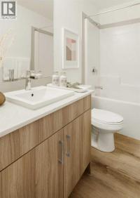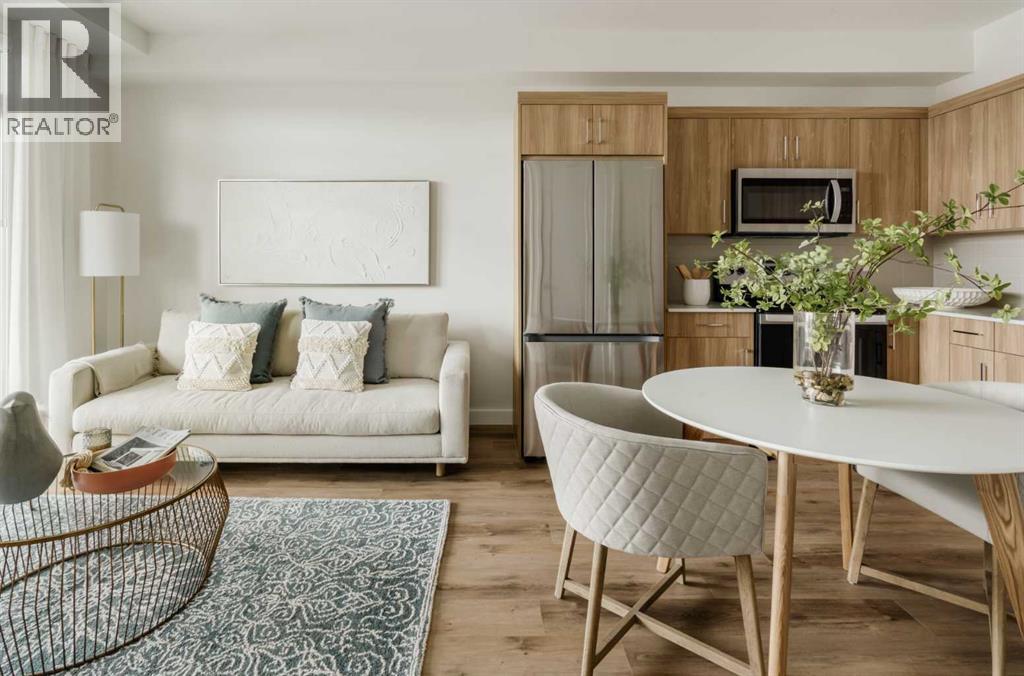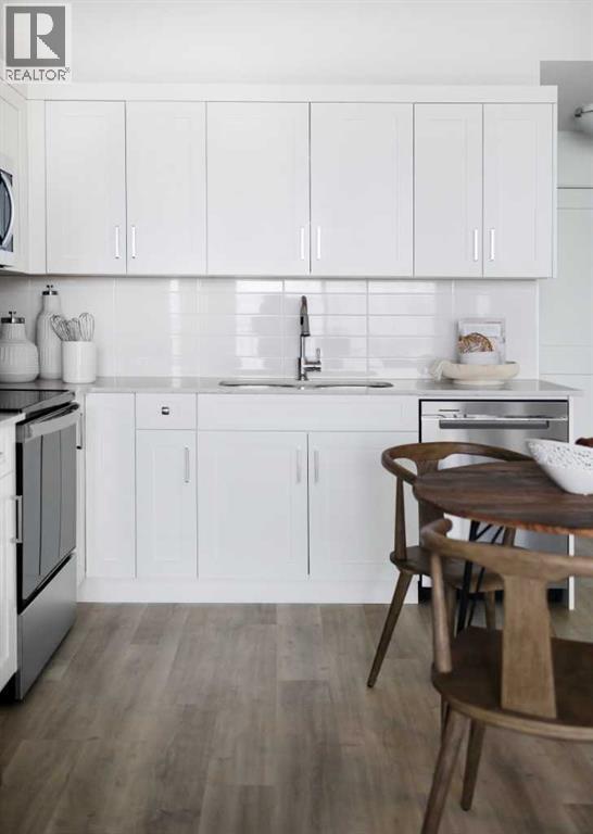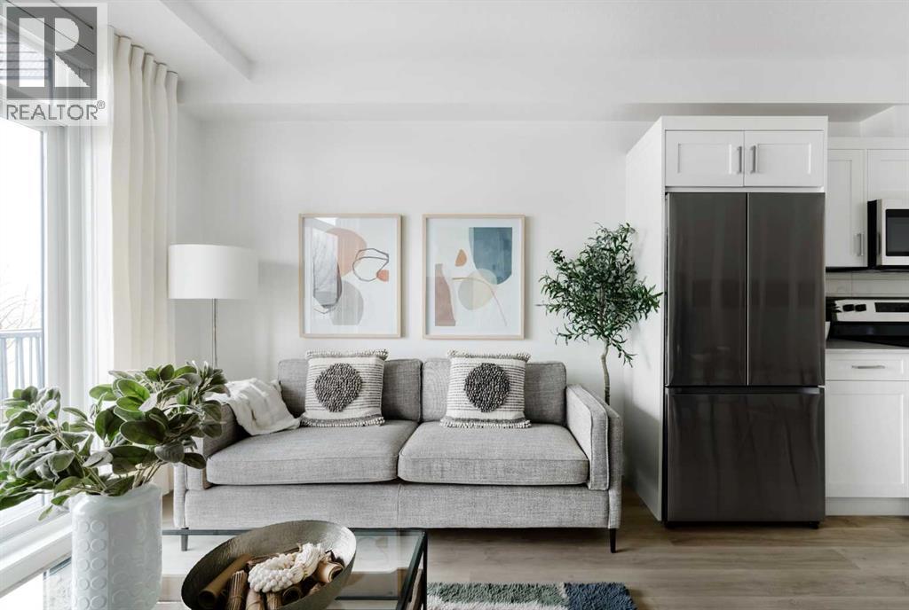 Welcome to the Curnoe 2 by Logel Homes—a well-designed unit featuring full-height cabinet fronts, quartz countertops, luxury vinyl plank flooring throughout, and tile in the bathroom. The upgraded kitchen includes a modern backsplash, a premium sink and faucet, and comes with stainless steel appliances. Enjoy year-round comfort with air conditioning, plus the convenience of an in-suite washer and dryer. Nine-foot ceilings and large windows provide plenty of natural light. This home includes a titled parking stall and is backed by the Alberta New Home Warranty. Located close to shopping, public transit, and major routes like Deerfoot and Stoney Trail, it offers easy access across the city. With affordable condominium fees, this is a great opportunity to own a well-appointed home in a convenient location. (id:6769)