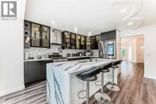 ***Welcome to 51 Douglas Woods Hill***. A breathtaking, fully renovated property in the idyllic, sought-after community of Douglas dale. This property has 5 bedrooms and 3.5 bathrooms, with 1860 sq ft above grade and over 2800 sq ft of total living space. Elegantly styled, with a modern design, this beautiful home boasts open sight lines and an expansive floor plan. The spectacular gourmet kitchen is designed for entertaining with custom cabinetry featuring soft-close drawers and glass doors, Newer stainless-steel appliances including French door fridge with screen and a gas range, all complemented with a timeless subway tile backsplash. The elegant two-tone design of the kitchen is completed with quartz countertops, an oversized waterfall island, and unobstructed main floor views to all areas . The property benefits from two living areas on the main floor, each with eye-catching features. Choose to enjoy the tranquil front living space with large windows, or revel in the sunken rear living room with it's stunning gas fireplace features brick. The main floor continues to wow with its laundry, containing bespoke cabinetry, customized mud area, with access to the oversized double attached garage. The main floor is completed with a large bedroom and half bath. The elegant style continues with a stunning staircase complementing the open designs in the home. This leads you to the second floor where you will find three generous sized bedrooms including the indulgent primary suite which benefits from a large walk-in closet. Master bathroom combines contemporary style with natural earth tones, and includes a custom vanity. The basement contains a large bedroom and full bath, with sauna room and large gaming area. The property has been fully renovated throughout and benefits from new exterior windows (replaced in 2021), new plumbing (2021), heated garage. In addition the home has gorgeous wide luxury vinyl plank flooring throughout the main level and brand new carpet in (202 1) on the upper floor. Fresh paint throughout the house. The backyard is tastefully finished with grass, gazebo and a large deck. Don’t miss the opportunity to view a perfect move-in ready home! (id:6769)
