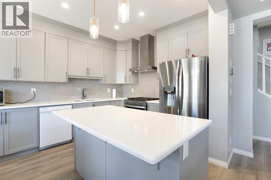 Welcome to this beautifully updated family home in the desirable community of South Windsong, Airdrie! Offering over 2,400 sq.ft. of developed living space, this property features 5 bedrooms and 3.5 bathrooms, including 4 spacious bedrooms upstairs — perfect for a growing family.The primary suite includes a walk-in closet and a private ensuite, providing a comfortable retreat. The main level showcases a modern kitchen with ceiling-height cabinets, quartz countertops, stainless steel appliances, and a large island, opening to a bright living room with a custom fireplace feature wall.The fully finished basement adds an additional bedroom, full bathroom, and large rec room for family entertainment or guests. Upstairs, enjoy the convenience of laundry on the same level as the bedrooms, and a private balcony off one of the rooms — a perfect spot to unwind.Outside, a large backyard and front-attached garage complete this wonderful home, located close to parks, schools, shopping, and pathways. (id:6769)