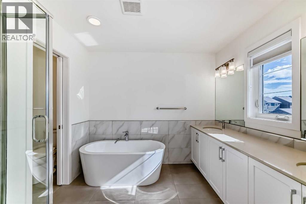This one-year new, custom-built executive home (3 & 1 bed) is ideally situated on a desirable corner lot just a half block from a serene park area in the welcoming community of Lanark. Designed for modern living, the home features an inviting open-concept layout and high-end finishes throughout. Step into a spacious foyer that opens into a bright and airy living room, perfect for entertaining or relaxing. The chef-inspired kitchen boasts a large center island, sleek quartz countertops, stainless steel appliances, and a walk-through pantry that connects to a convenient mudroom and a truly oversized double attached garage (21' x 24'). The sunlit dining area is perfect for everyday meals, and a stylish 2-piece powder room completes the main floor. Upstairs, enjoy a cozy bonus room with stunning mountain views from the large window. The luxurious primary suite offers a spacious retreat, complete with a spa-like 5-piece ensuite featuring double sinks, a soaker tub, and a separate glass shower. Two additional well-sized bedrooms are directly connected by a functional Jack and Jill bathroom. The professionally developed basement—completed by the builder—offers even more living space with a spacious family room, an additional large 4th bedroom, and a full bathroom. Don't miss the opportunity to live in this beautifully appointed home in a vibrant, family-oriented neighborhood. (id:6769)