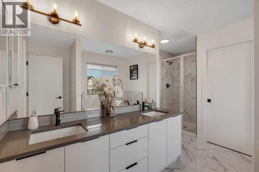 Welcome to this exceptional 6-bedroom, 4-bathroom estate—with a highly desirable main floor bedroom and full bathroom—ideally located on a premium 6,500 sq ft lot with direct access to the serene Bayside canal. Positioned within one of Airdrie's most sought-after neighborhoods, this home masterfully blends refined elegance, contemporary comfort, and luxury, offering an unparalleled lifestyle of sophistication and tranquility.As you approach, you’ll be drawn to the home’s exceptional curb appeal, complete with a triple car garage that balances prestige with practicality. Step inside, and you’ll be greeted by an expansive, open-concept floor plan filled with high-end finishes and thoughtful upgrades.The main level features a stunning living room with a stone-accented fireplace, creating a cozy ambiance for family gatherings. The spacious dining area offers unobstructed views of the canal, providing the perfect backdrop for elegant entertaining. The chef-inspired kitchen is a showstopper, outfitted with built-in premium appliances, a gas range with a hood fan, a large island, ample pantry storage, and a convenient garbage disposal. A main-level bedroom/office and a full 3-piece bathroom add to the home’s functionality, along with a mudroom for added convenience.Upstairs, you’ll find three generously sized bedrooms, two full bathrooms, and a spacious bonus room with views of the nearby playground—a perfect setting for family movie nights. The master suite is truly a retreat, featuring a large walk-in closet and a luxurious 5-piece ensuite with dual sinks, a deep soaker tub, a private water closet, and its own private balcony overlooking the serene canal.The fully finished walkout basement is an entertainer’s dream. With two additional bedrooms, a full bathroom, and a lavish wet bar, this expansive recreation room offers endless possibilities. Large windows allow for an abundance of natural light while providing uninterrupted views of the canal, creating a peacef ul setting for both lively gatherings and quiet nights in.Outside, the private backyard oasis awaits, offering direct access to the canal. It is the perfect spot for relaxing mornings, summer evenings, or year-round family fun.This rare gem offers not just a home, but an elevated lifestyle—a harmonious blend of luxury, tranquility, and natural beauty. Homes of this caliber in Bayside don’t last long—schedule your private showing today and make this dream home yours. (id:6769)