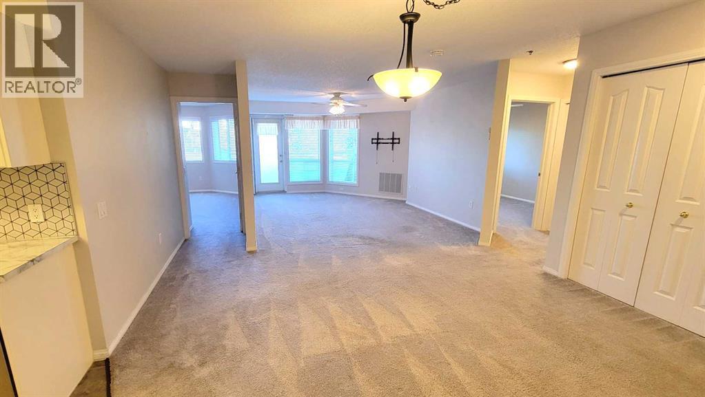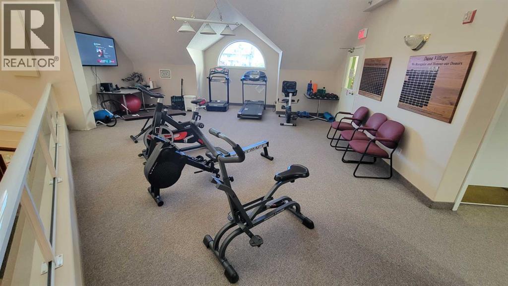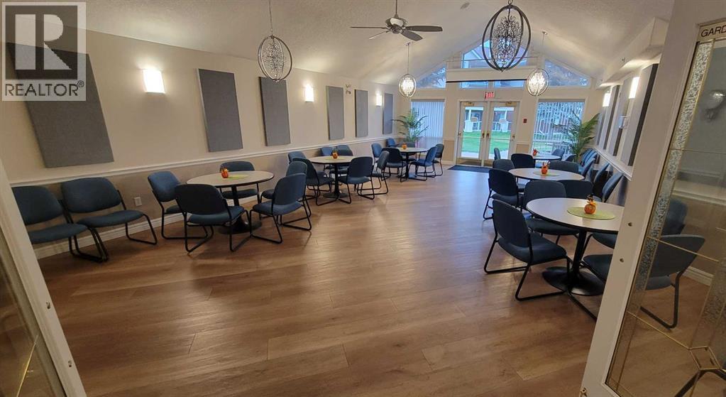 Welcome to Dana Village. This 55+ community offers plenty of amenities and social activities. This 987 sq/ft suite offers 2 bedrooms including a primary with plenty of closet space and a convenient 4 piece en-suite. The freshly updated kitchen has newer appliances, countertops and backsplash. Through the large living room is a spacious patio leading to a pleasant green space. Completing the floor plan is a dining area, a 3-piece bathroom with step in shower and a big laundry/storage room. The parking stall contains a secure storage locker. In the indoor parking area is the community workshop and a handy carwash. Some of the amenities include a social room, fitness area, games room with a pool table, and a garden room. This is a pet friendly building allowing 1 pet per unit. Located walking distance to shopping, dining, community path system and LRT. Book your private showing today. (id:6769)