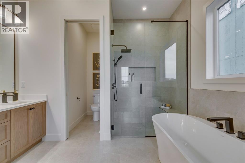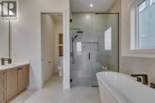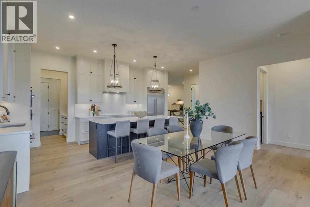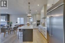 OPEN HOUSE THIS SATURDAY, NOVEMBER 15th AND SUNDAY, NOVEMBER 16th FROM 1:00 - 4:00 PM........Nestled in the heart of Calgary's prestigious Mahogany Estates, this brand-new custom-built, 3,200 sq ft bungalow by Baywest Homes redefines lakeside living. With exclusive access to a semi-private dock and beach, this home offers an unparalleled lifestyle in one of the city's most sought-after lake communities. The main level, spanning nearly 1,700 square feet, boasts soaring nine-foot ceilings and wide plank luxury hardwood flooring in natural wood tones, creating a warm and inviting ambiance. The open-concept design seamlessly integrates the living, dining, and kitchen areas, making it perfect for both entertaining and everyday living. The kitchen is a chef's dream, featuring full-height white cabinetry, a striking oversized dark island, and a high-end appliance package that includes a high-end Kitchen Aid fridge-freezer and built-in oven with a convention microwave. Quartz countertops extend as a sleek backsplash, complemented by designer lighting and a butler’s pantry equipped with a bar sink and beverage fridge. The living room, with its elegant feature fireplace, opens onto a north-facing deck overlooking serene green space, complete with a gas line for effortless outdoor grilling. The master suite is a private retreat, offering a spa-like en-suite with heated tile floors, an oversized shower, a freestanding soaker tub, dual vanities, and a private water closet. A spacious walk-in closet and adjacent laundry room add to the convenience and luxury of this space. The main floor also includes a private office with glass French doors, a well-appointed mudroom, and a walk-in closet. Descending to the fully finished basement, you'll find a large recreation room, a family room, two generously sized bedrooms, and a full bathroom with heated floors. The home is thoughtfully designed with ample storage and numerous upgrades, including tankless hot water and triple-paned windows . The attached triple garage, with its 14-foot ceilings, offers ample space for a car lift and is equipped with 220V for a vehicle charging station. This property is a masterpiece of design and functionality, offering the perfect blend of luxury, comfort, and convenience. With its prime location and exclusive amenities, lakeside living in Mahogany has never been more enticing. (id:6769)