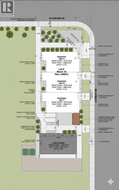 Prime Development Opportunity - Approved Triplex in Winston Heights/Mountview. Turnkey Development Ready for ConstructionRare opportunity to acquire a fully-approved development permit for a 3-unit rowhouse complex with legal secondary suites on a prime corner lot. This shovel-ready project offers exceptional value in one of Calgary's most desirable inner-city communities.Approved Unit SpecificationsThree Luxury Rowhouses - Each unit approximately 2,536-2,540 sq ft 4 Bedrooms | 3.5 Bathrooms | 4 LevelsLower Level: Legal secondary suite with bedroom, full bath, living area & mechanical roomMain Floor: Open-concept living/dining, kitchen with island, powder room, suite foyerUpper Floor: Two bedrooms, full bathroom, private terrace (135 sq ft)Penthouse: Master suite with walk-in closet & ensuite, family room, mechanical roomKey Development FeaturesFour-Car Heated Garage with individual overhead doorsTotal 6 Units: 3 main homes + 3 legal secondary suitesSolar-Ready with conduit infrastructureEV Charging Capable (40A, 240V circuits)Contemporary Design: Architectural panels, stucco, metal accentsEnergy Efficient: Spray foam insulation, 2-hour firewall separationPrime contender for MLI Select - favorable financing potentialPrime Corner LocationDual frontage on 6 Street NE & 18 Avenue NE (collector road)Minutes to downtown CalgaryWalking distance to amenities, transit, parks & schoolsEstablished, walkable community with characterDevelopment DetailsTotal Building Area: 7,614 sq ftDensity: 59.51 units/hectare (optimal)Parking: 4 stalls (exceeds requirements)Zoning: R-CG (Residential Grade-Oriented Infill)Perfect ForDevelopers & builders seeking turnkey inner-city projects | Investors wanting premium rental income | Those capitalizing on Calgary's strong housing marketWhy This ProjectApproved & Ready: Development Permit approved - skip months of planningRevenue Potential: 6 units generate strong cash flowModern Design: Meets demand for mul ti-level urban housingFuture-Ready: Solar & EV infrastructure includedFinancing Advantage: Strong MLI Select candidate for optimal termsComplete architectural drawings, engineering reports, and city approvals included. Existing structures to be removed per approved plans.Complete development permit packages and project details! (id:6769)