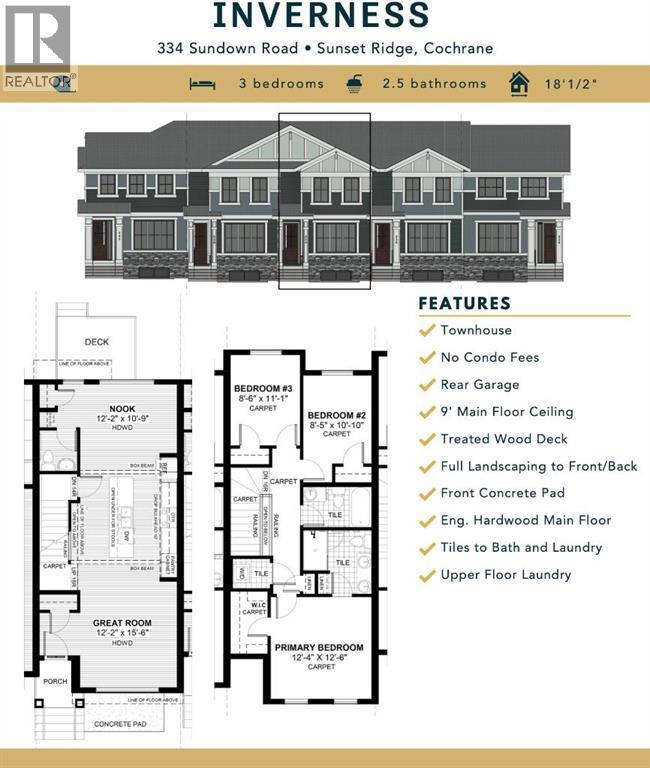 Excellent Value in Sunset Ridge || Introducing the Inverness by Douglas Homes Master Builder — a beautifully designed west-facing townhouse offering 3 bedrooms, 2.5 bathrooms, a full basement, and a rear detached garage. With no condo fees and complete front-and-back landscaping, this home blends modern comfort with practical, low-maintenance living. Step inside and you’re welcomed by an open, airy main floor with 9-foot ceilings and abundant natural light. The layout creates a comfortable flow from the living room to the dining nook, leading into an L-shaped kitchen with a window overlooking the east-facing backyard — a thoughtful touch that adds both light and function. Premium finishes include engineered hardwood floors, quartz countertops, and stainless-steel appliances. Upstairs, the spacious primary suite features a walk-in closet and private ensuite, with two additional bedrooms and a convenient upper-floor laundry. Outside, you’ll find a treated wood deck, front concrete pad, and a fully landscaped, fenced yard ready to enjoy. All this in a sought-after community close to schools, pathways, and mountain views — move-in ready in around 90 days. Key Highlights | Townhouse | No Condo Fees | Rear Garage | Full Landscaping (Front & Back) | 9' Ceilings | Quartz Counters | Engineered Hardwood on Main | Upper Floor Laundry | Treated Wood Deck | Front Concrete Pad. *** Please note: Landscaping and yard completion are seasonal items and subject to weather conditions. (id:6769)
