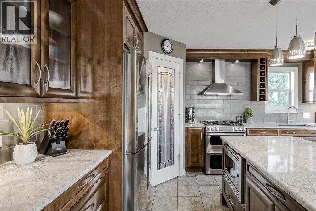 Welcome to your dream home in the heart of Douglas Glen! Perfectly tucked away on one of the Douglas Glen neighbourhood’s most coveted cul-de-sacs, this beautifully appointed property offers the ideal blend of comfort, style, and convenience. While ideally situated near major roadways for effortless commuting, the home offers remarkable tranquility inside. Just steps from the Bow River pathway system, playgrounds, Quarry Park shops, and minutes from both public and Catholic schools, this location truly has it all. With quick access to Deerfoot, Glenmore, and Stoney Trail, and conveniently located close to Calgary Public TRANSIT - commuting anywhere in the city is a breeze! The spacious front entry welcomes you into a bright main floor featuring ceramic tile and gleaming hardwood floors that flow seamlessly throughout. Beyond the aesthetics, this home with over 2500 sq ft of total living space has been thoughtfully upgraded. The open-concept design connects the kitchen and living room with ease, creating a perfect setting for everyday living and entertaining. The fully updated chef’s kitchen showcases Merit cabinetry, stunning Cambria quartz countertops, a massive island with barstool seating, and a convenient walk-in pantry. Stainless steel Samsung appliances-including a French Door refrigerator, dishwasher (2024), double oven gas range, and a private coffee station—add the perfect modern touch. The living room is filled with natural light from oversized windows, complemented by a cozy wood-burning fireplace that brings year-round comfort and timeless charm. The laundry room features a brand-new washer and dryer (2024), while a built-in Cyclovac Central Vacuum system provides extra convenience. Upstairs, newly installed carpet (2025) graces the staircase, leading to a spacious upper level with durable laminate flooring, three generous bedrooms, and a vaulted bonus room. The luxurious primary suite is a true retreat, with vaulted ceilings, space for a king-sized bed, a custom walk-in closet, and an updated spa-inspired ensuite with a stand-up shower. Two additional bedrooms offer versatility for family, guests, or a home office. The partially finished basement expands your living space with a large recreation room featuring a pool table and electric fireplace, while also leaving endless possibilities for future development. Step outside to enjoy a huge, private, beautifully landscaped backyard with NW exposure for great sunshine. A large deck, firepit, and stone patio make this the perfect spot for summer barbecues and evenings with family and friends. The wood shake roof is in excellent condition, professionally maintained and inspected (July 2025) to last 40 more yrs. Other benefits include a storage shed and underground sprinklers. This extraordinary home combines timeless elegance with modern updates in one of Calgary’s most desirable communities. Book your private showing today! (id:6769)