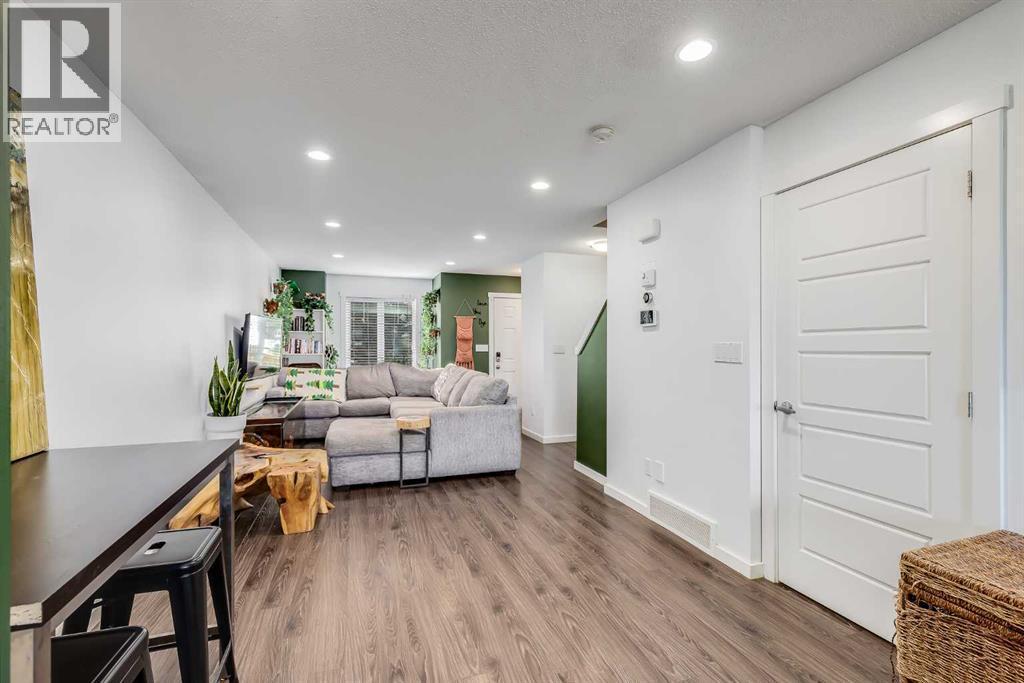 Welcome to this beautifully maintained SMART HOME, a true 3 STOREY DESIGN that stands out among neighbouring bungalow layouts in the heart of family and pet friendly Ravenswood. This condo is fully fenced, with a NO-MAINTENANCE BACKYARD and gas BBQ hookup, creating your own sunny, private retreat at the edge of Airdrie’s Southeast. Easy access to all amenities, shopping and only a short commute to Calgary via the QE2 and RR 292. The LOW CONDO FEES cover exterior home repairs, insurance and all ground maintenance for the Zen compound which will make your new life here low maintenance! The charming community of Ravenswood offers a connected lifestyle with schools (including École des Hautes-Plaines and Heloise Lorimer School), beautiful parks and trails just steps away. Inside, this rare 3-STOREY layout offers a clear separation between living, sleeping and storage spaces, perfect for families, professionals or roommates who value privacy and functionality. You’ll also notice modern tech features like a SECURITY SYSTEM, NEST HOME SYSTEM, LIGHTING CONTROLS AND KEYLESS ENTRY. Upon entering, you’ll notice a bright and functional main floor with 9’ ceilings and durable laminate flooring that flows throughout. The main level is dedicated to everyday living, with a front living room that invites relaxation, a central dining area for gathering, and a stylish kitchen at the back equipped with quartz countertops, stainless steel appliances, full-height cabinetry, a centre island and timeless subway tile — ideal for both casual meals and entertaining. A discreet powder room adds main floor convenience! Upstairs, the second level hosts two generous bedrooms — each with its own private ensuite — offering true dual-suite flexibility. One bedroom features a private 4-piece ensuite and large closet, while the second offers its own 3-piece ensuite and dual closets, perfect for children, guests or roommates. Below, the undeveloped basement provides yet another level of opportunity, fe aturing high ceilings, a large legal-suite-sized window, blown-in insulation, perimeter bracing, and rough-ins for a future bathroom — ready for your creative vision or added storage. Additional perks include HARDIE BOARD SIDING, a HIGH-EFFICIENCY FURNACE, HRV, CENTRAL VAC, WATER SOFTENER and 1 assigned parking stall with abundant visitor and street parking for guests. Additional perks include HARDIE BOARD SIDING, a HIGH-EFFICIENCY FURNACE, HRV, CENTRAL VAC, WATER SOFTENER and 1 assigned parking stall with abundant visitor and street parking for guests. (id:6769)