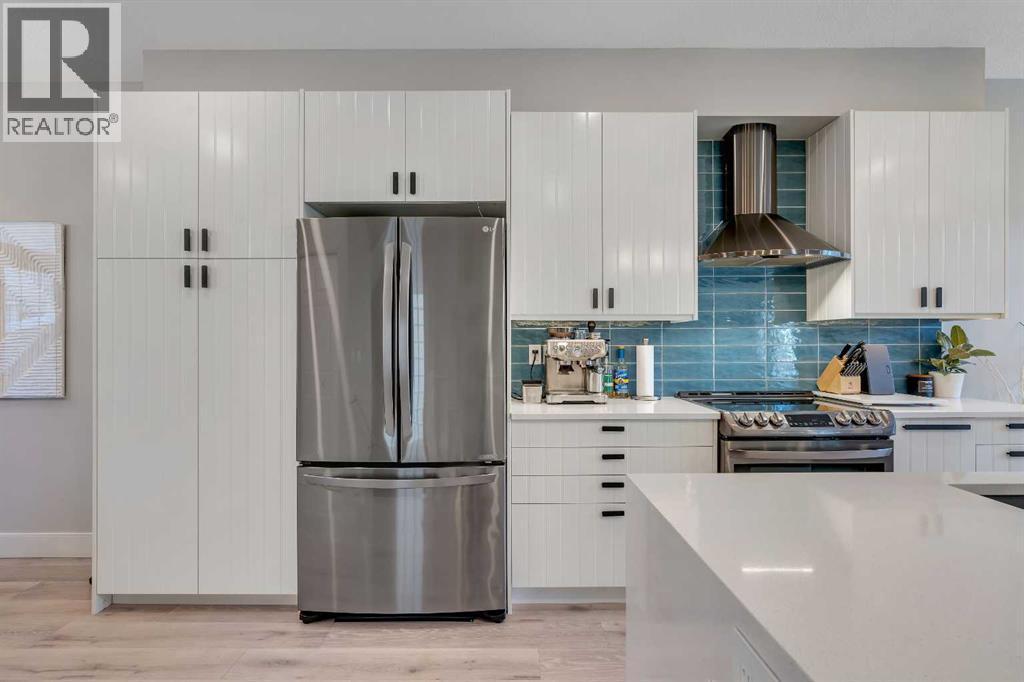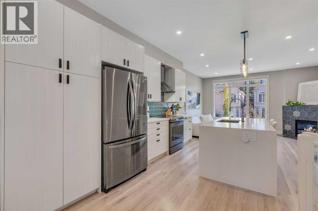 Beautifully reimagined and ideally located, this three-storey home in Calgary’s Beltline offers an exceptional blend of modern design and urban convenience. Situated steps from bike lanes, local parks, restaurants, and boutique retail, this address captures the true essence of inner-city living. Downtown, 17th Avenue SW, and the Bow River pathways are all close at hand, making it a perfect location for those who value both lifestyle and accessibility. Completely redesigned in 2018, the home underwent a thoughtful renovation that opened up the kitchen, added a second full bathroom on the top floor, and refreshed every surface with new lighting, finishes, and fixtures. A further transformation in 2021 introduced a flexible lower-level space—designed to function as both a media room and home office—with a built-in, adjustable desk. The fenced outdoor area was also upgraded with low-maintenance turf, creating an inviting, worry-free extension of the home. The open-concept layout allows the living and dining spaces to flow seamlessly, extending through double French doors to a west-facing patio—perfect for entertaining or quiet evenings outdoors, while the kitchen anchors the main level with its stainless steel appliances, bold blue tile backsplash, quartz countertops, and a generous island ideal for both cooking and gathering.  The upper level features two bright and spacious bedrooms, each with vaulted ceilings, large windows, and generous closets. The primary suite includes a private ensuite and a Juliet balcony overlooking downtown, while the second full bathroom and laundry area add function and ease. Significant updates include electrical, plumbing, and lighting in 2018, along with a new hot water tank that same year, and central air conditioning added in 2021. The property also offers parking for two vehicles, including a single garage with additional storage and a large driveway. Modern in design, practical in layout, and surrounded by the best of Calgary’s inner  city—this Beltline home delivers a lifestyle defined by comfort, convenience, and style. (id:6769)