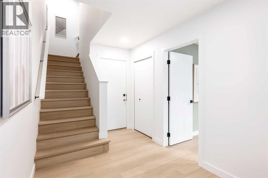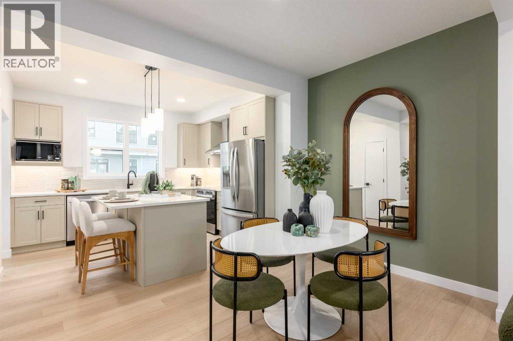 WHEN HOME DOUBLES AS YOUR OFFICE, IT NEEDS TO DO MORE THAN LOOK GOOD.This three-storey townhome in Woodland at Alpine Park was built for the work-from-anywhere crowd — people who want sunlight, flow, and an address that makes getting out of town as easy as logging off.On the ground floor, there’s room to breathe before the day starts. The front entry actually feels like one, not a bottleneck. The flex room catches the western light all afternoon — bright, quiet, and just far enough from the kitchen to feel like you’ve gone somewhere. It’s the kind of workspace that keeps you focused, then doubles as a yoga mat zone or creative corner when the laptop closes. And when it’s time to hit the road, the insulated double garage makes early-morning drives and weekend escapes effortless.Up one level, everything loosens up. The living area takes in the west exposure, keeping the space bright and grounded. At the back, the kitchen layers design and function — quartz counters, full-height backsplash, chimney hood, and an island that becomes whatever the day calls for. Step through to the 17’11” × 6’8” balcony, where coffee breaks, sunset wine, and mountain-planning sessions all feel equally at home.Upstairs, the primary bedroom keeps it calm with a walk-in closet and three-piece ensuite that make mornings feel easy. Two more bedrooms, a full bath, and upper-floor laundry keep everything moving without chaos.Finishes stay timeless: durable LVP, layered lighting, and a modern mix of exterior materials that give Woodland its clean architectural edge.And then there’s Alpine Park — Calgary’s southwest gateway to everywhere. Close enough to the city to keep your commute short, yet perfectly placed for spontaneous mountain runs. Possession is expected in mid-November, just in time to settle in before the snow flies. Come see why Woodland isn’t just where you live — it’s where your week finally finds balance. • PLEASE NOTE: Photos are of a finished Showhome of the same model – fit and finish may differ on finished spec home. Interior selections and floorplans shown in photos. (id:6769)