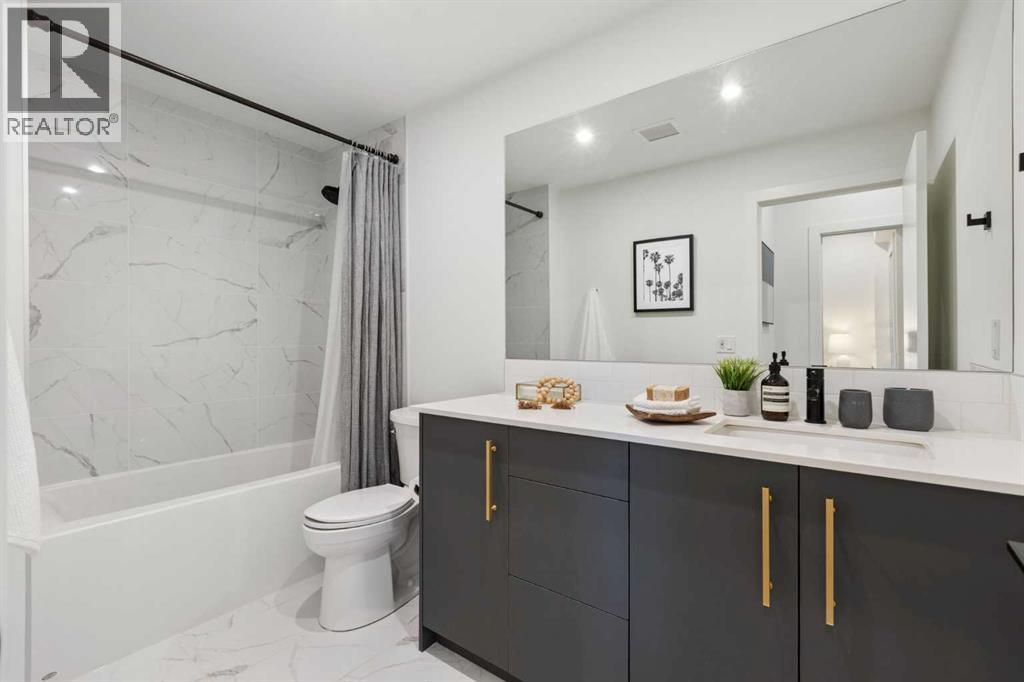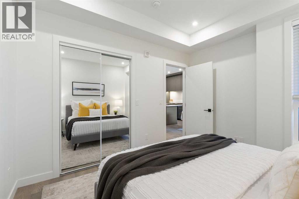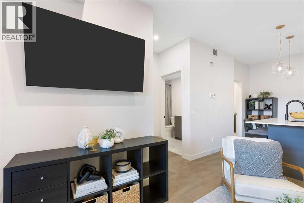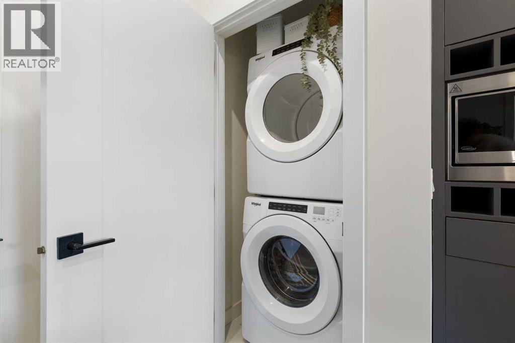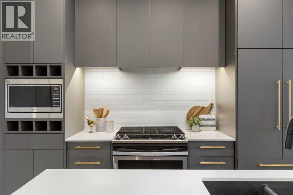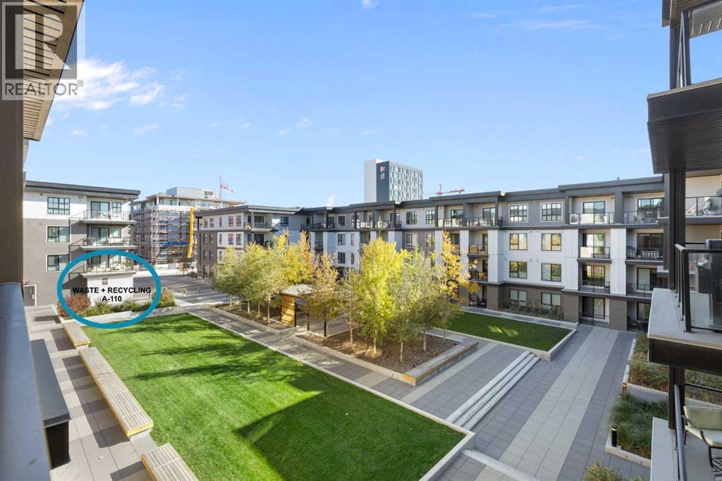 Elevate your lifestyle at Esquire’s Unit 325—where design, comfort, and connection define luxury in Calgary’s University District. DESIGN - Built by award-winning Truman Homes, Calgary’s builder of choice, this light-filled third-level unit offers 640 sq. ft. of open-concept living. Every element reflects modern sophistication, from the 9-foot ceilings and oak hardwood flooring to the premium fixtures and warm brass accents. The kitchen blends luxury and function with sleek charcoal cabinetry, soft-close drawers, an integrated wine rack, and elegant glass pendant lighting, while the white subway tile backsplash and under-cabinet lighting showcase the stainless steel microwave and gas range, and panelled appliances. Anchoring the heart of the home is the large white quartz island with seating for three, ideal for staying engaged for casual meals or hosting guests. COMFORT - Sun-drenched and airy floor plan with south-facing windows flows seamlessly to a covered balcony overlooking serene courtyard views. With 2 bedrooms, a stylish 4-piece bathroom, in-suite laundry, and LEED Platinum certification, this home offers a polished, comfortable experience. CONNECTION - Living up to its “Live Better” slogan, residents enjoy exclusive on-site amenities: 24-hour gym, workshop, pet spa, and bike room. Unique to this unit are titled heated underground parking and same-floor storage (no parkade trips), plus visitor parking in this pet-friendly building. Unmatched access to shop, sip, or get social at your favourite local cafes, shops, grocers, and restaurants, with an off-leash park and transit nearby.  Quick drive to downtown and the mountains, and just a short walk to Alberta Children’s Hospital, Foothills Medical Centre, and University of Calgary, this home offers tremendous value in one of Calgary’s most desirable neighbourhoods. Perfect for first-time buyers, investors, downsizers, students, or healthcare professionals seeking unmatched convenience and community. Check out  the online virtual tour, schedule your private showing today, and don’t miss the chance to own this exquisite Esquire condo Unit 325 in University District! (id:6769)