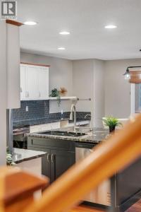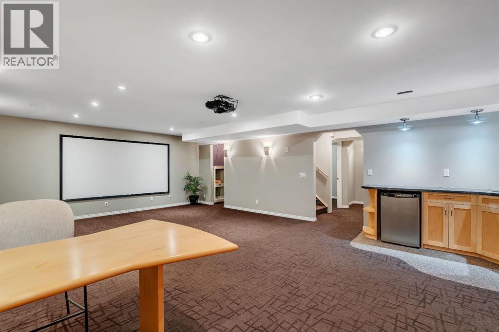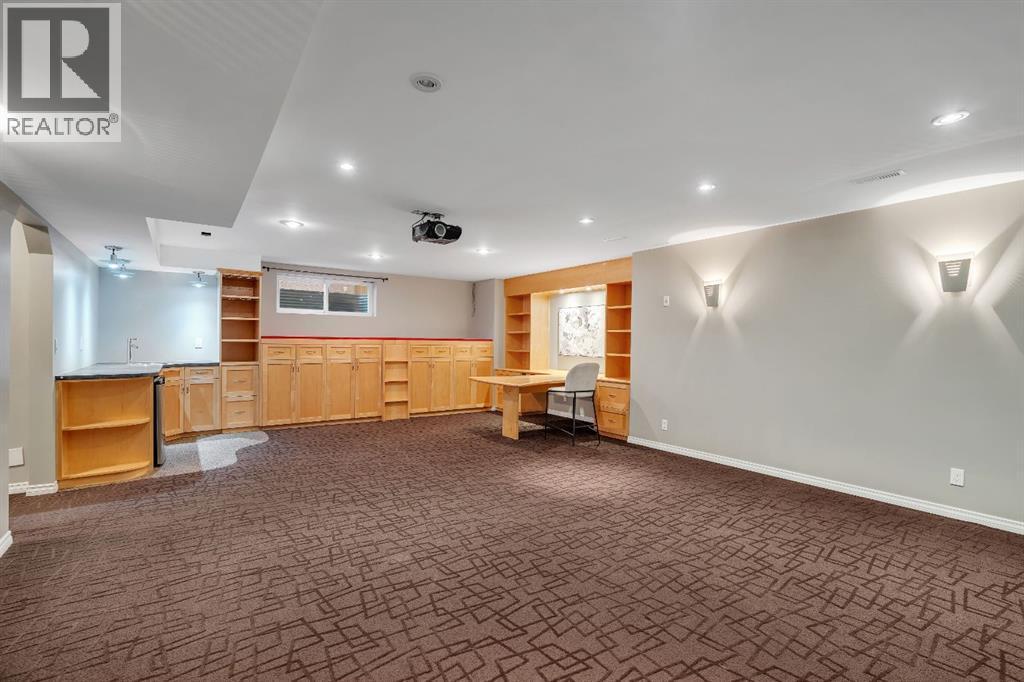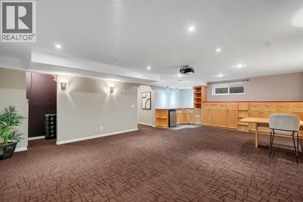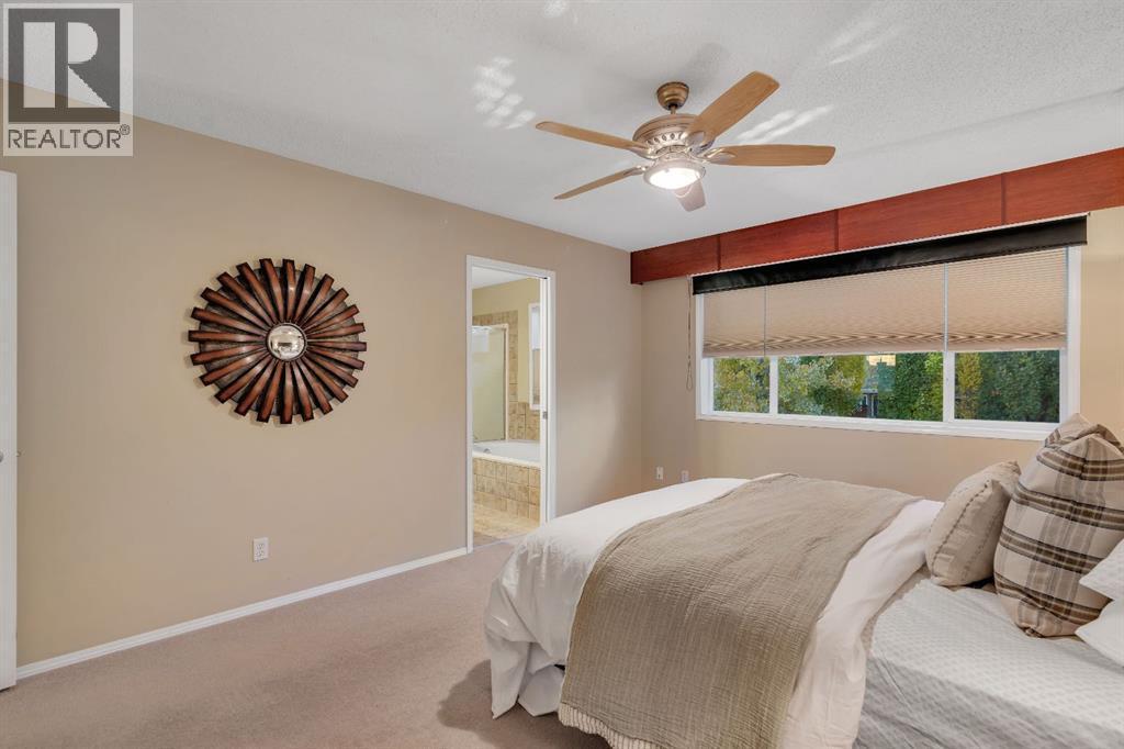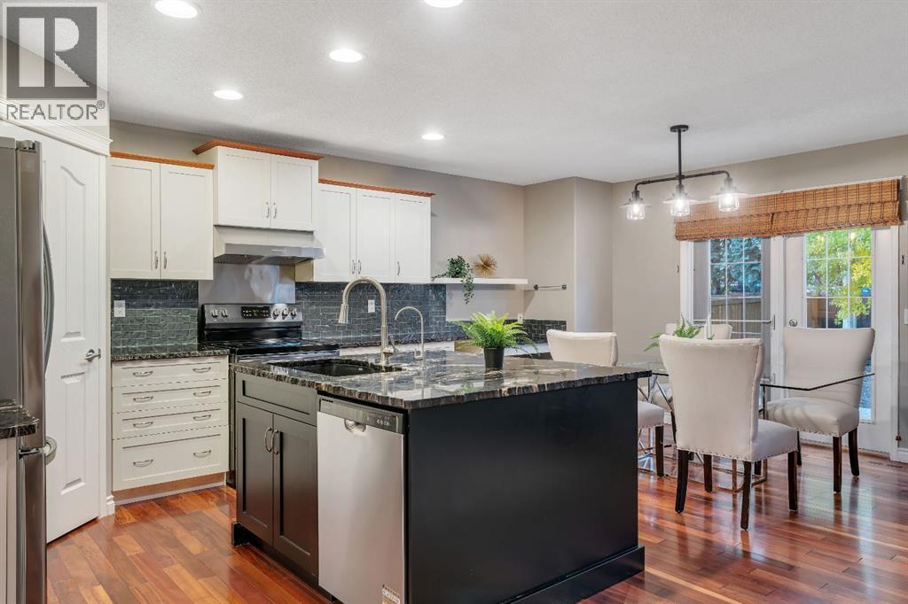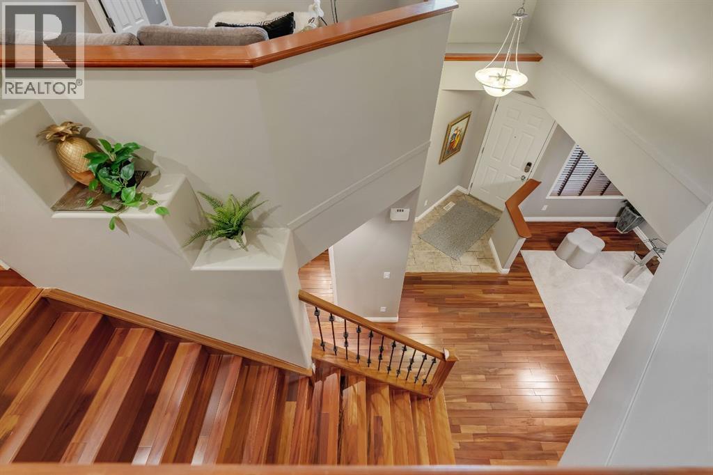 Open House Sat October 25th 1:30-3:30 PM. An Impressive & rare home with 4 beds up and over 3000 sq ft of fully developed space sitting on a huge wide lot, just steps to schools. Welcome to this exceptional home offering a beautifully finished living space, set on a premium lot with lovely mountain views from the front bedroom. Located only a 2 minute walk to the elementary school and under 8 minutes to the middle school, this is a rare find in an ideal family focused location. Step inside to discover a bright and open layout with soaring vaulted ceilings in front foyer, rich Brazilian cherry hardwood floors, upgraded lighting, and a welcoming living area anchored by a soothing gas fireplace. Perfectly positioned windows frame the lush garden views, bringing the outdoors in and filling the space with natural light. The front home office is ideal for remote work, a music room, or a dining/flex space, while the open concept design flows seamlessly into a perfectly placed dining area and a beautifully appointed kitchen. The standout kitchen features upgraded French shaker maple cabinetry, sleek granite countertops with natural stone edge, a large island with extra cabinetry, professional grade appliances, a spacious corner pantry, and plenty of prep and storage space perfect for home cooks and entertainers alike. Completing the main level is a 2 piece powder room and a modern, functional mudroom that includes a newer washer and dryer with customized storage as well as direct access to the oversized insulated double garage. Upstairs, the primary suite is a peaceful retreat with large windows overlooking the rear yard, a walk-in closet, and a functional ensuite with a comfort height vanity, soaker tub, and separate shower. Three additional bedrooms offer generous closet space and share a modern 4-piece bath. A bright bonus/games room provides the perfect spot for family movie or game nights or a quiet reading/homework nook for the kids. The basement has been profession ally developed with estate level finishings including 9’ ceilings, plush custom carpet and modern trim. This level features a spacious recreation room with custom built in cabinetry, 6.1 sound system and projector/screen (as is), an additional 5th bedroom or gym space with large closet, a bathroom area ready to be developed, and plenty of storage. Enjoy outdoor living in the sunny backyard oasis, complete with mature landscaping, a large patio perfect for relaxing evenings or weekend entertaining. Additional highlights include upgraded lighting, well-maintained roof shingles, full hardwood stairs, built ins, new interior paint, window coverings, and air conditioning for added peace of mind. This home combines pride of ownership with thoughtful upgrades in a serene, sought-after setting just minutes from Fish Creek Park, athletic fields, an outdoor chilled skating rink with its own Zamboni, shopping, and quick access to the new ring road. Move-in ready & a must see! Call now! (id:6769)