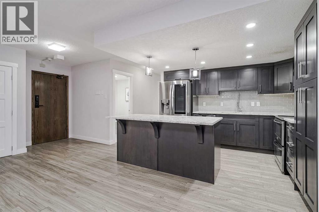 Experience urban living at its finest in the heart of downtown Calgary with this spacious, single-level apartment. Stunning 2-bedroom, 2-bathroom residence has been fully renovated, offering an expansive, open-concept layout that seamlessly blends comfort and style, making it an ideal retreat for young professionals or those seeking to downsize without compromising on space or luxury.From the moment you enter, you are greeted by the openess of the condo. Laminate flooring which extends throughout the main living areas, creating a modern yet cozy feel. Expansive windows flood the space with natural light and frame breathtaking views of Calgary's downtown skyline, creating a spectacular backdrop for quiet evenings and entertaining guests alike. The spacious living and dining areas flow effortlessly into a renovated kitchen with high-end stainless steel appliances, perfect for hosting dinners or casual gatherings.One of this home's most remarkable features is its amazing 735-square-foot private deck, a truly exceptional outdoor living space that offers a magnificent extension of the indoor living area.Each of the two generously sized bedrooms provides a private sanctuary for relaxation. The primary bedroom has brand-new carpet installed in August 2025 for added comfort. The primary suite features an ensuite bathroom for added convenience. Both bathrooms are elegantly designed with high-end finishes, offering a spa-like retreat.The luxury continues with the building’s world-class amenities, including an indoor pool, hot tub, and sauna for unwinding after a long day. Fitness enthusiasts will appreciate the squash/racquetball court and a well-equipped gym, while a games room provides leisurely entertainment. With 24-hour security and concierge services, your comfort and safety are always a top priority. (id:6769)
