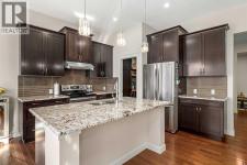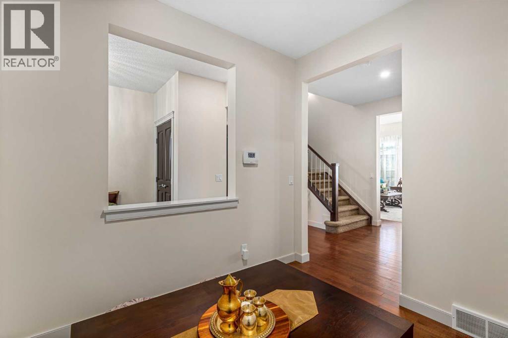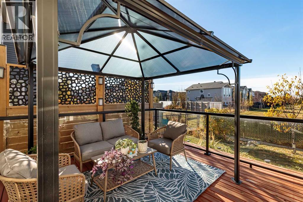 Wake up to breathtaking mountain views and enjoy your own WEST-facing backyard oasis. Welcome to 186 Ravenscroft Green, a beautifully maintained and upgraded family home in a highly sought-after quiet location, BACKING ONTO A WALKING PATH AND OPEN FIELD. The main level features a spacious front entry with a dual-door coat closet that leads into a bright and private office or den, ideal for working from home. The open-concept living area offers 10-foot ceilings, large windows, and a cozy gas fireplace, creating a warm and inviting atmosphere. The chef-inspired kitchen showcases elegant granite countertops, a large island with under-mount sink and eating bar, stainless steel appliances, and a custom walk-through pantry complete with built-in shelving. The adjoining dining area opens through dual patio doors to the west-facing deck and backyard, perfect for entertaining with a built-in BBQ gas line. A half bath and a convenient laundry and mudroom with garage access complete the main floor. Upstairs, the beautiful spindled staircase leads to a spacious bonus room with vaulted ceilings and an abundance of natural light. Three generous bedrooms include the primary retreat, which offers stunning mountain views, a massive walk-in closet, and a luxurious spa-inspired ensuite with dual sinks, a soaker tub, a large walk-in shower, and plenty of counter and cabinet space. A four-piece main bath serves the additional bedrooms. The unfinished basement provides the perfect layout for future development with room for two bedrooms, a large recreation area, and a roughed-in bathroom. The home is complete with a high-efficiency furnace, new hot water tank (2025), upgraded trim throughout, and recent exterior updates including new siding, roof, and garage door completed in 2021. Backing onto greenspace and a walking path, this home offers the perfect balance of space, style, and location. Don’t miss your opportunity to own this exceptional property with incredible mountain views in o ne of the area’s most desirable communities. Book your showing today! (id:6769)